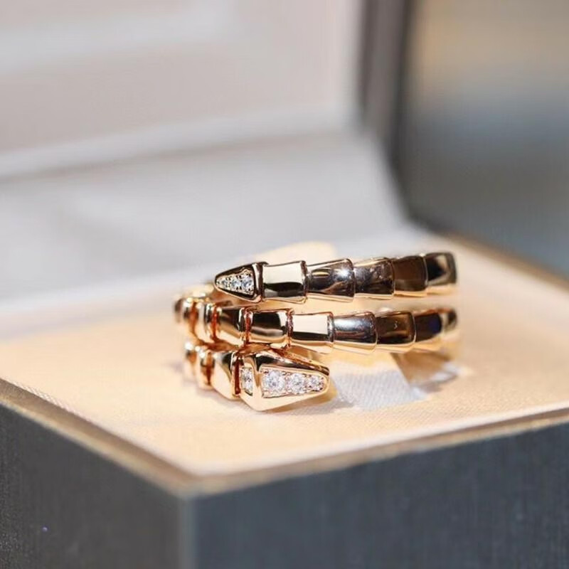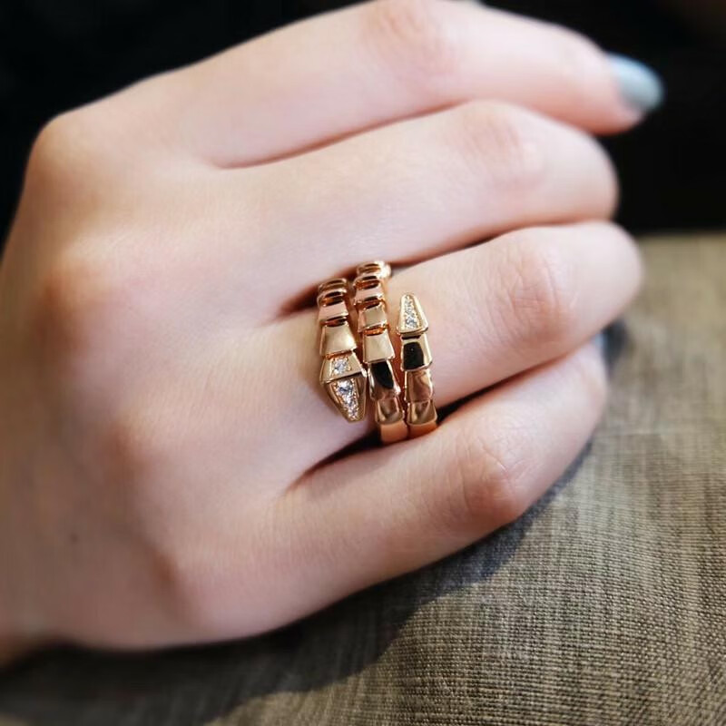 QUAMER Narrow Version Three Circles Head and Tail Diamond Snake Ring Women's Rose Simple Diamond Snake Bone Large Head Smooth Three Circles Snake White Gold S Size (US Code 56) Standard