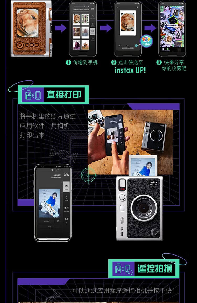 Fuji (FUJIFILM) Polaroid mini EVO/wideevo MiniLiplay one-time imaging camera photo paper printing birthday gift Polaroid EVO brown (ready in stock) official standard