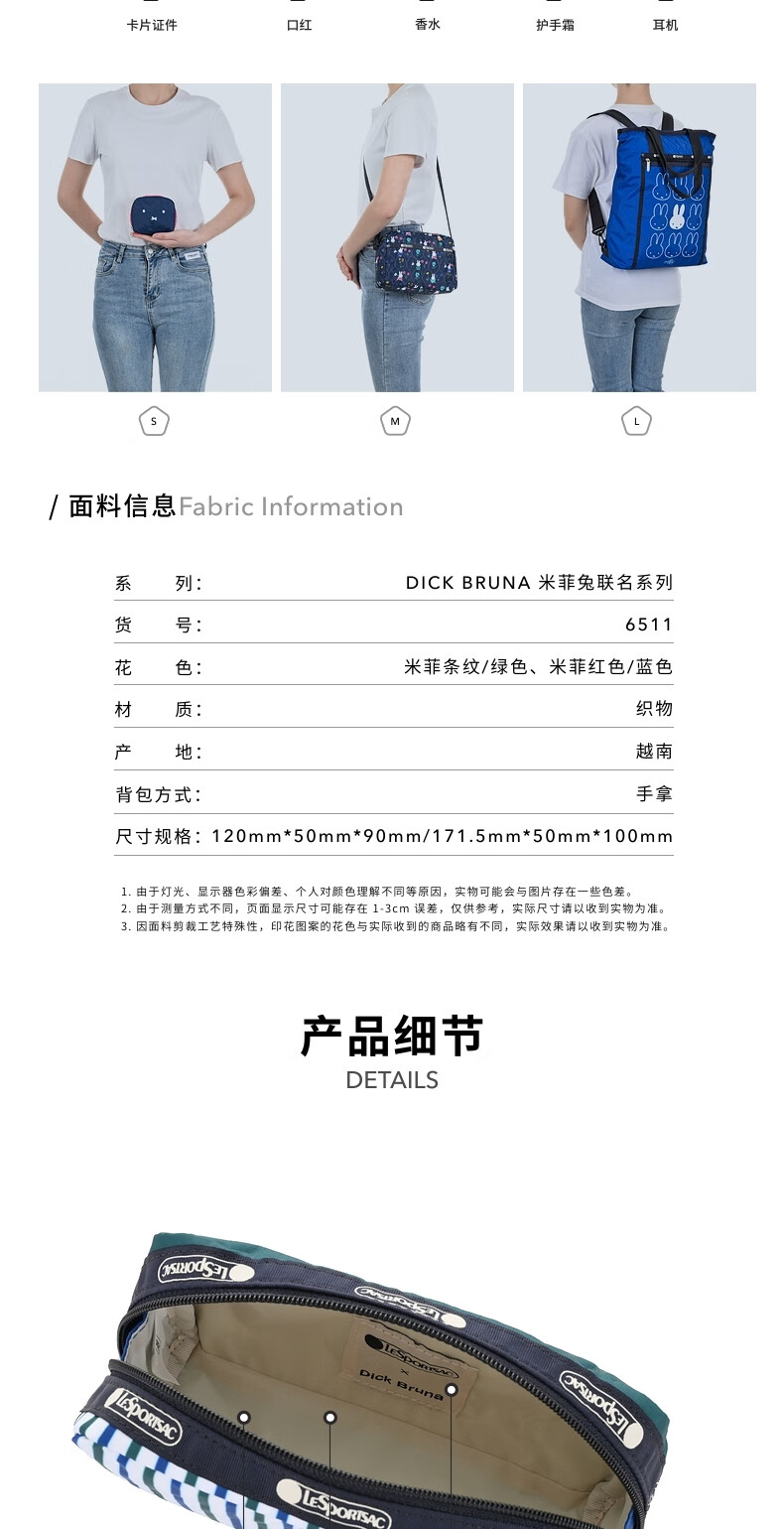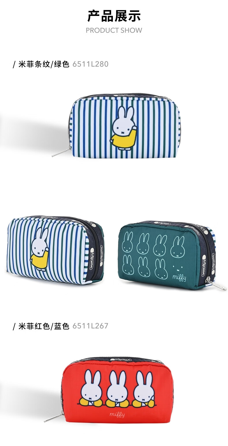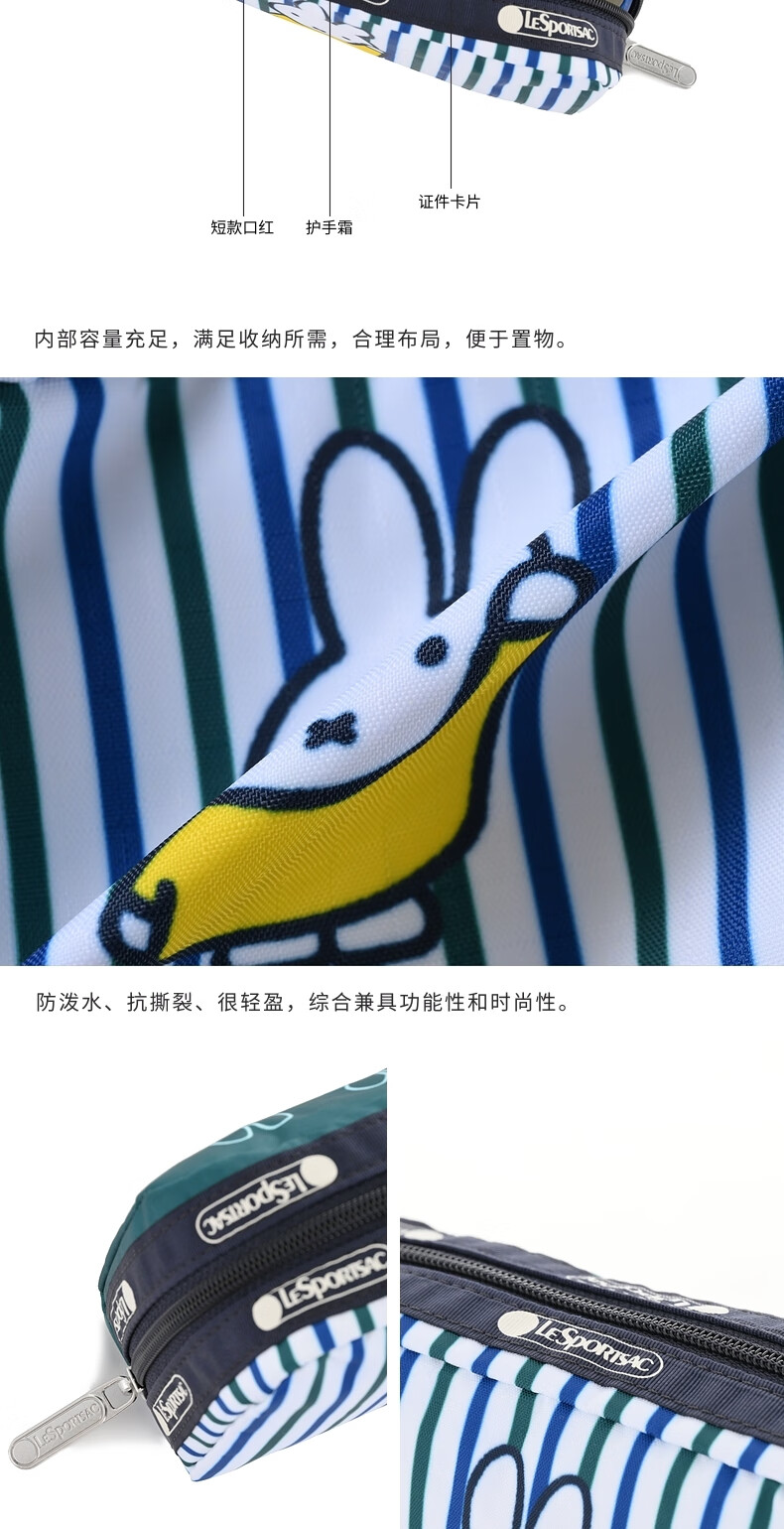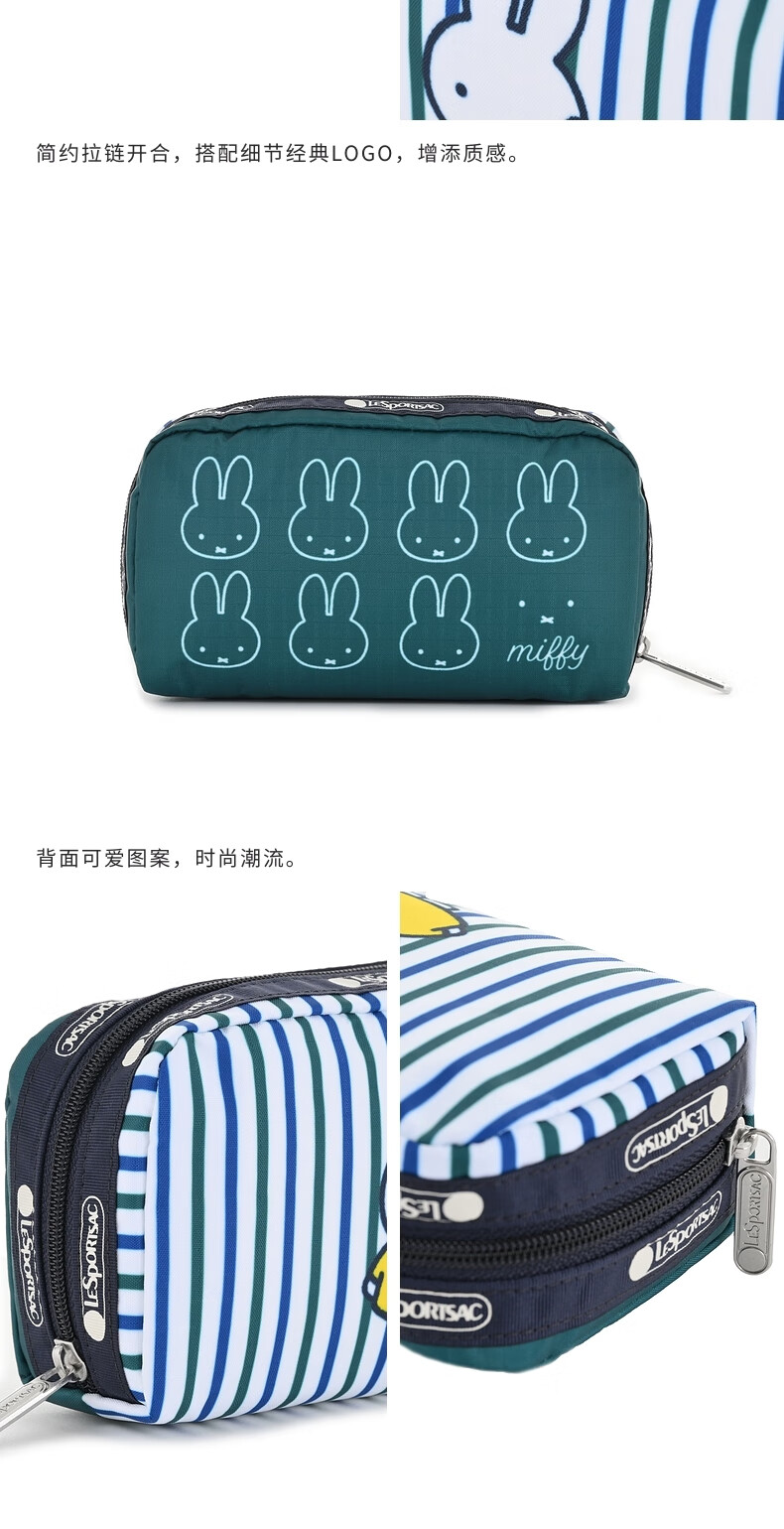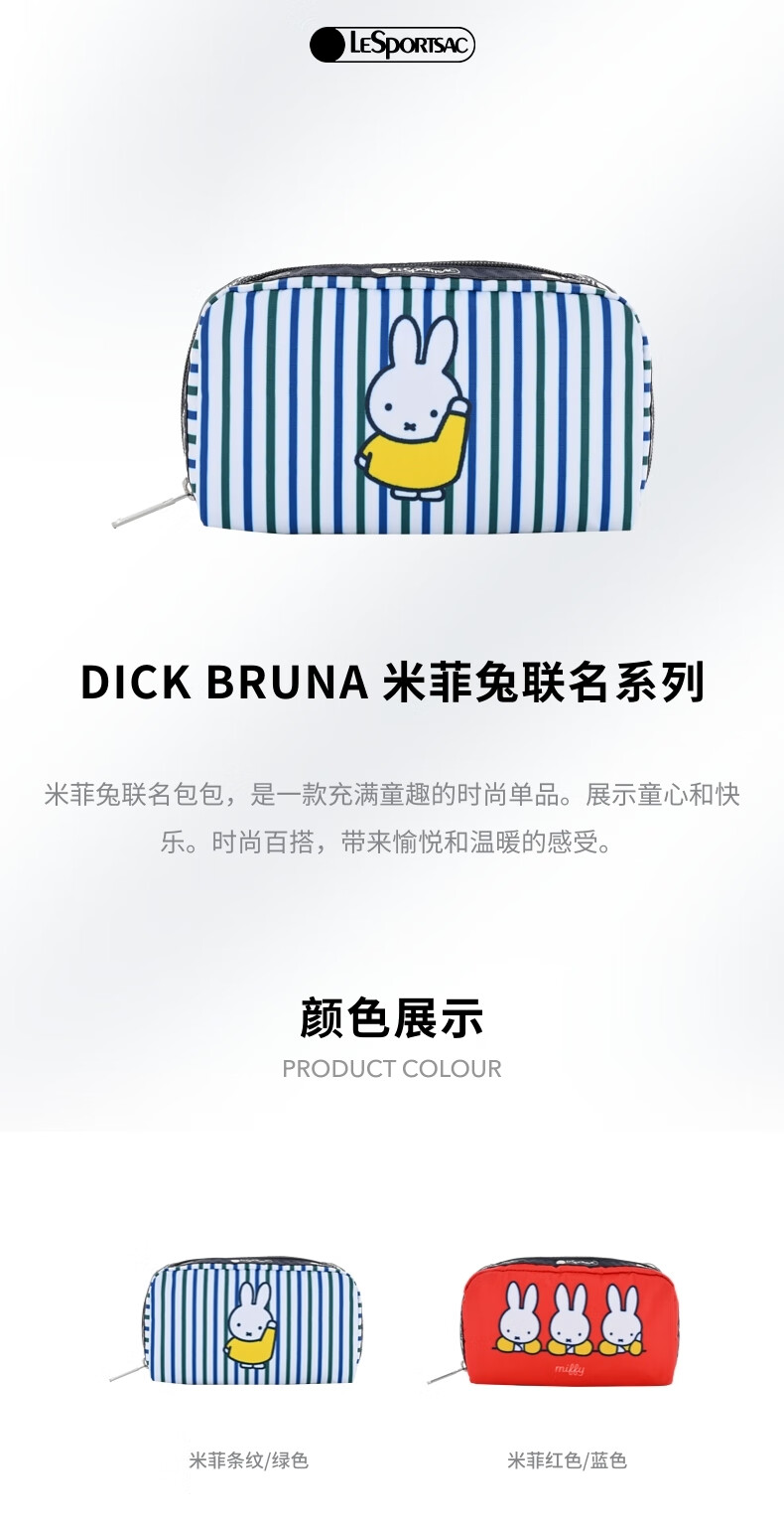 LeSportsac new co-branded bag women's bag dopamine clutch bag cute wallet gift for girls Miffy stripe/green