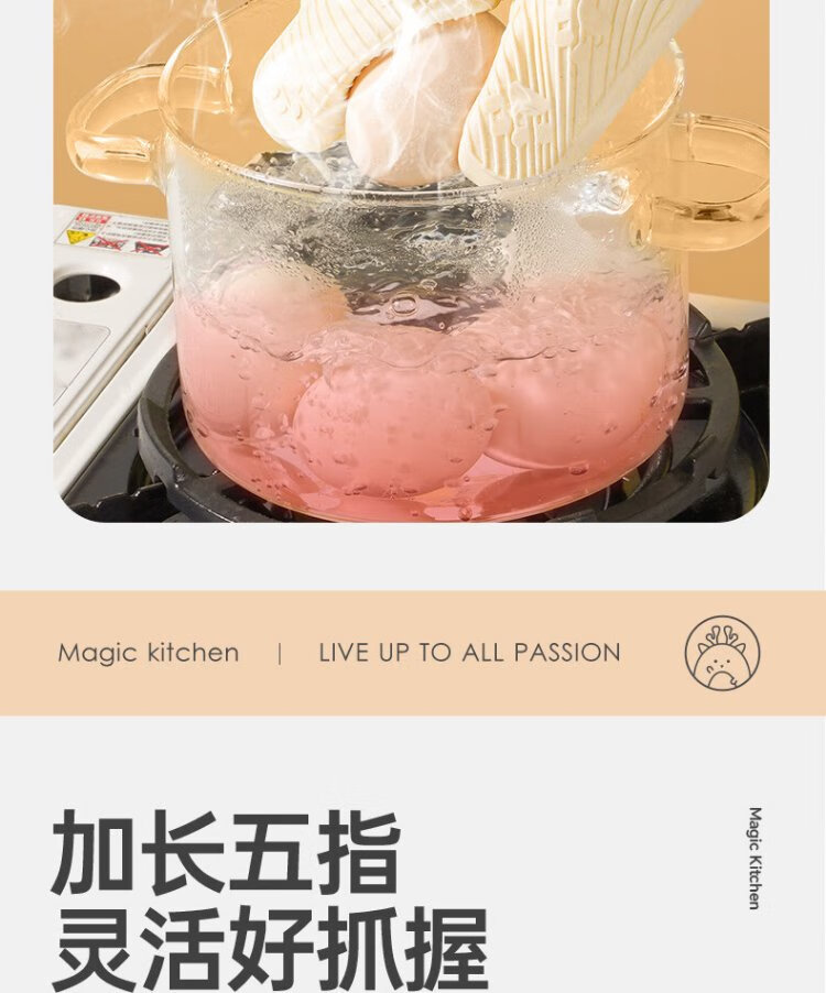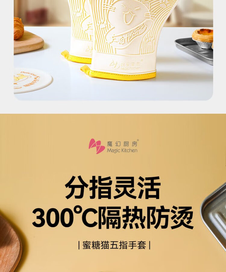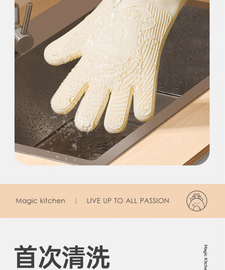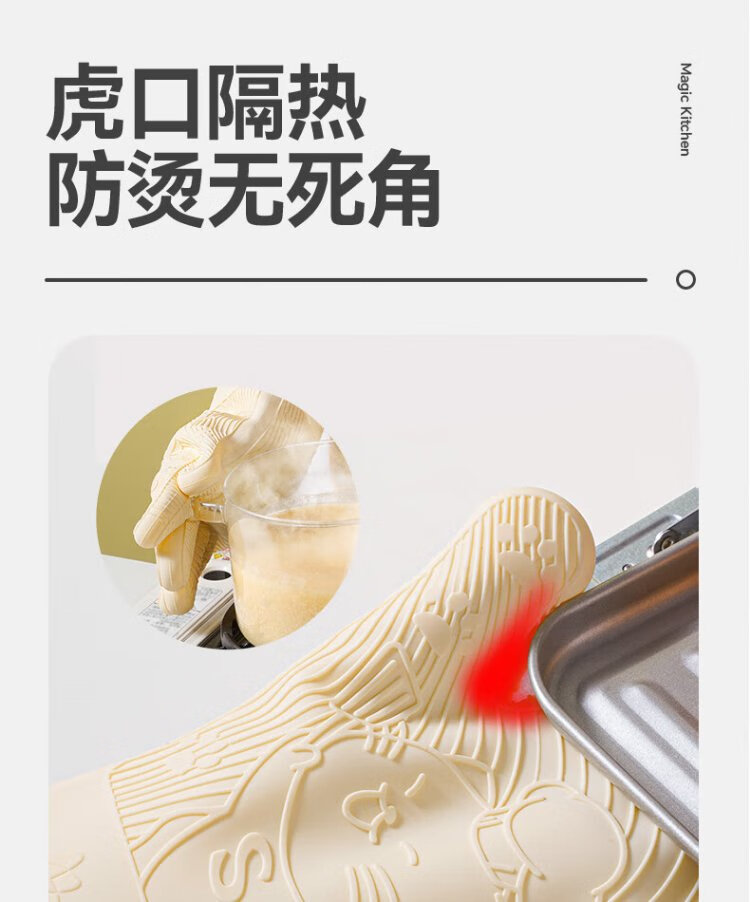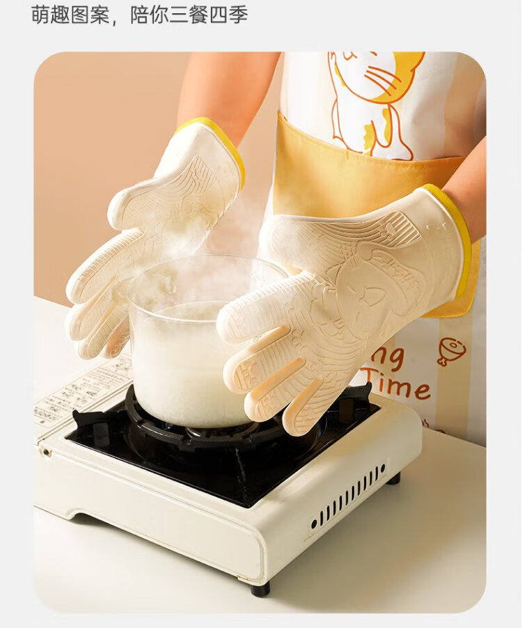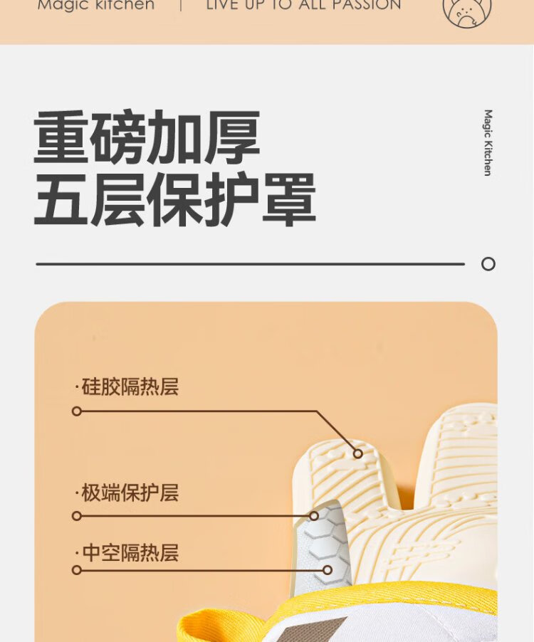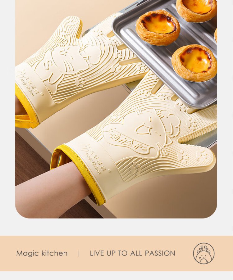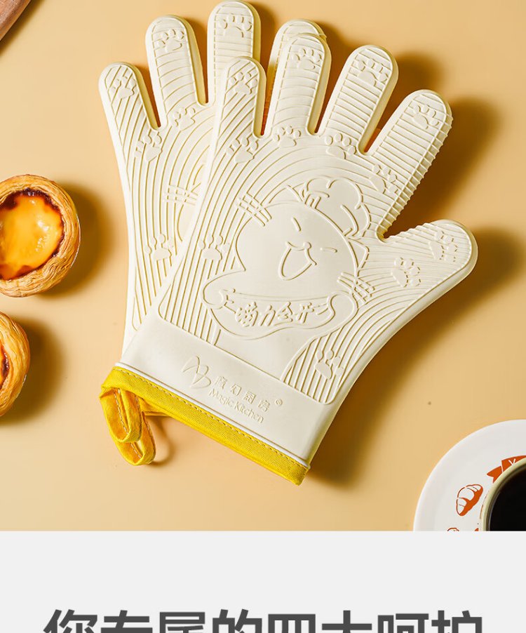 Magic kitchen silicone insulation gloves, anti-scalding gloves, oven microwave gloves, high temperature resistant kitchen baking gloves, three-layer cotton, five-finger silicone gloves, one pair
