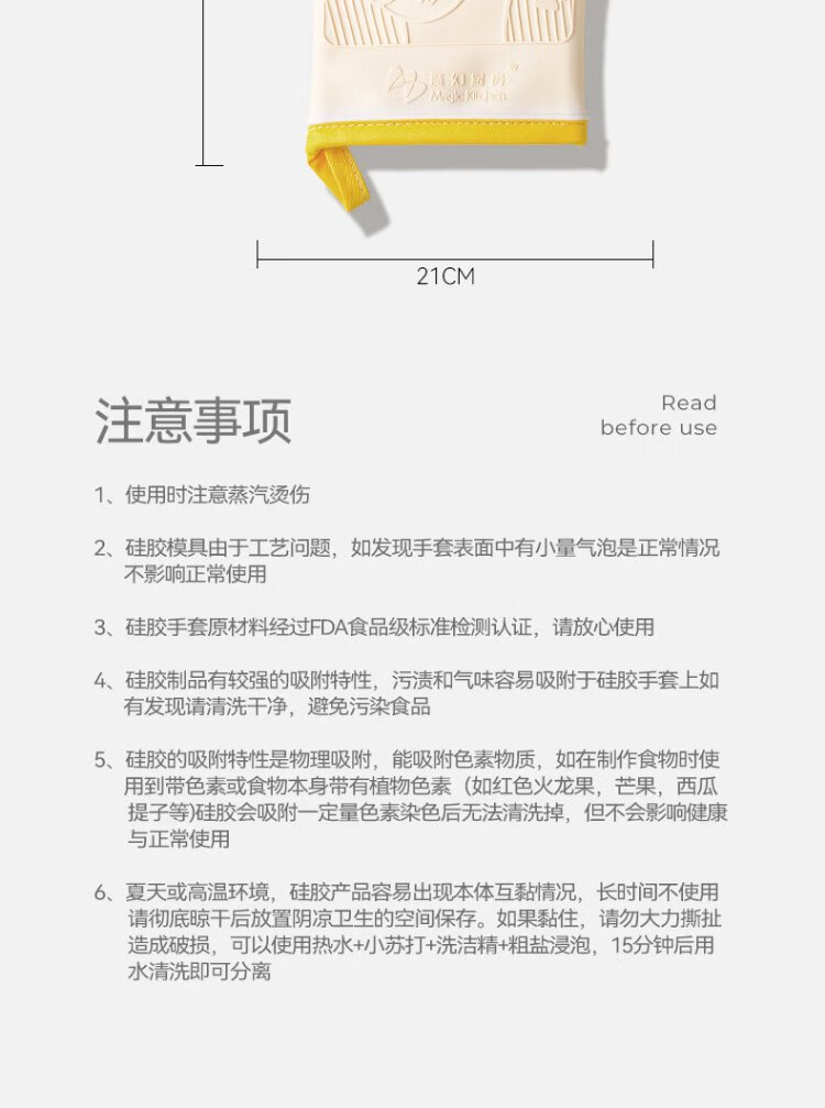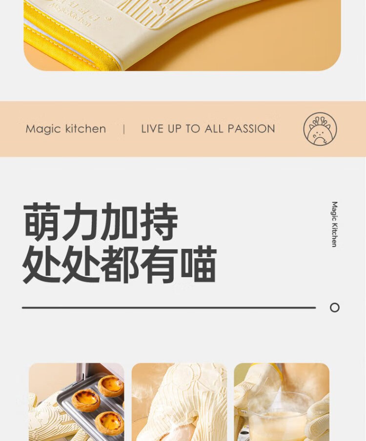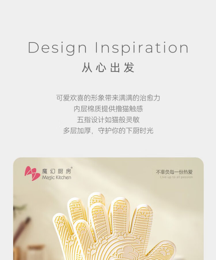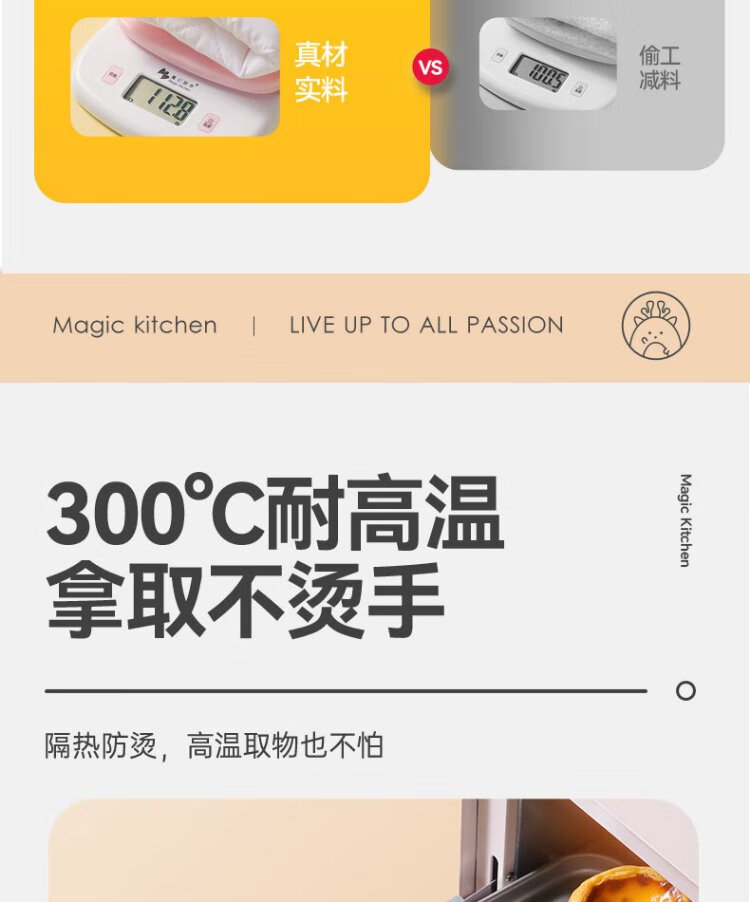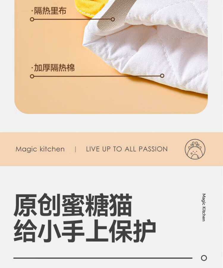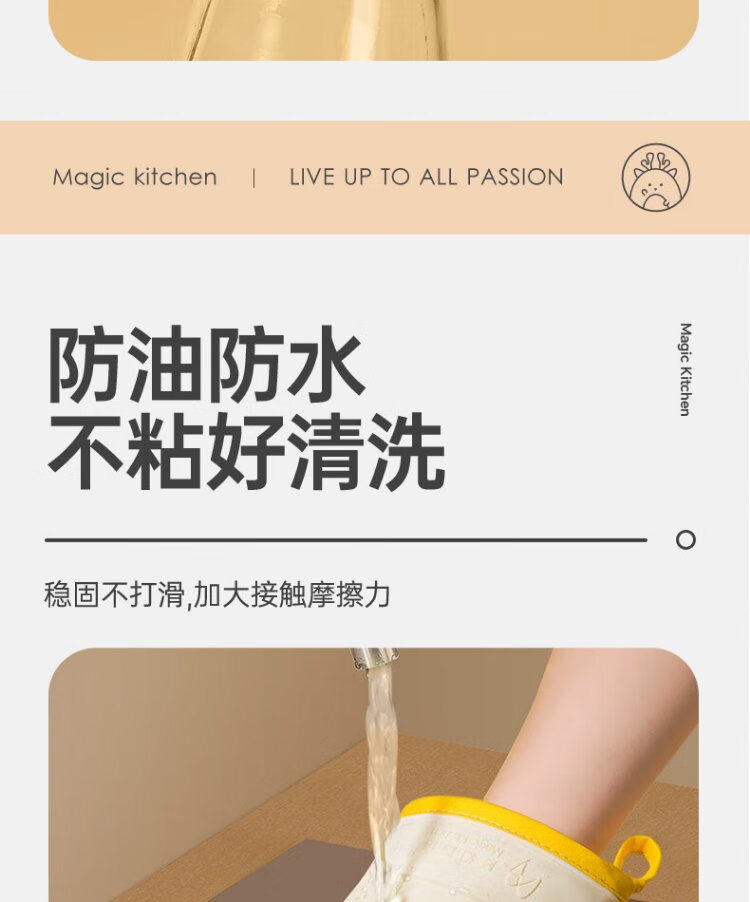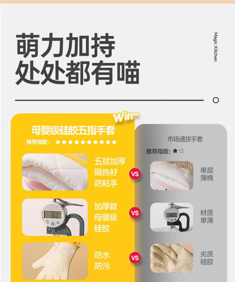Magic kitchen silicone insulation gloves, anti-scalding gloves, oven microwave gloves, high temperature resistant kitchen baking gloves, three-layer cotton, five-finger silicone gloves, one pair