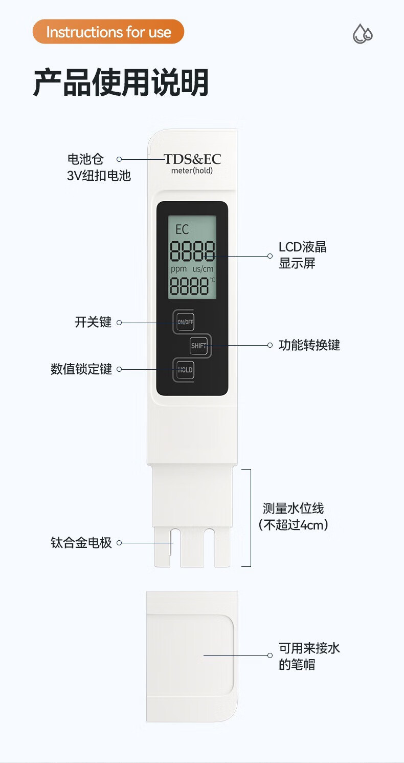 Tds water quality test pen water quality tester high-precision water test pen household water purifier tap water test pen multi-function water quality test pen