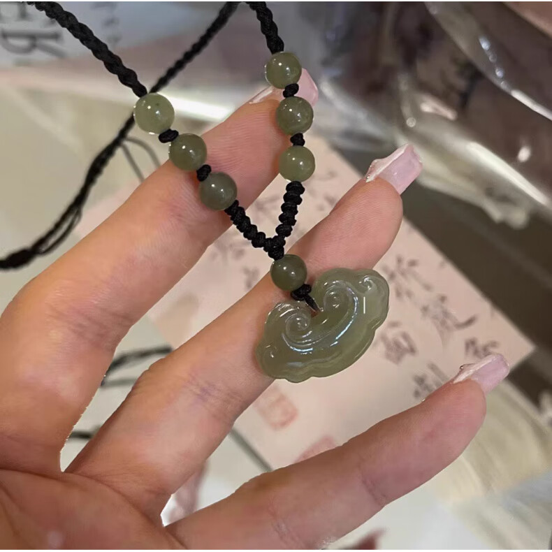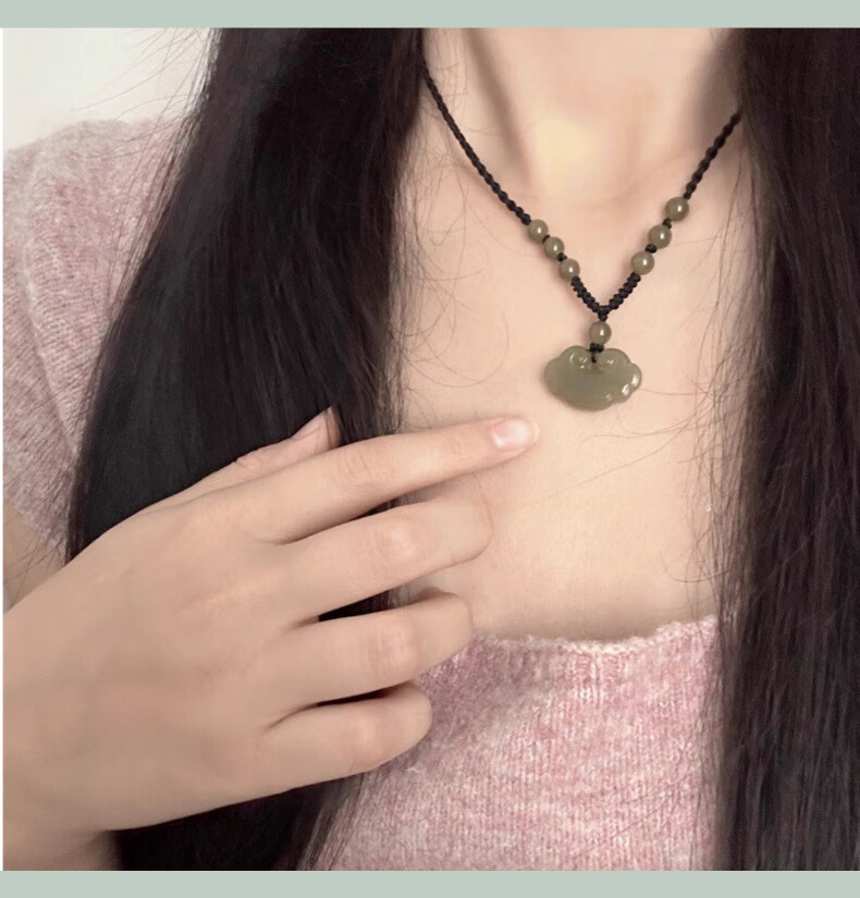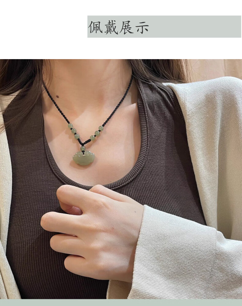 Idel Hotan jade safe lock necklace Ruyi lock jade pendant women's sweater chain Christmas gift for wife's birthday L2336 Hotan jade Ruyi lock necklace gift box + certificate