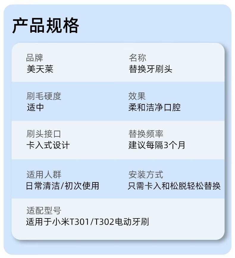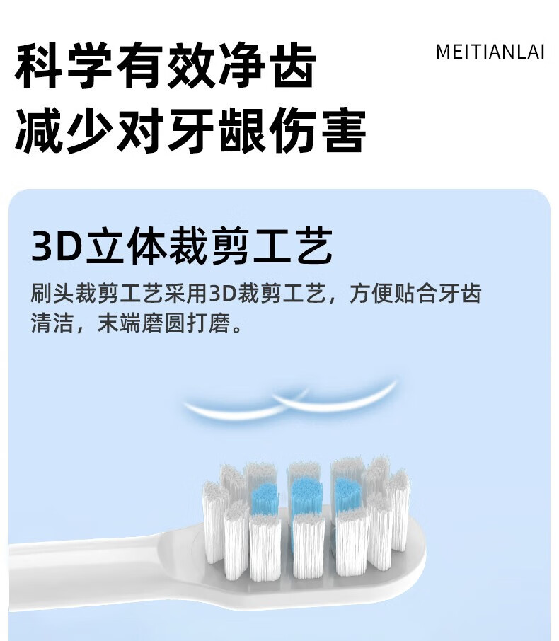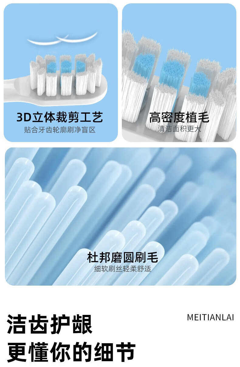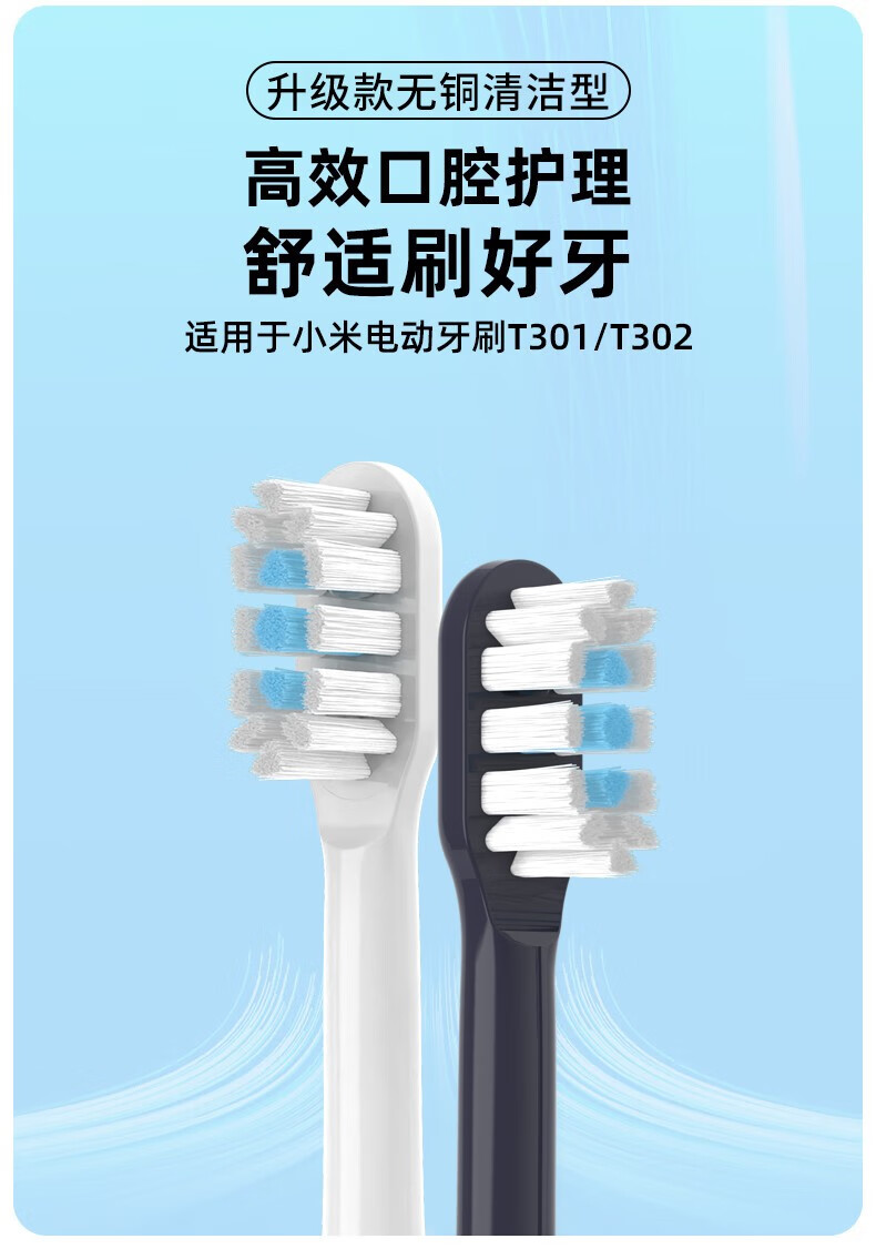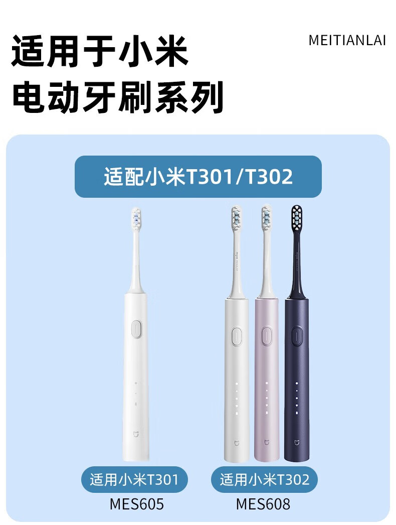 Meitianlai suitable for Xiaomi electric toothbrush head T301/T302/MES605/T501/MES608 Mijia replacement brush head, upgraded rubber-coated cushioning, white 6 pieces
