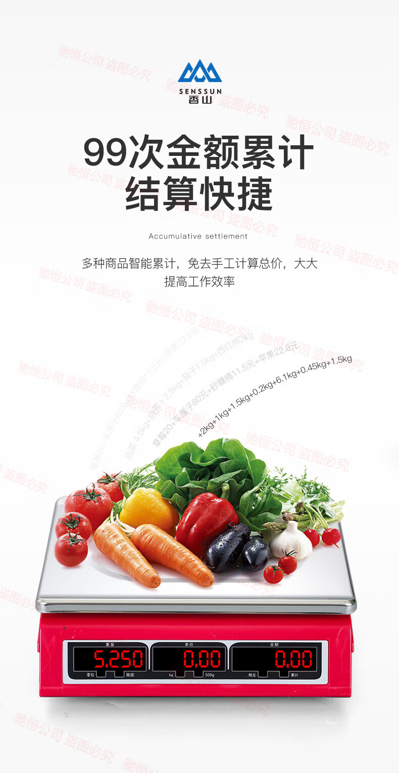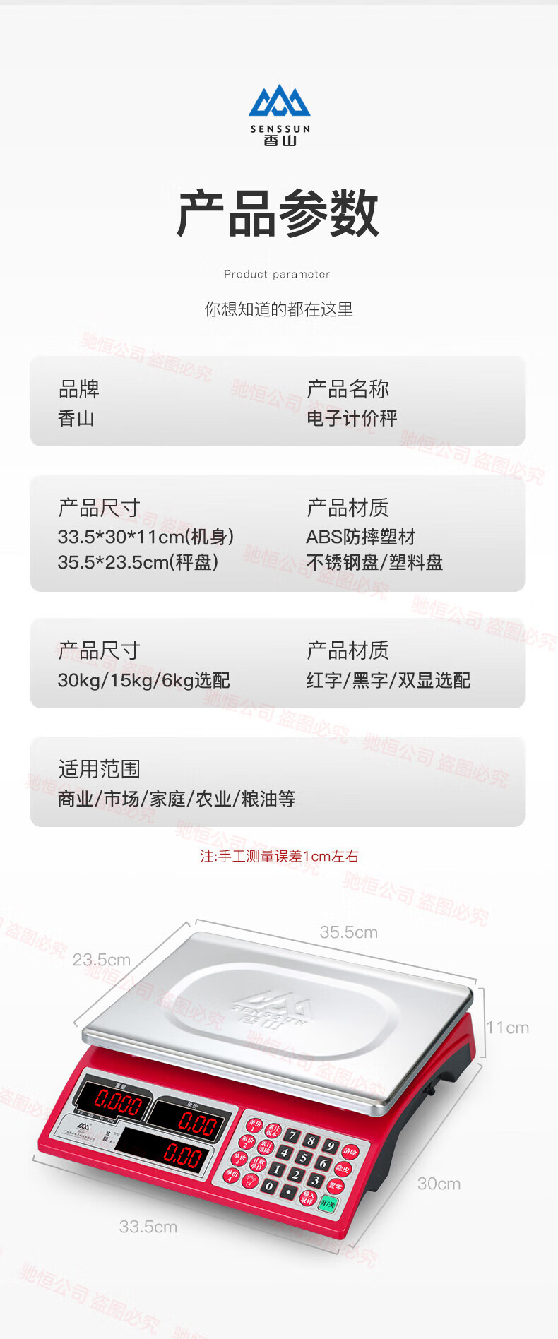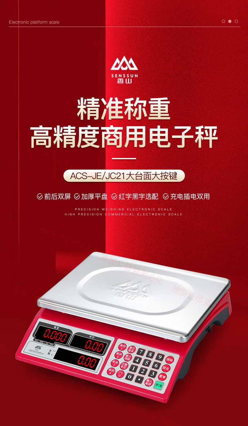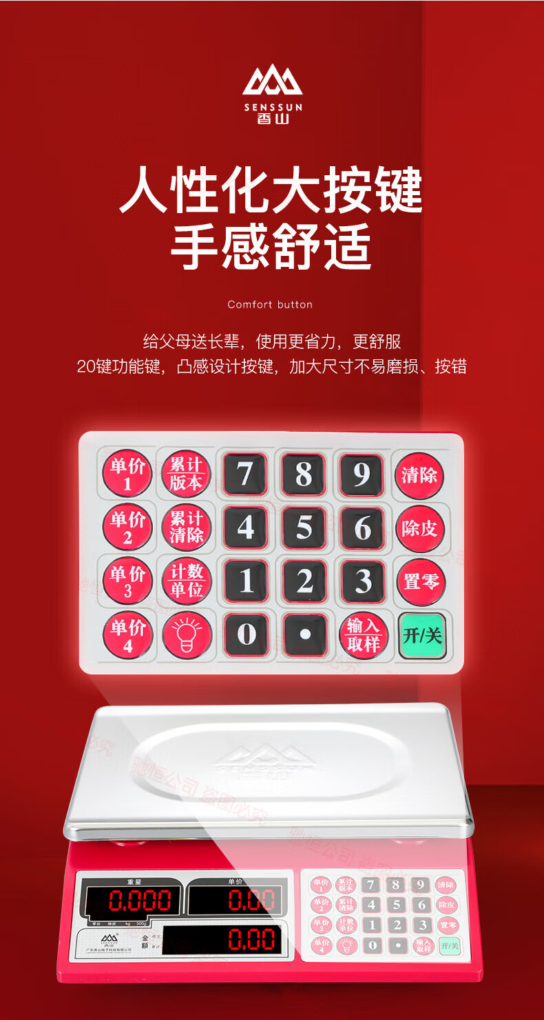 Xiangshan brand electronic scale commercial small 30kg household waterproof brand platform scale stainless steel vegetable selling precision scale upgraded version 30kg (indoor red letter)