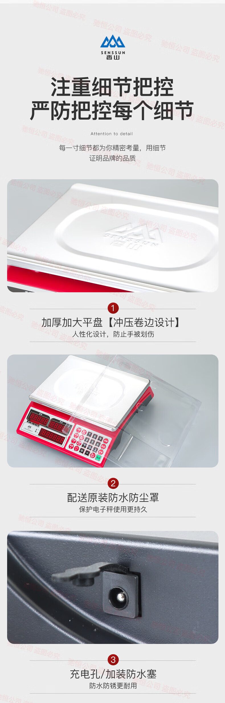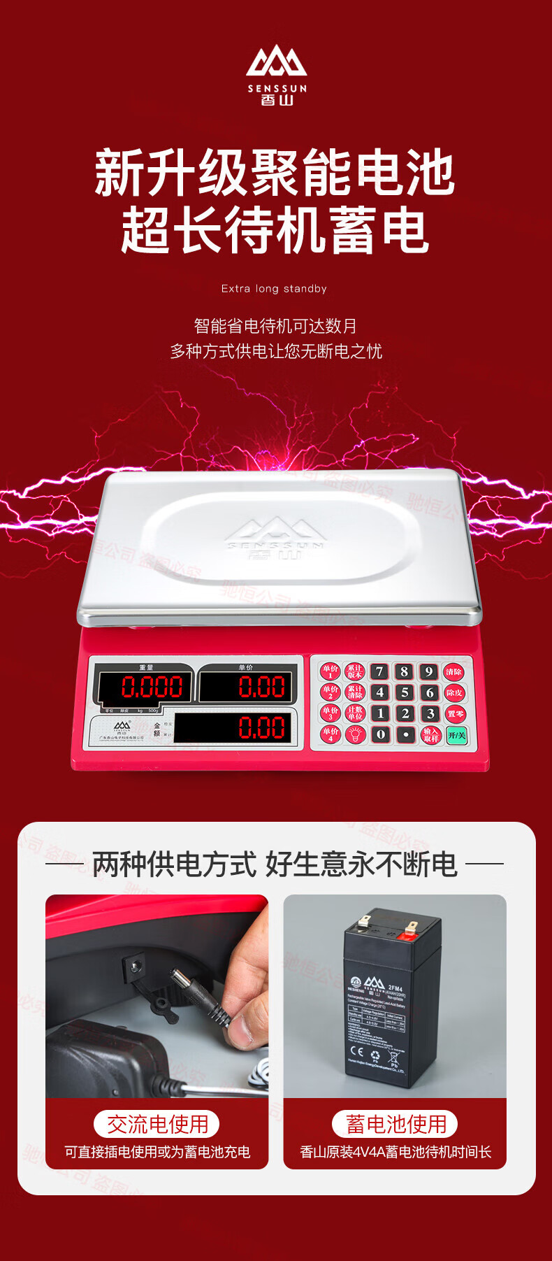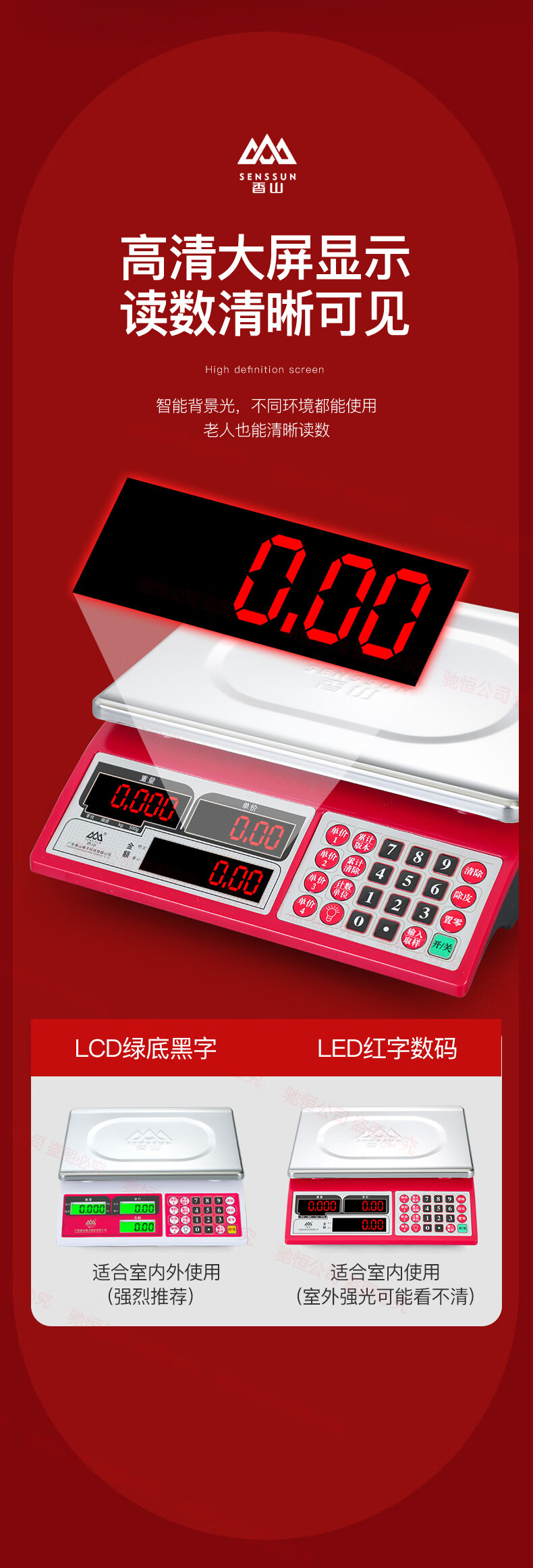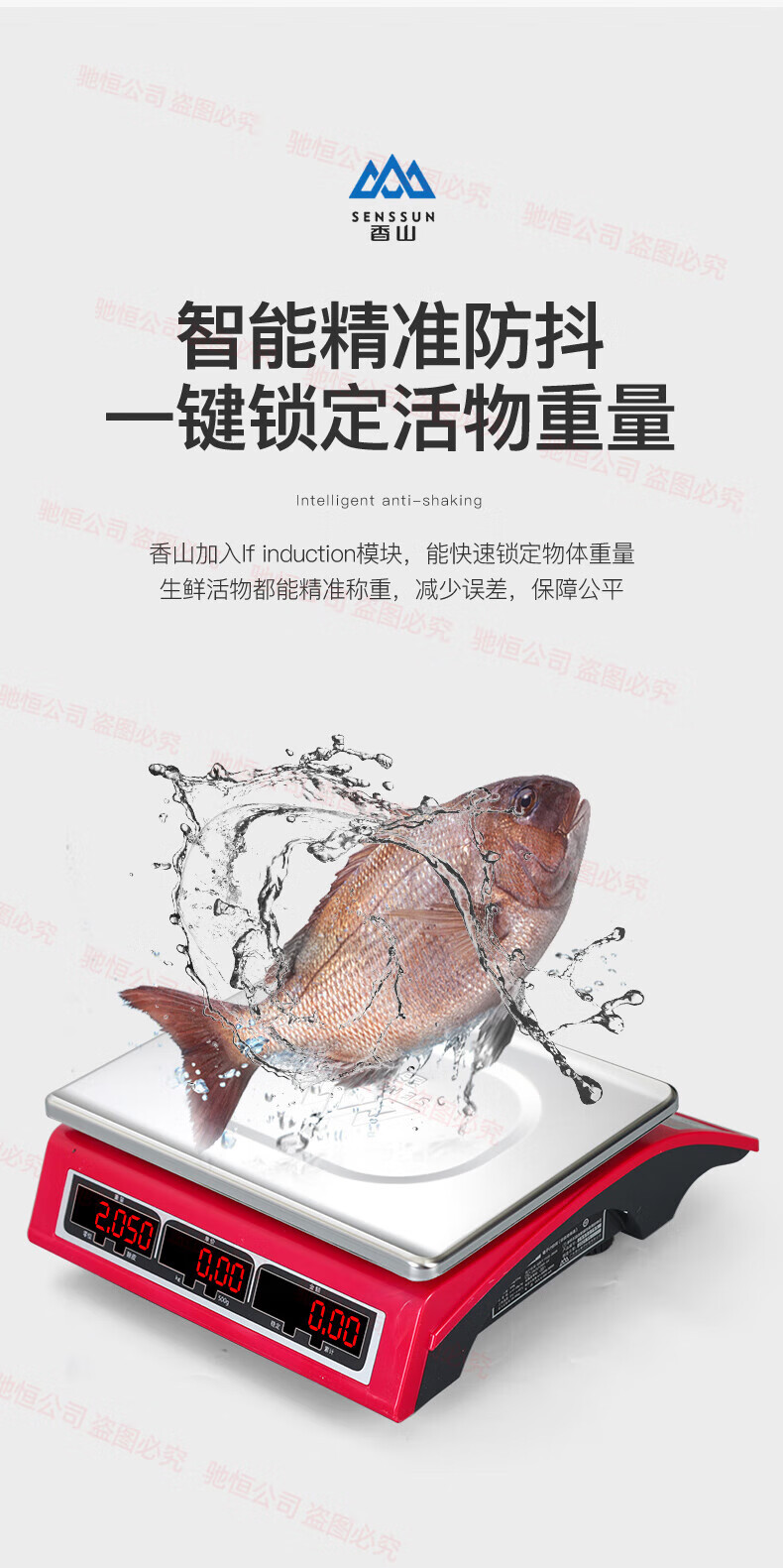Xiangshan brand electronic scale commercial small 30kg household waterproof brand platform scale stainless steel vegetable selling precision scale upgraded version 30kg (indoor red letter)
