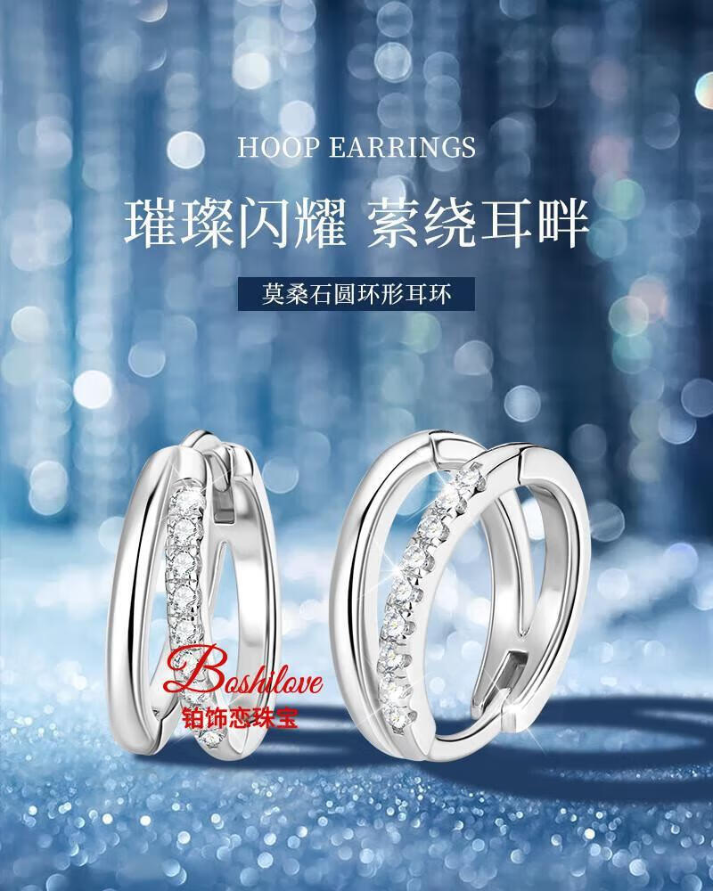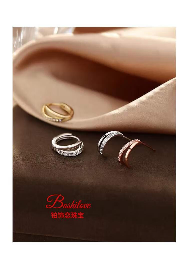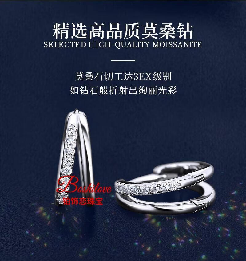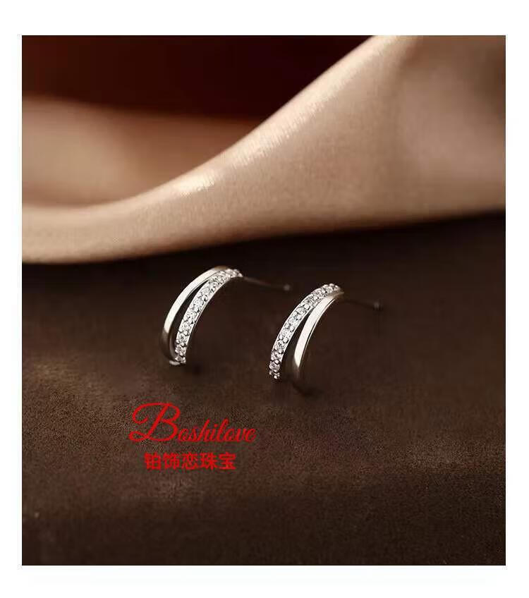 DL 1998 Fat Donglai same style platinum pt950 earrings for women moissanite double hoop earrings female sense platinum earrings earrings temperament platinum double hoop earrings