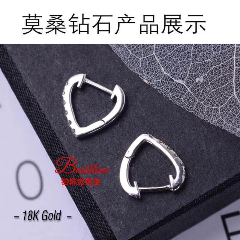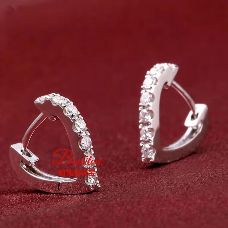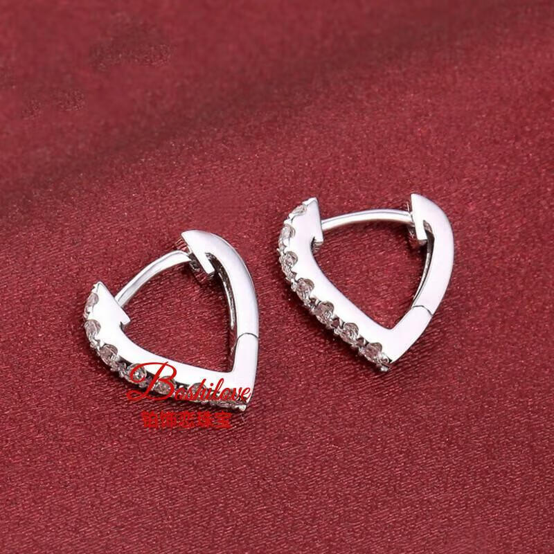 DL 1998 Fat Donglai same style pt950 platinum earrings moissanite white gold earrings full of diamonds heart-shaped earrings simple and versatile for men ALC/flawless under the mirror x D-E/extremely white x full of diamonds 20 points