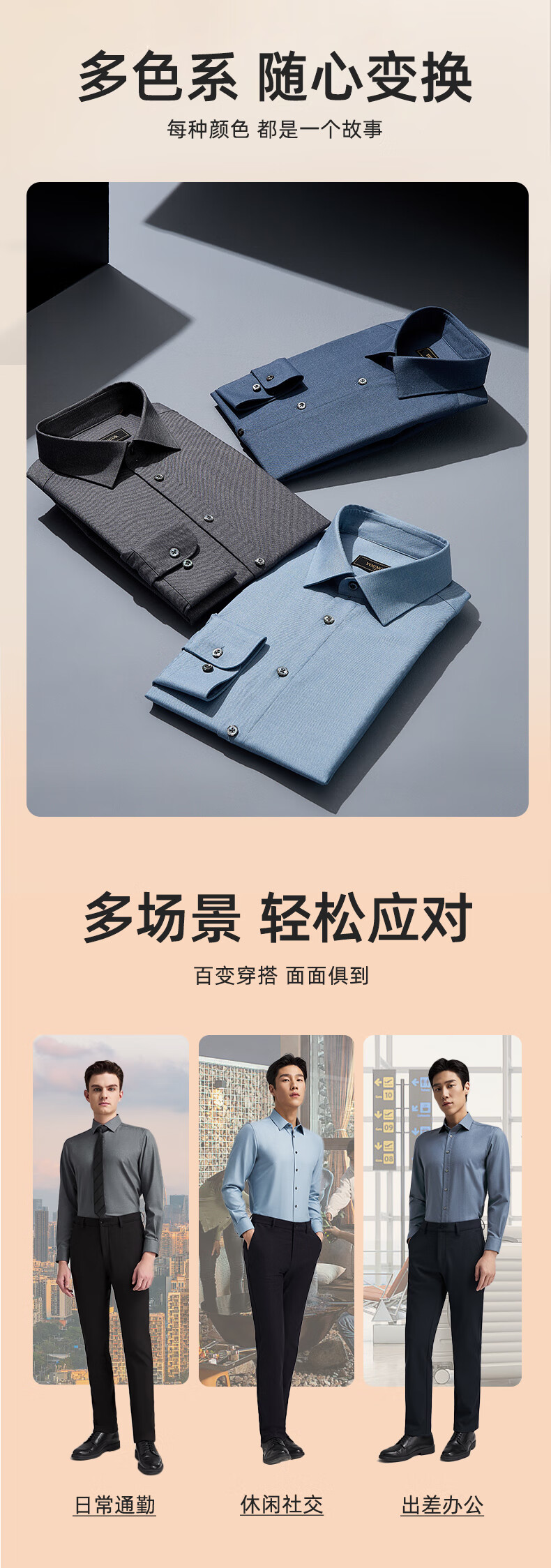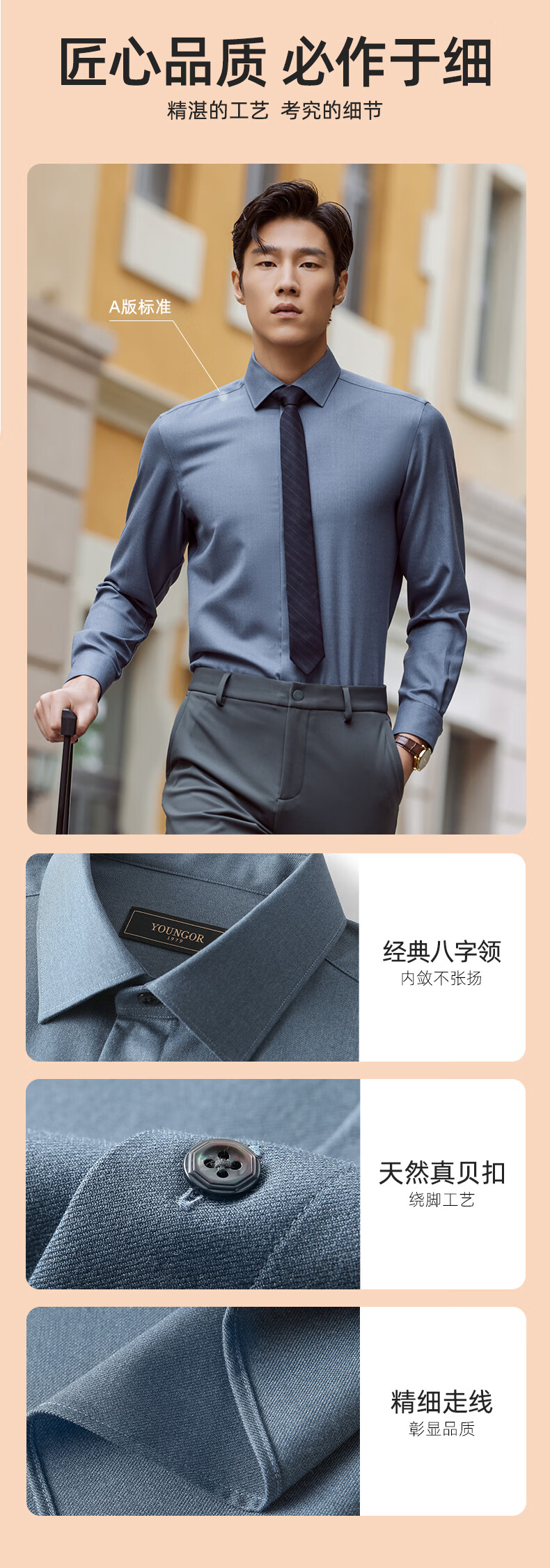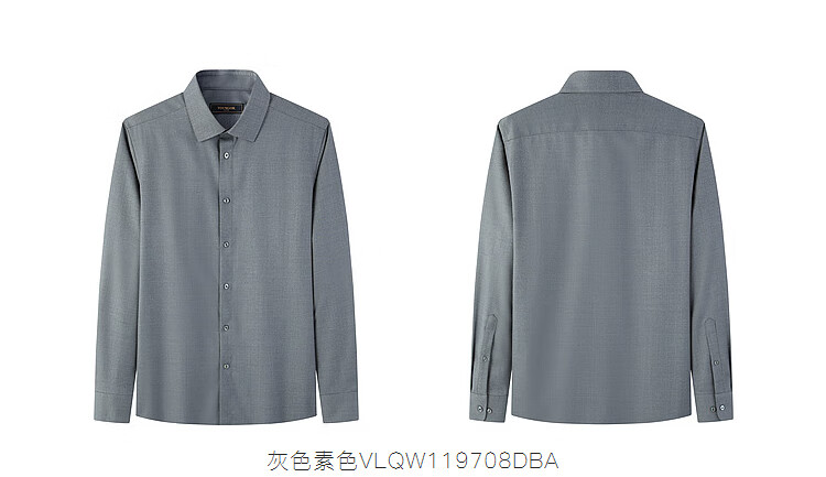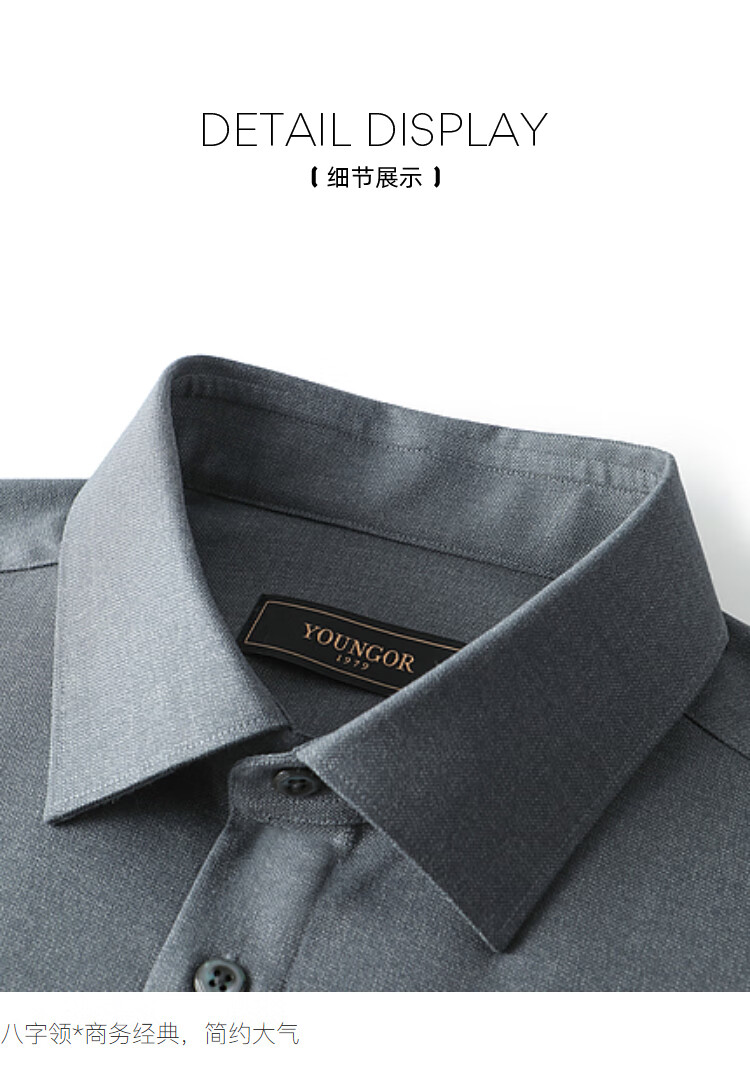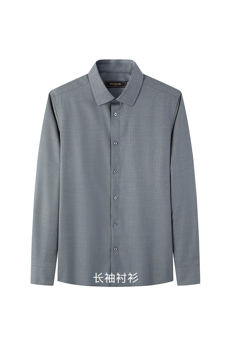 YOUNGOR shirt men's autumn and winter young men's long-sleeved shirt wool blended fabric solid color shirt gray plain VLQW119708DBA 44 (185/108A)