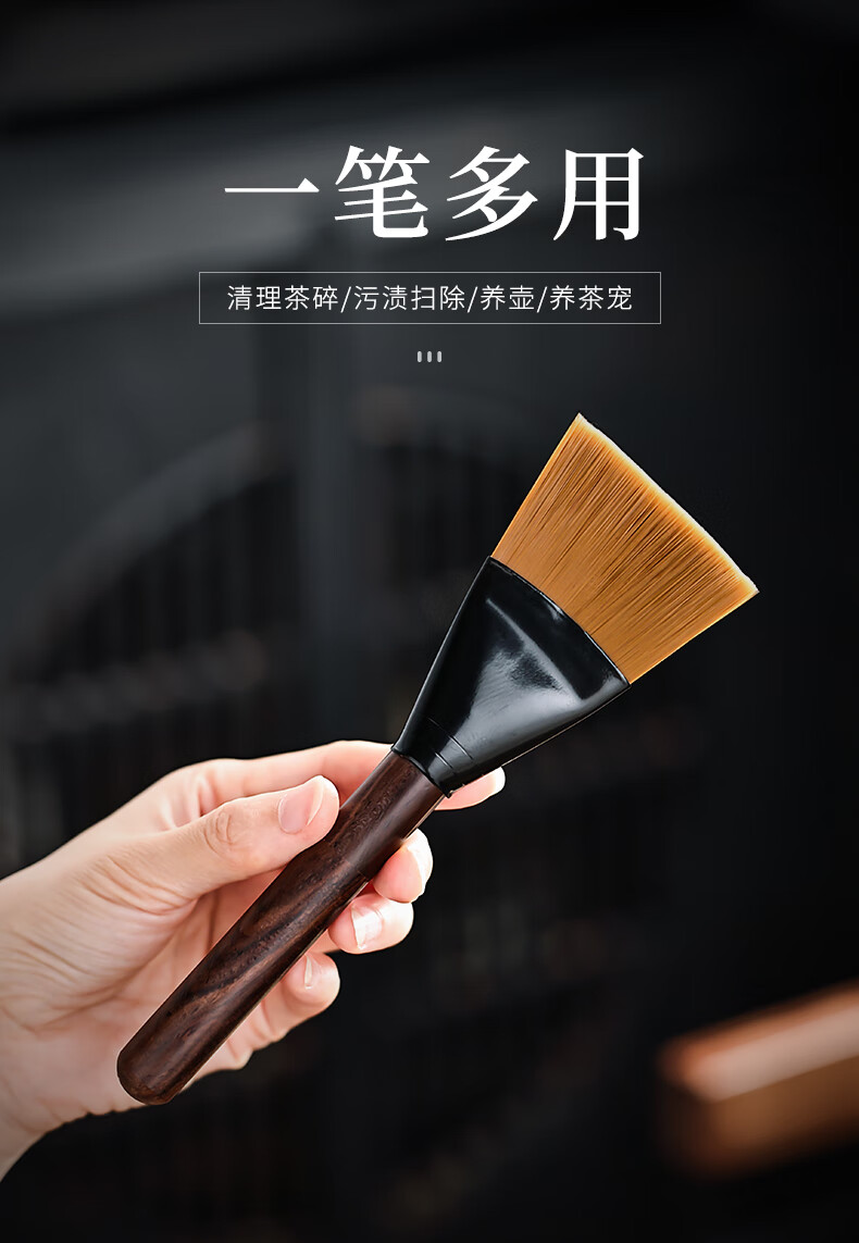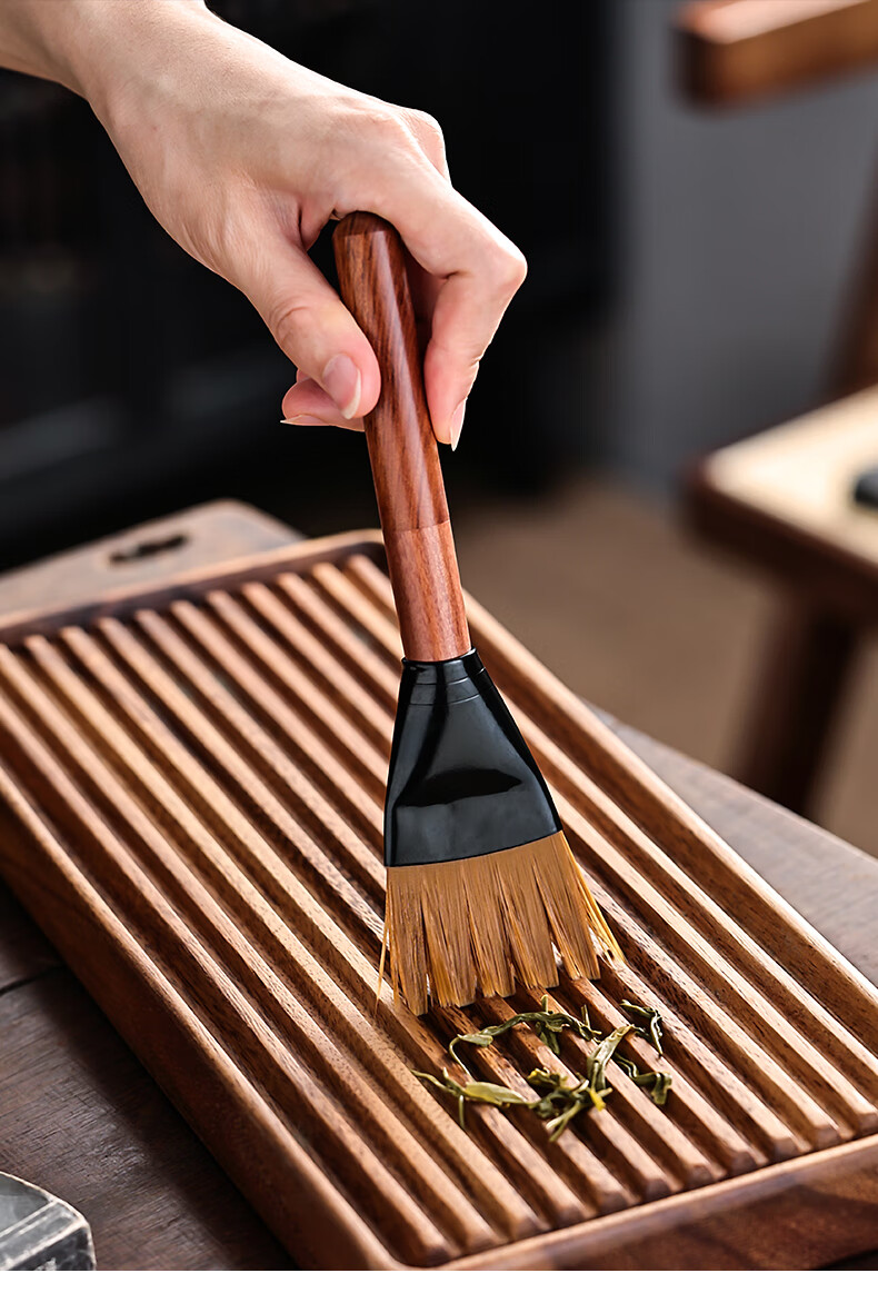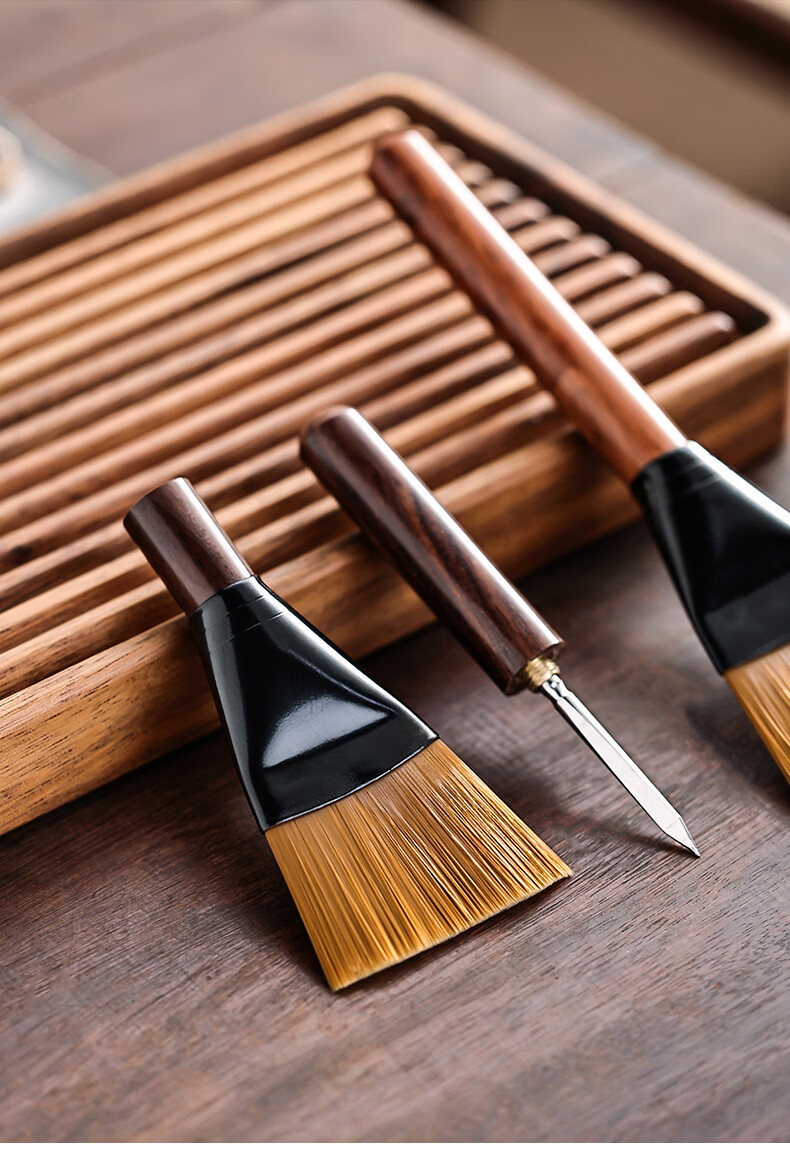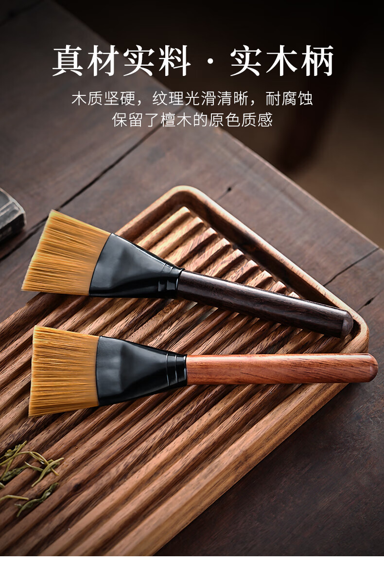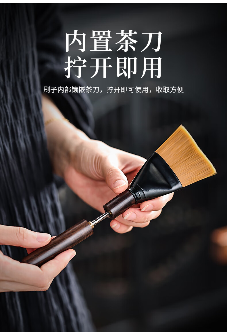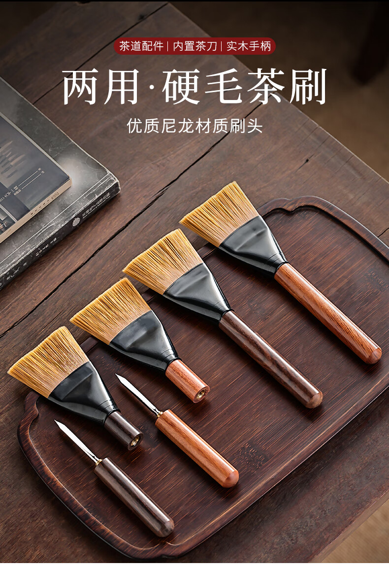 Mingqitang Dual-purpose Tea Brush with Tea Knife, Non-shedding Tea Tray Sweeping Brush, Squeegee Brush, Tea Scratcher, Pot Care Pen, Tea Set Accessories Dual-Purpose Dual-Purpose Large Black Sandalwood Hard Bristle Brush (Non-Shedding)