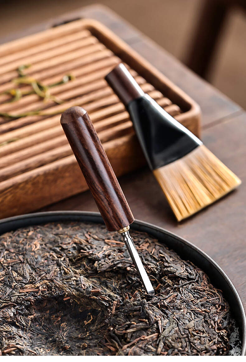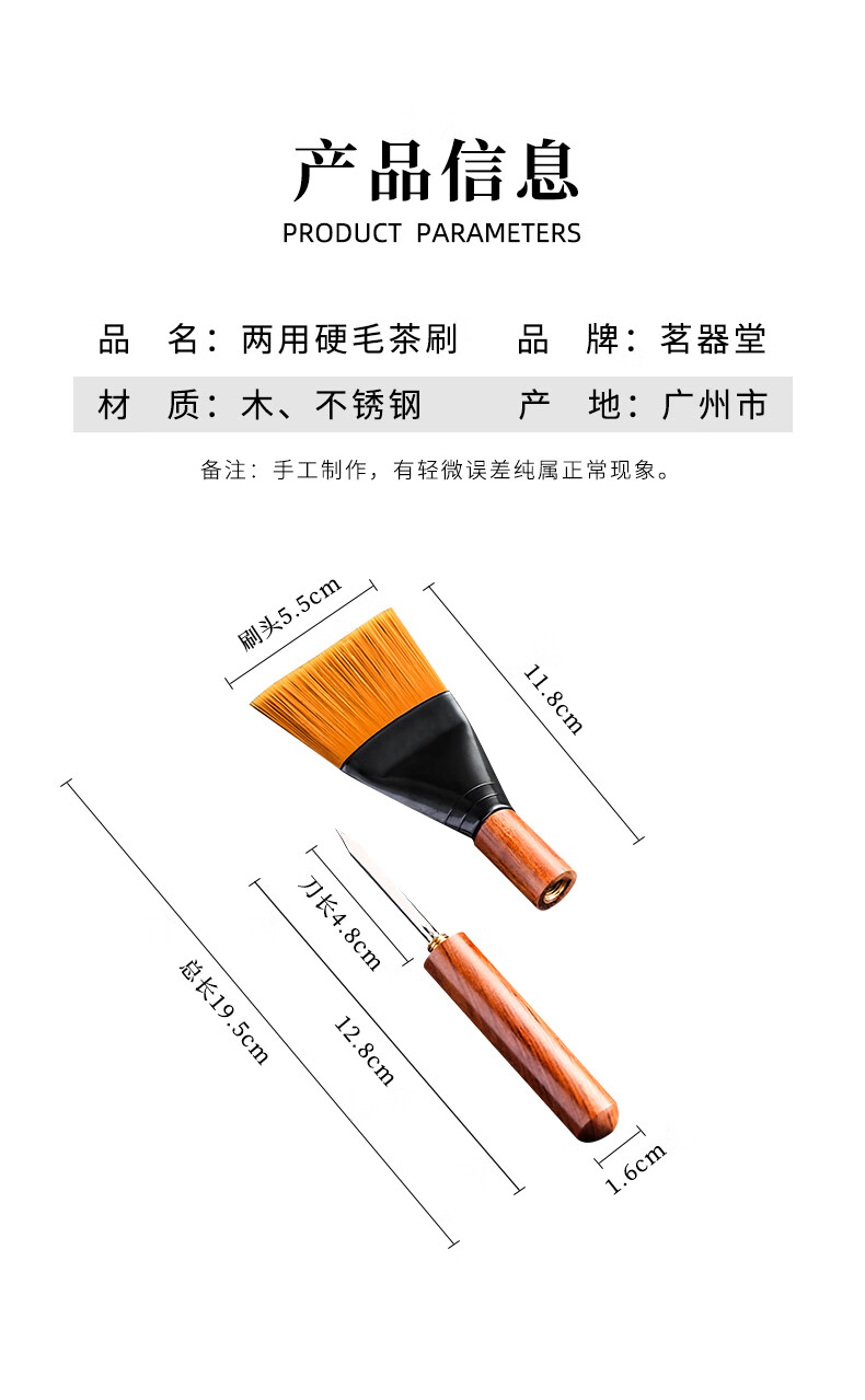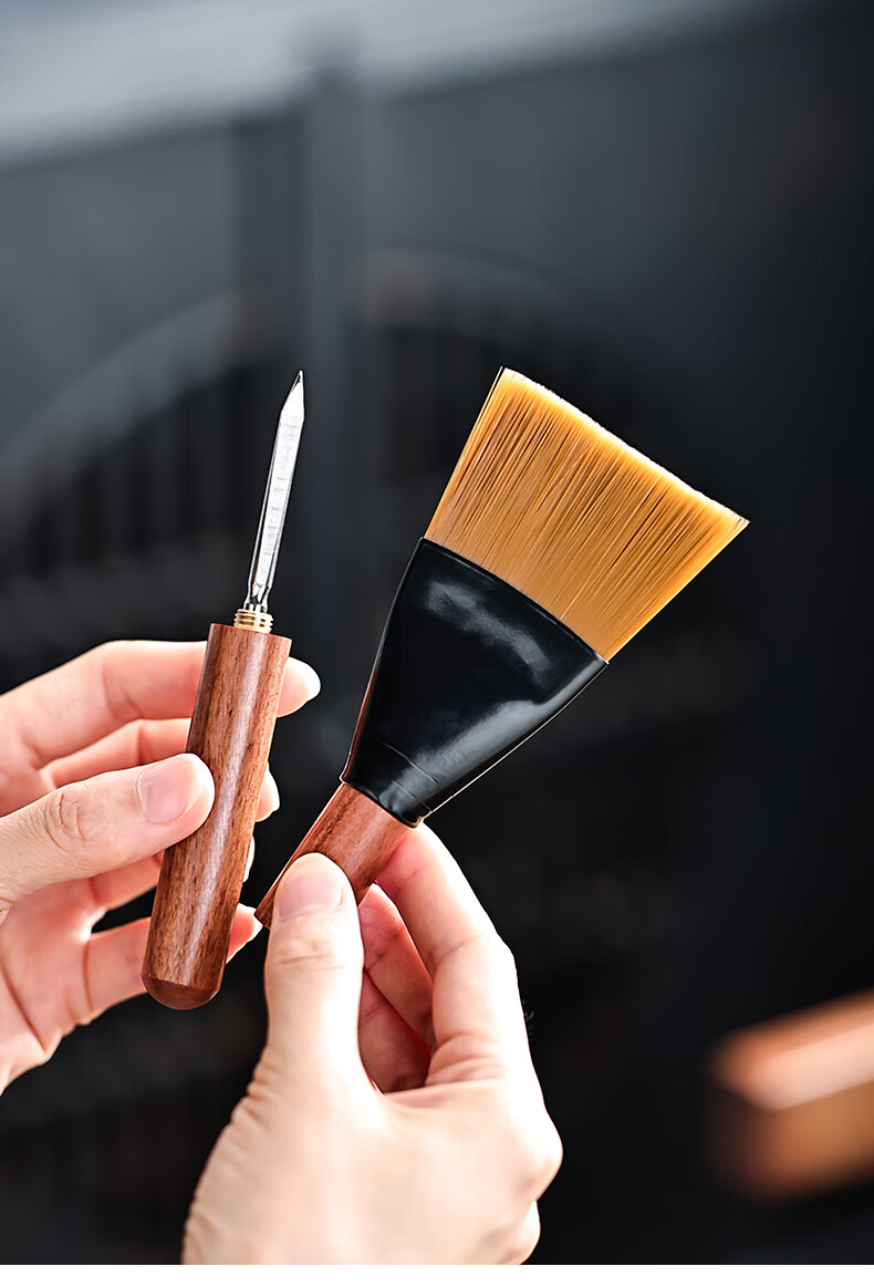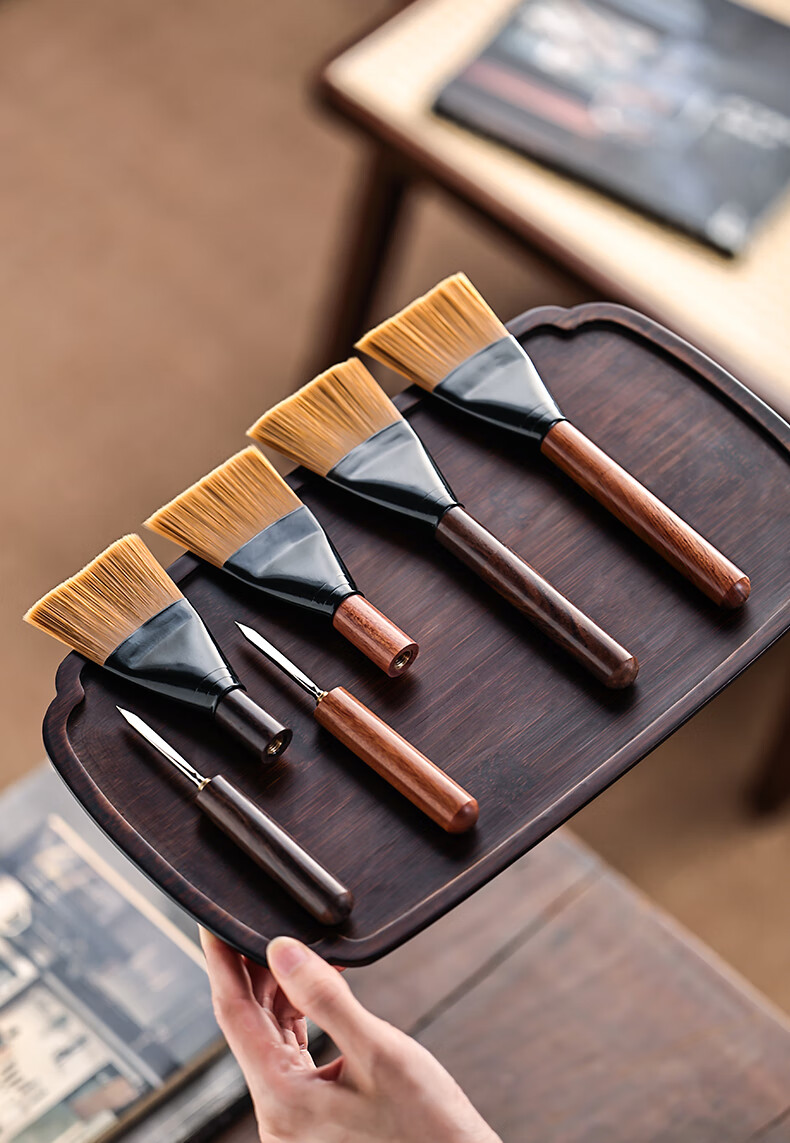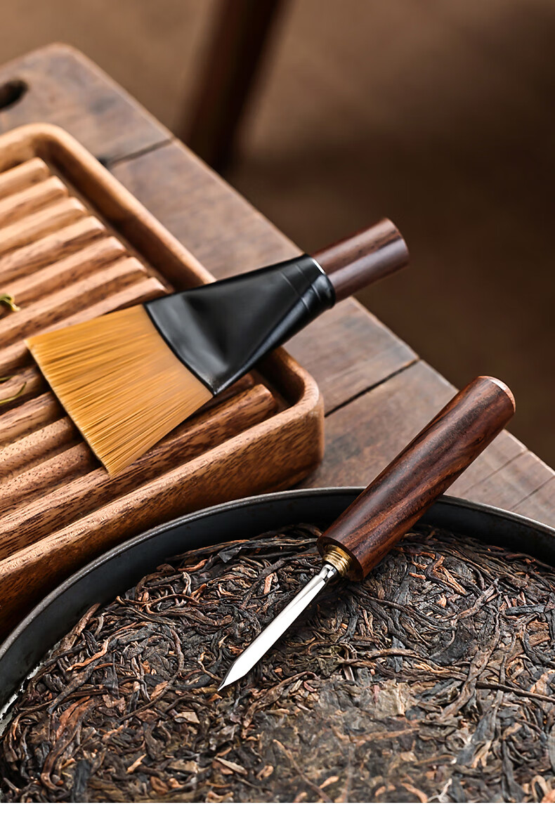 Mingqitang Dual-purpose Tea Brush with Tea Knife, Non-shedding Tea Tray Sweeping Brush, Squeegee Brush, Tea Scratcher, Pot Care Pen, Tea Set Accessories Dual-Purpose Dual-Purpose Large Black Sandalwood Hard Bristle Brush (Non-Shedding)