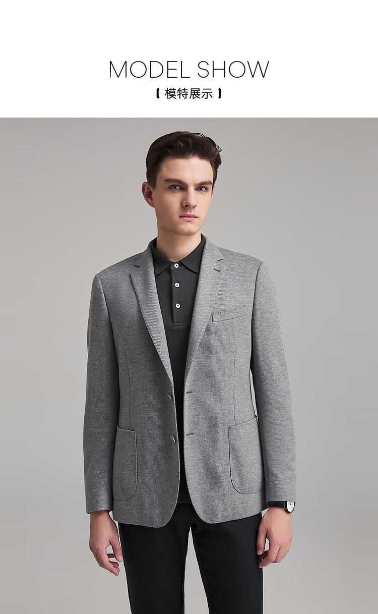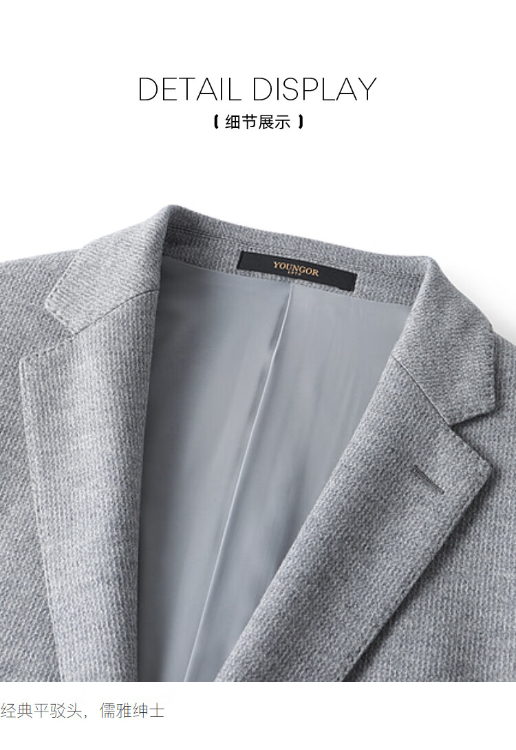 YOUNGOR Suit Men's Autumn and Winter Casual Suit Knitted Stretch Single Suit Light Gray VXXB225143ELY M 170/92A