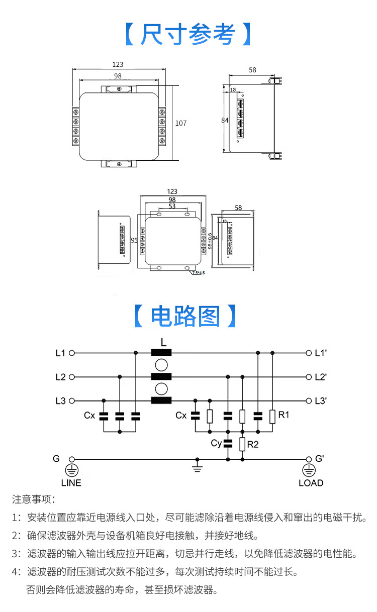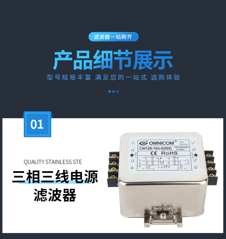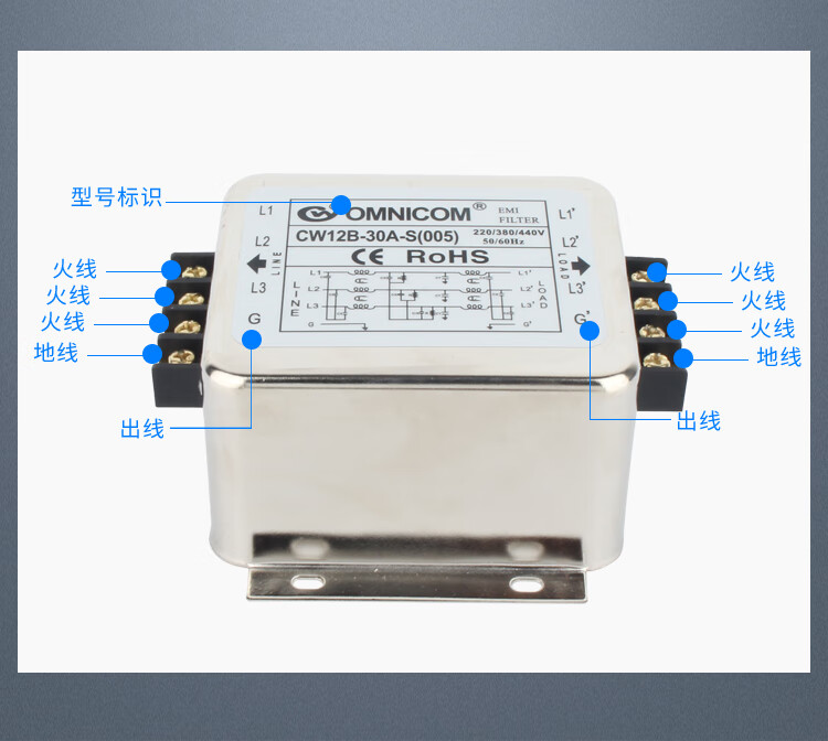 Taiwan Omnicom Power Filter dreiphasig 380V10A20A30ACW12B-20A-S (005) Anschlussschienentyp CW12B-10A-S (005) dreiphasig dreiadrig 10A CW12B-S (005) und optionale Schienentypinstallation
