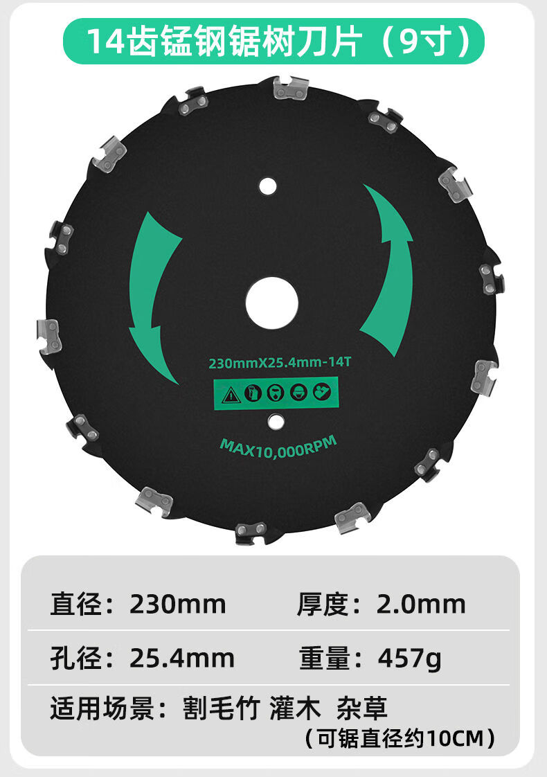 CPAI lawn mower tree sawing blade special thickened manganese steel brush cutter hard grass bamboo round chain saw blade general sawing wood lawn mower tree sawing blade (20 teeth)