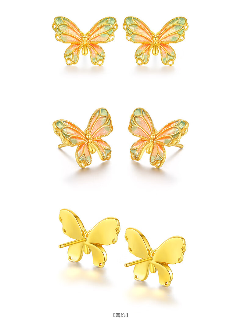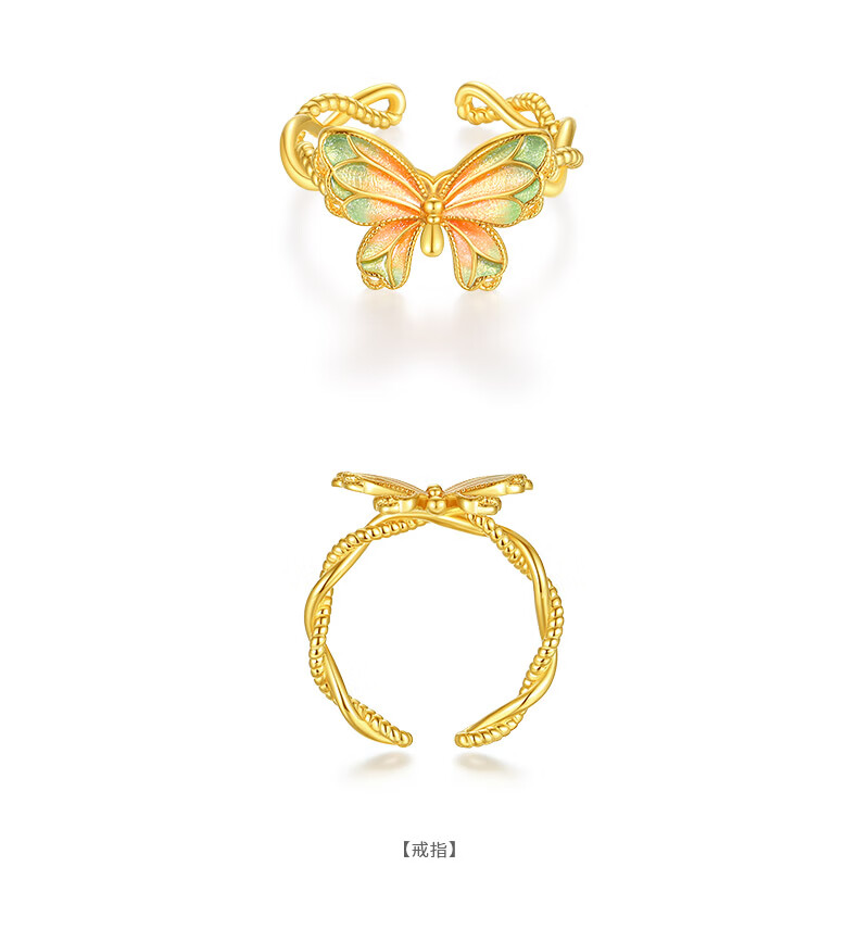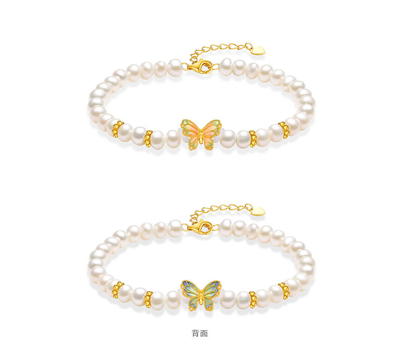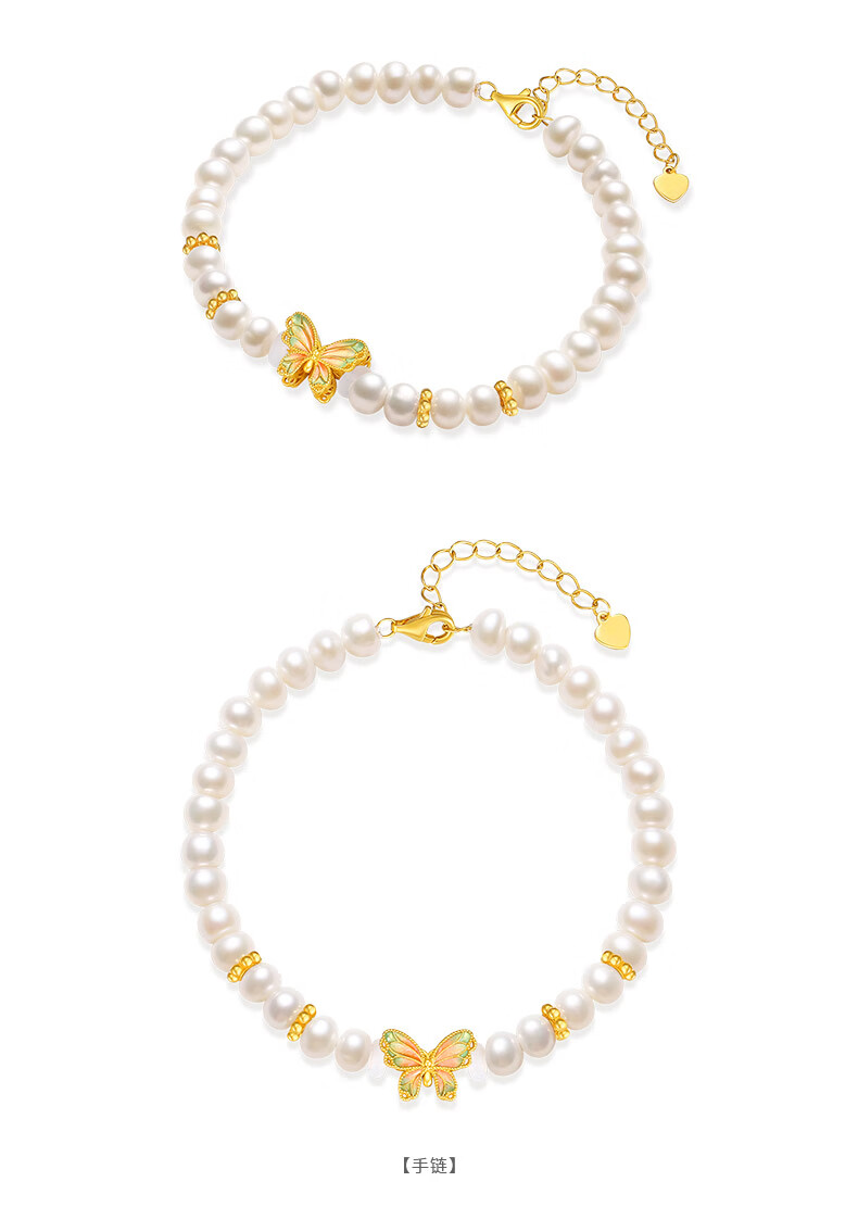 CHOW TAI SENG Butterfly Shadow Silver Sweater Chain Dopamine Gradient Enamel Pearl Necklace Birthday Gift for Girls Pink Green Gradient Silver Necklace