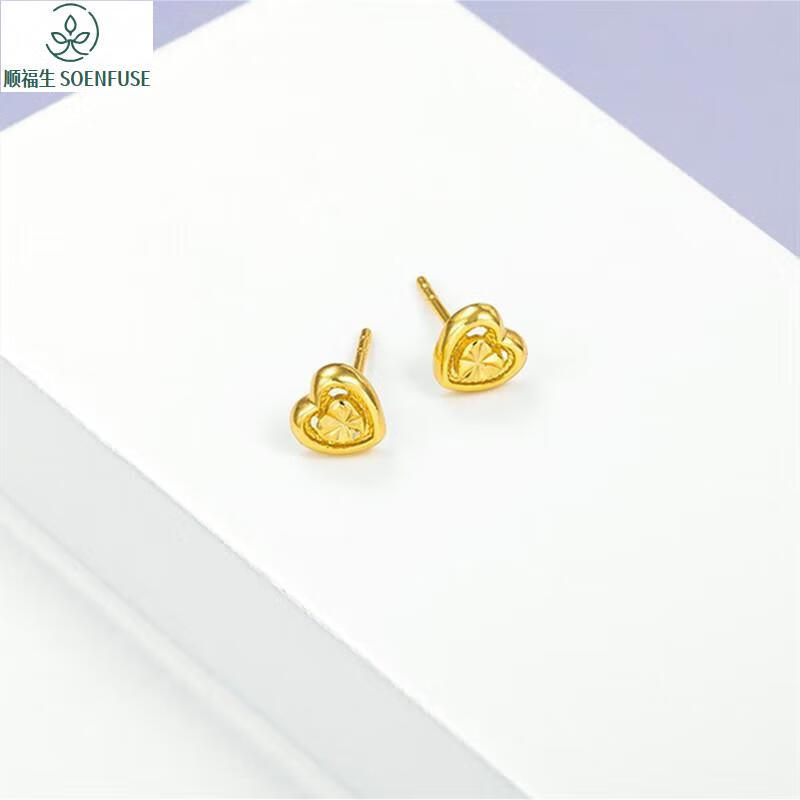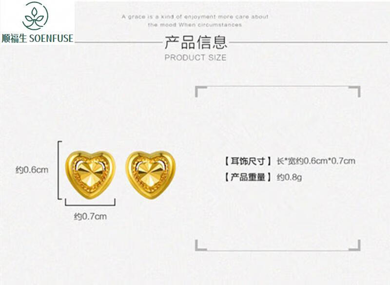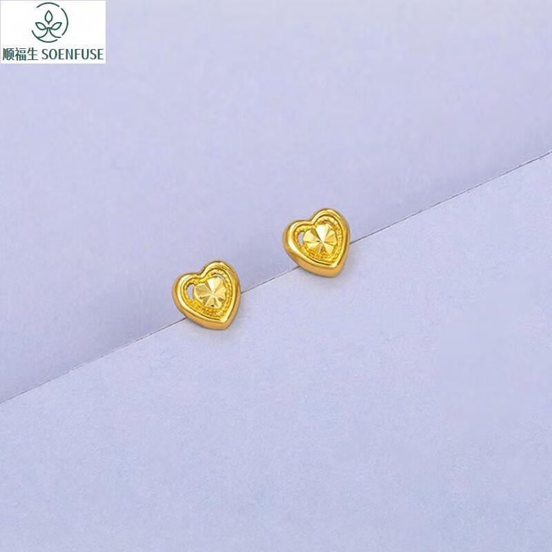Shunfusheng SOENFUSE 24K gold earrings for women gold 999 pure gold new love transfer earrings mini small earrings 18K ear stick gold