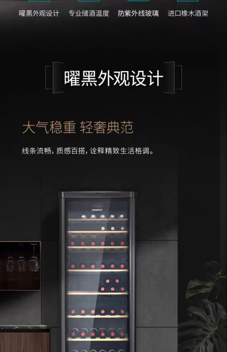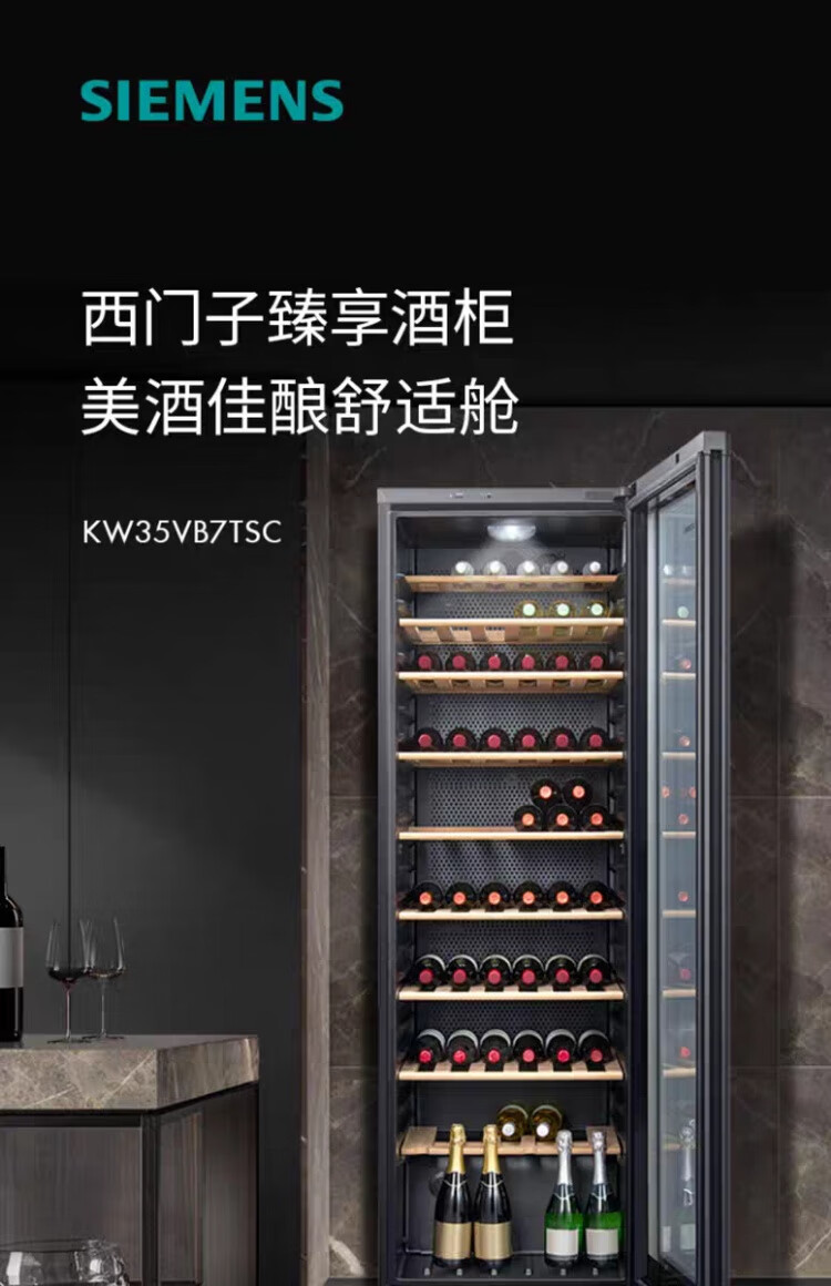 Siemens wine cabinet home wine cabinet constant temperature refrigeration imported oak wine rack black KW35VB7TSC kw35vb7tsc imported oak wine rack 120 bottles
