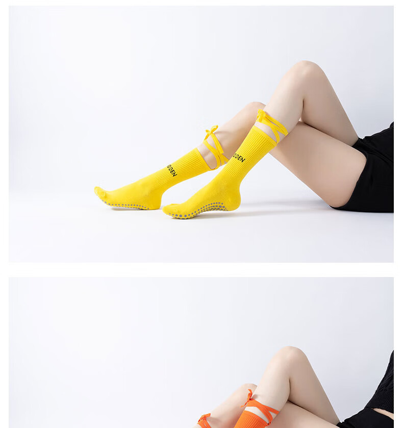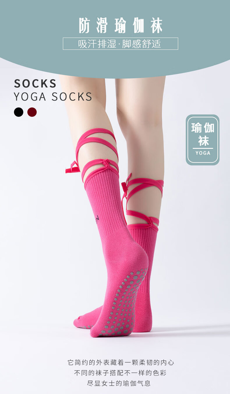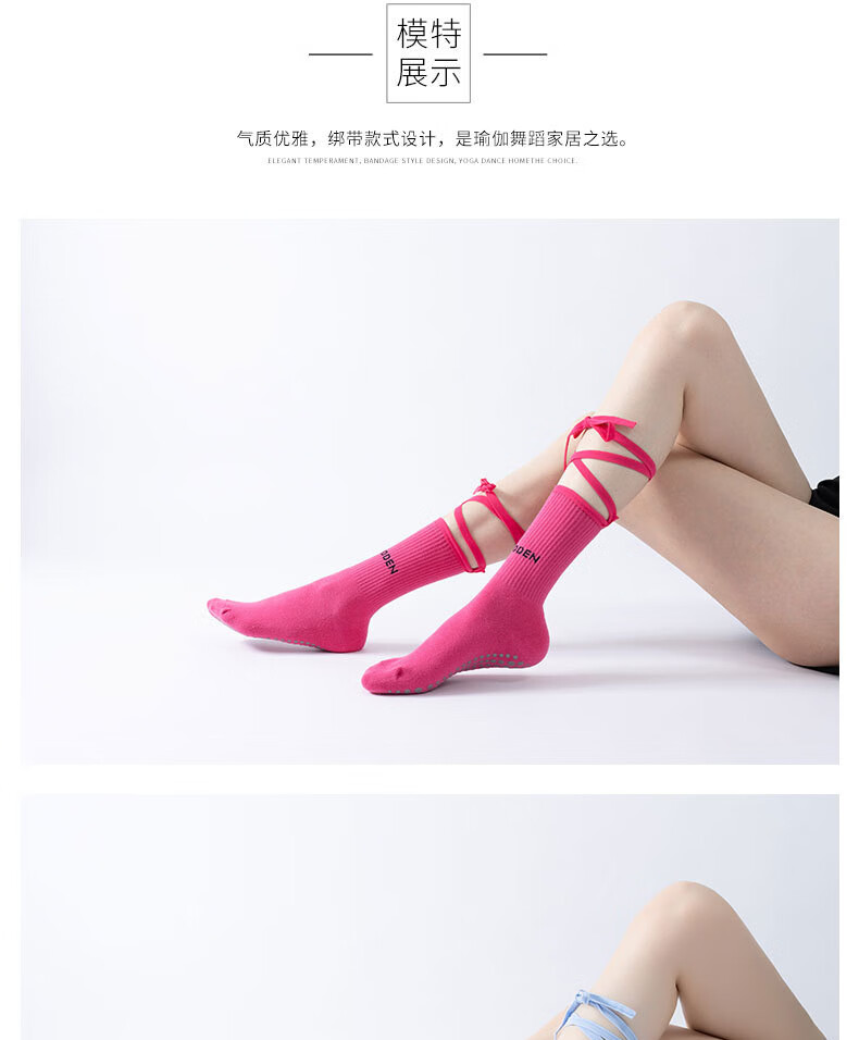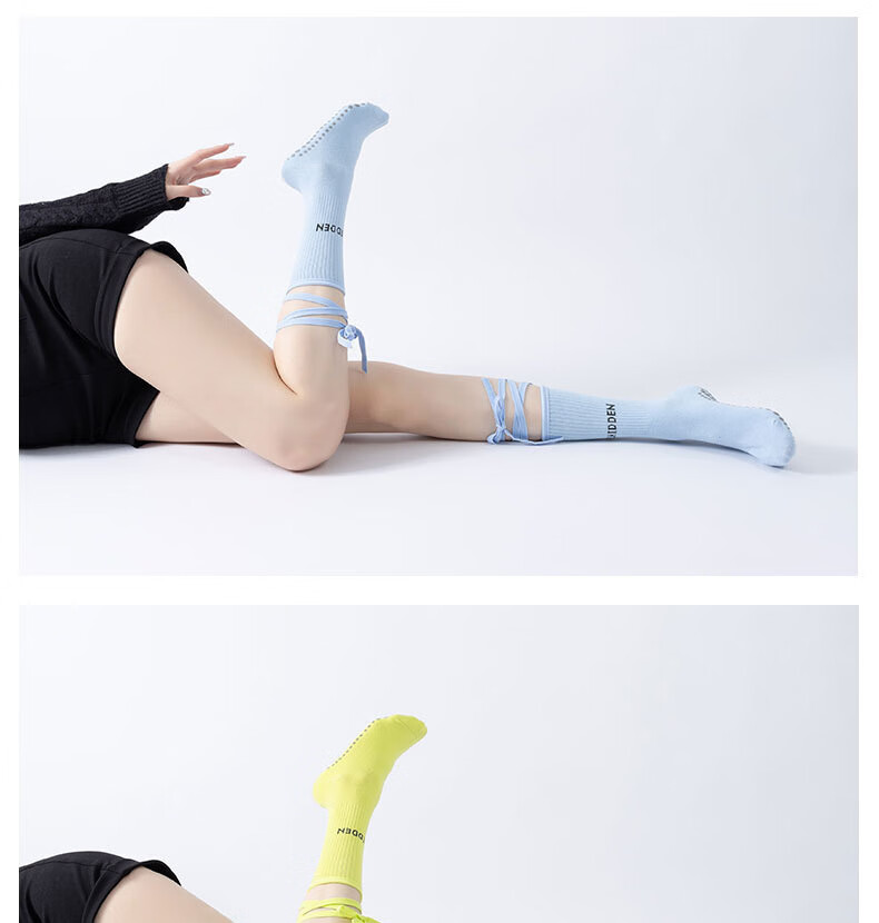 Huodiniao autumn and winter yoga socks professional anti-slip female adult Pilates socks straps long-tube fitness aerobics sports floor socks straps mid-tube anti-slip yoga socks-light blue