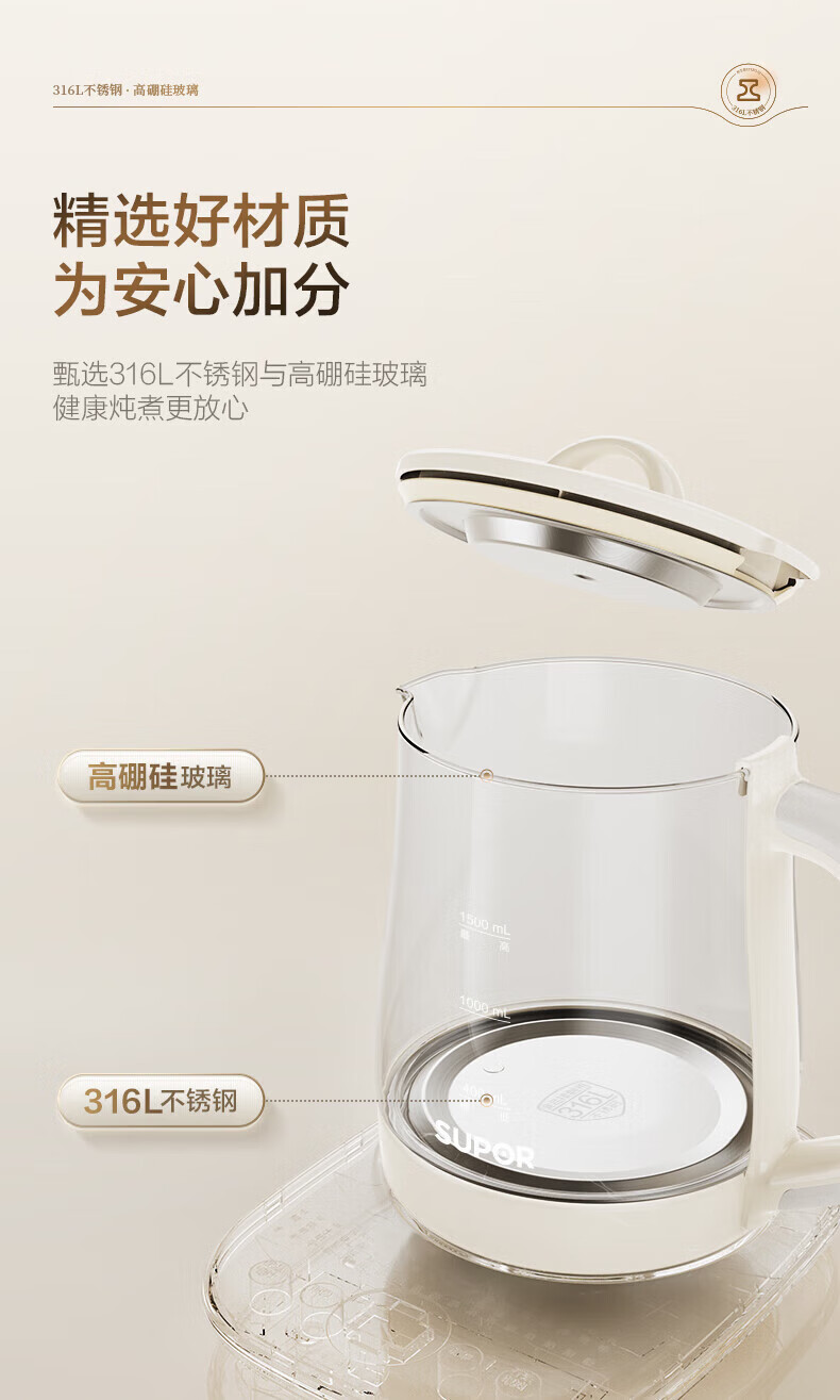 SUPOR Health Pot 316L Stainless Steel 1.5L Tea Boiler Flower Teapot Constant Temperature Kettle Kettle Electric Kettle Office Insulation Tea Kettle Upgraded 316L Stainless Steel 1.5L