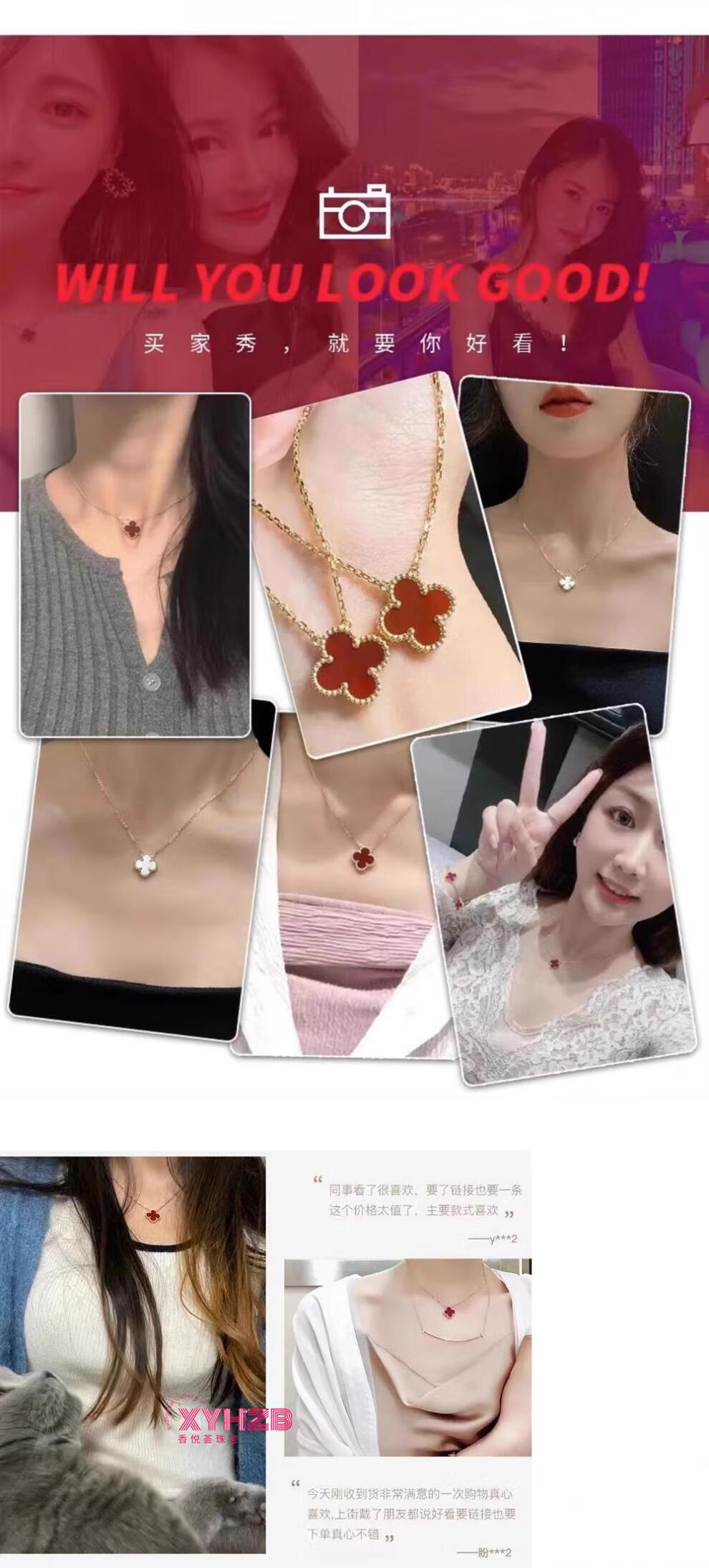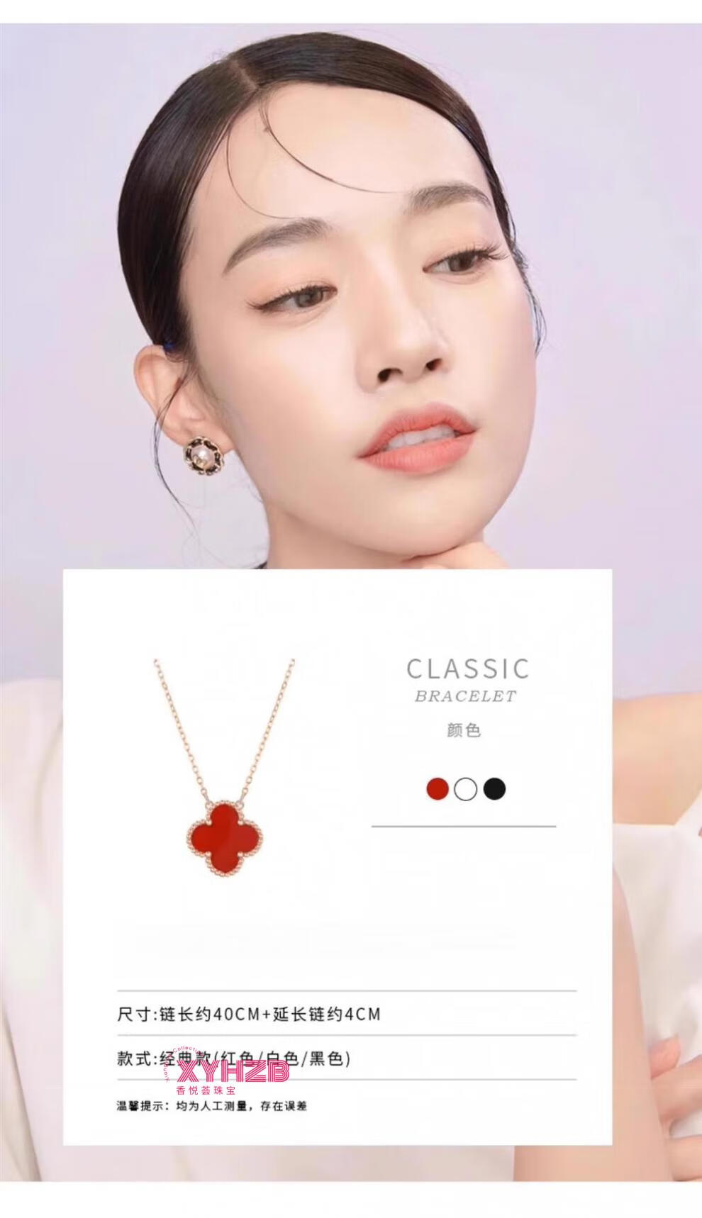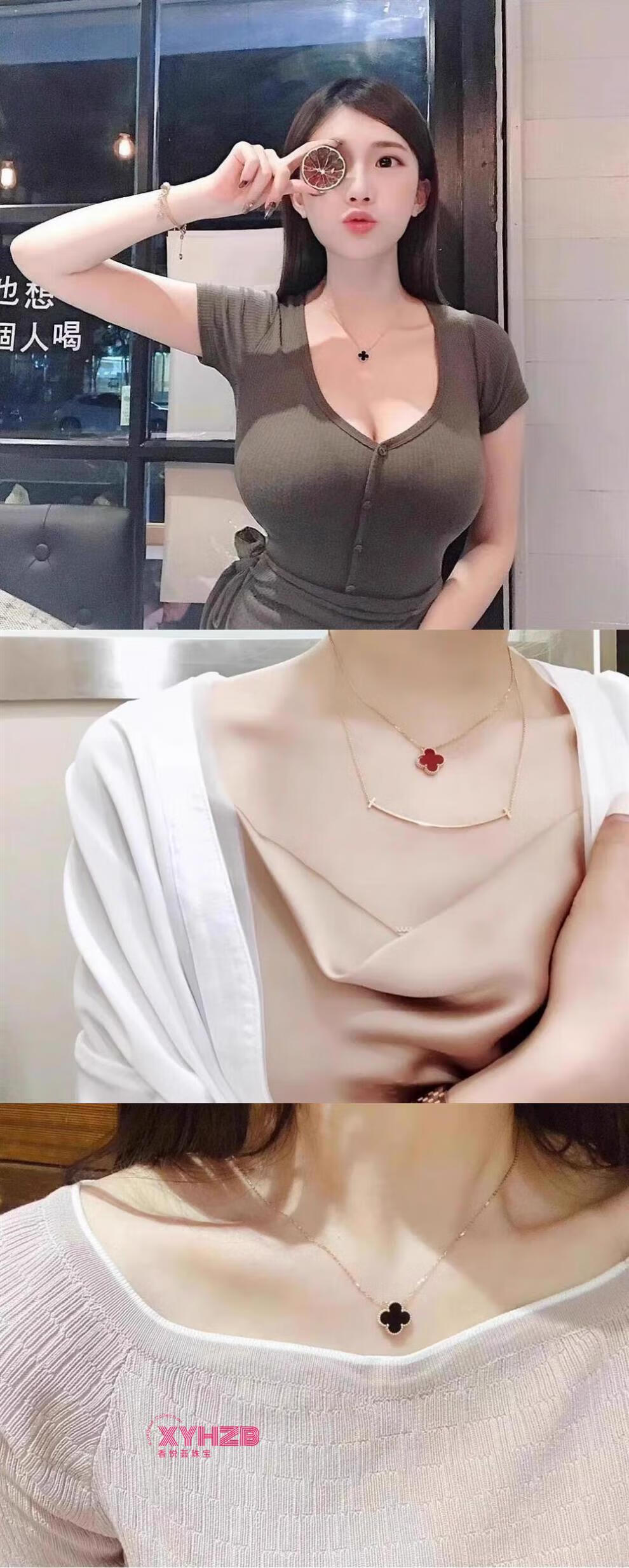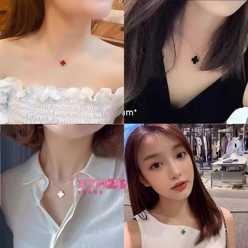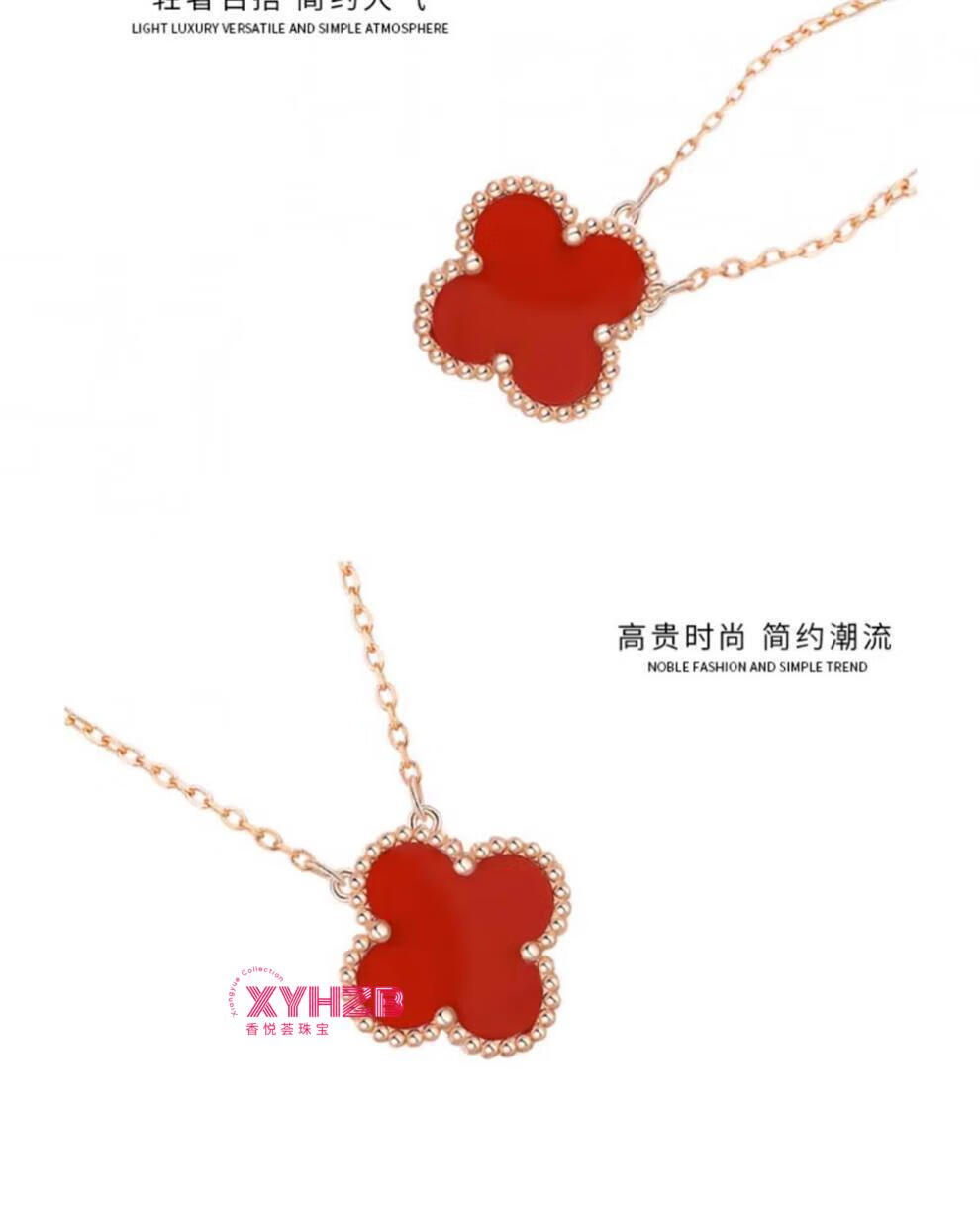 Fat Donglai's same style 18K color gold four-leaf clover necklace for girls 18K rose gold Au750 color gold light luxury clavicle rose gold four-leaf clover red necklace