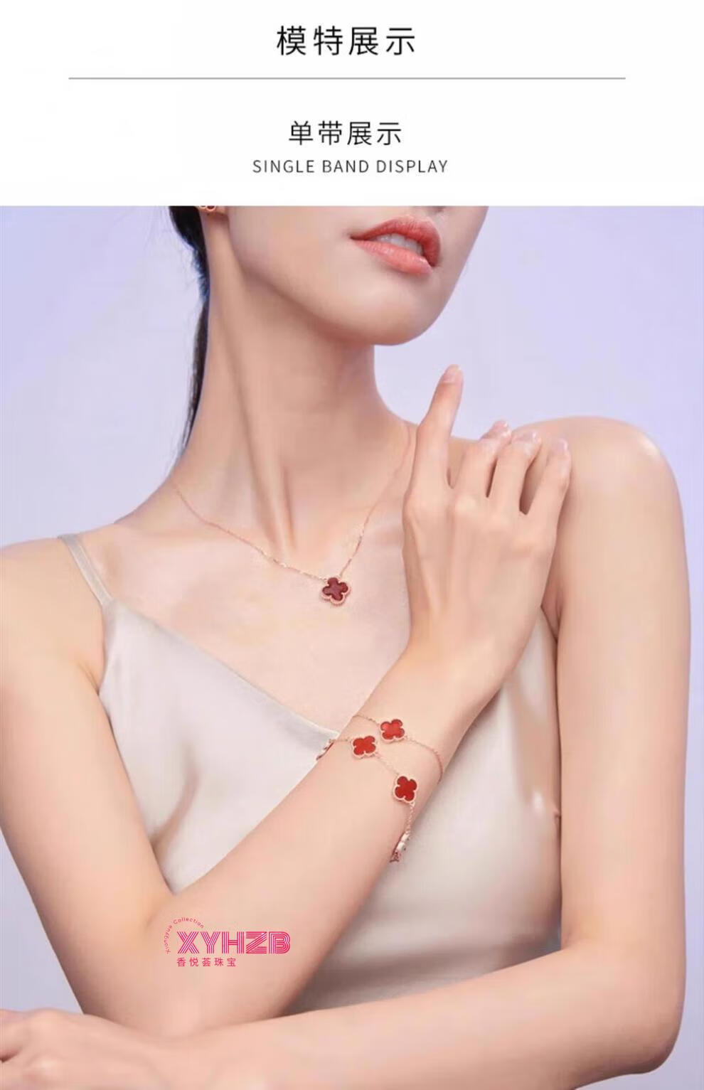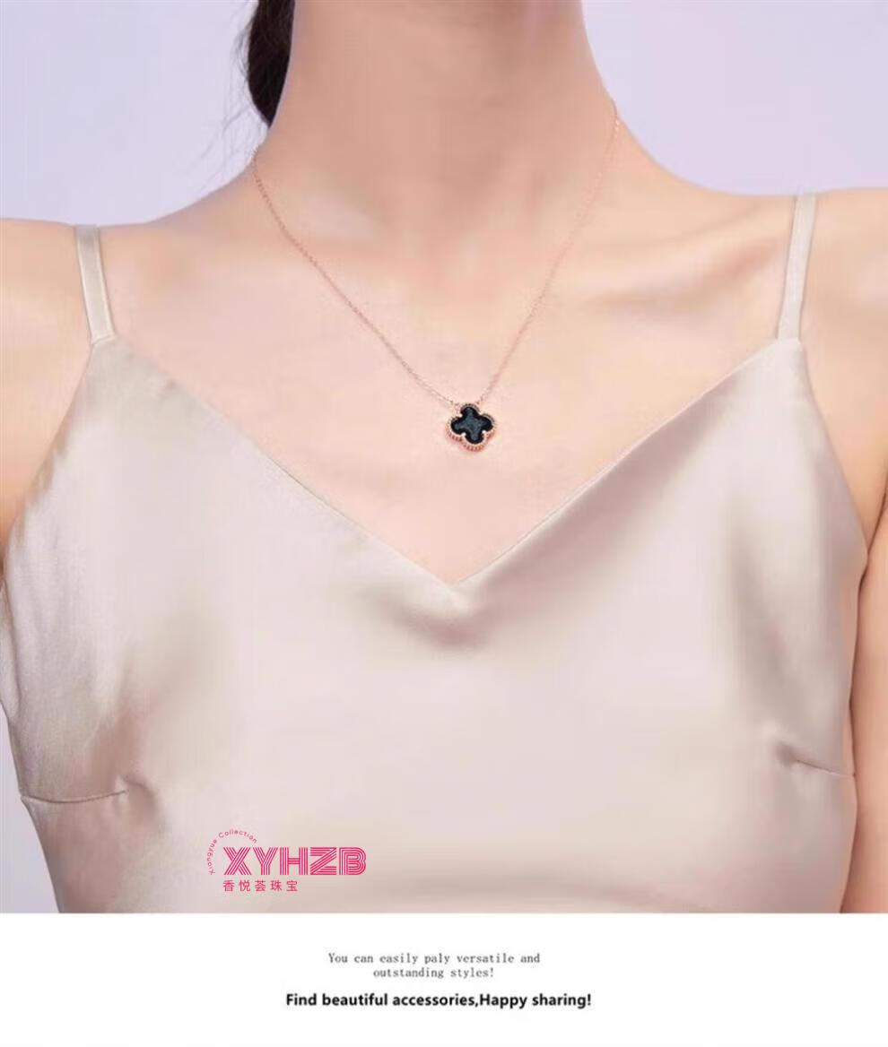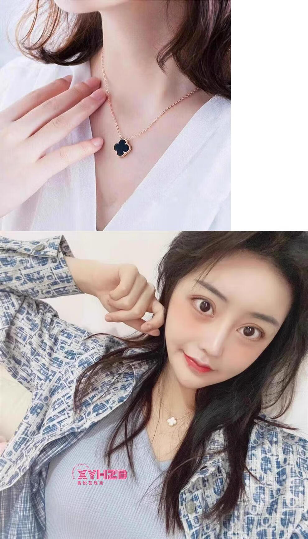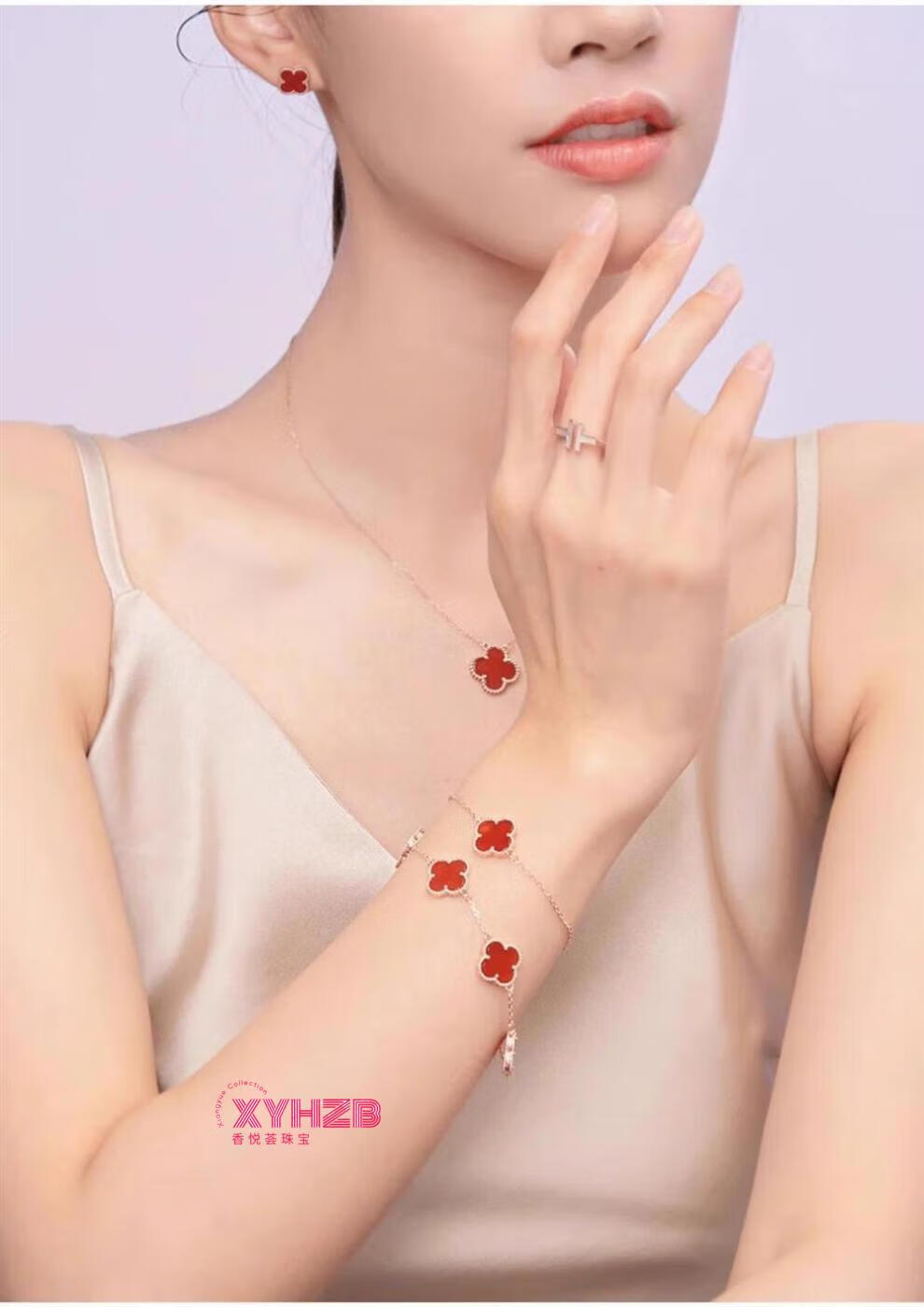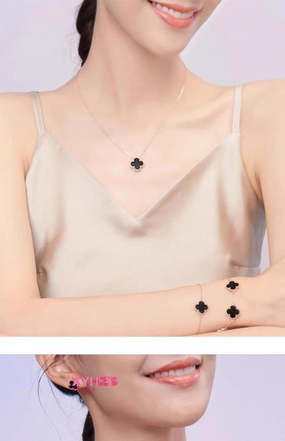 Fat Donglai's same style 18K color gold four-leaf clover necklace for girls 18K rose gold Au750 color gold light luxury clavicle rose gold four-leaf clover red necklace
