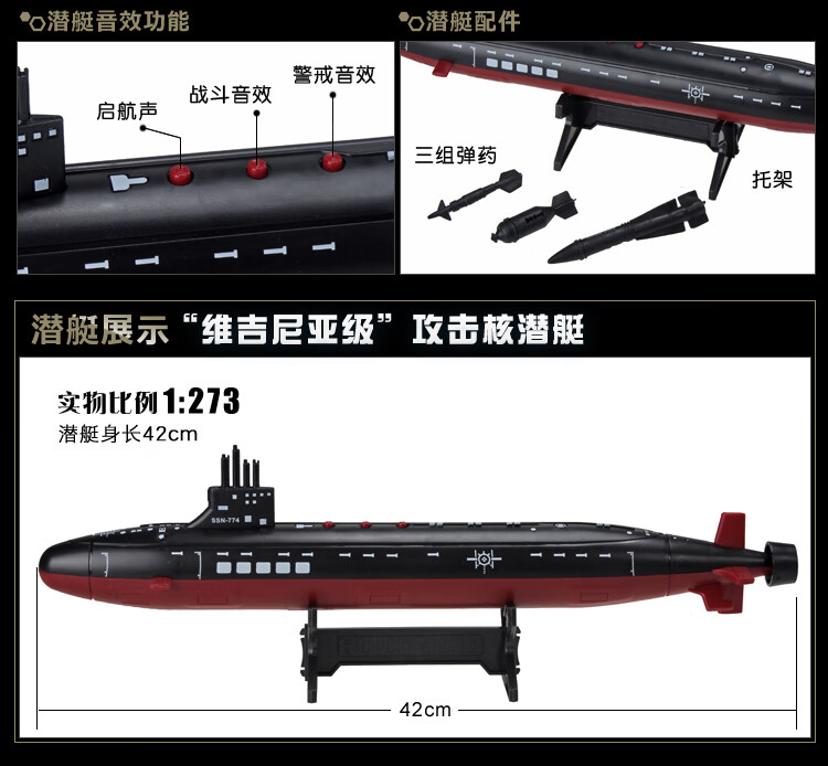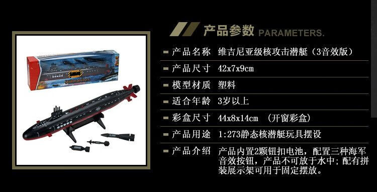 Yingtang Navy Virginia Attack Nuclear Submarine Toy Ornament Children's Marine Military Static Model Submarine Toy Virginia Nuclear Submarine