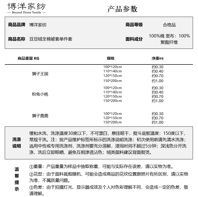 Boyang Baby (Beyond Kids) Cotton Children's Cartoon Quilt Cover Newborn Beanie Velvet Pure Cotton Infant Baby Quilt Cover Beanie Velvet Cotton Quilt Cover Lion Deer 100cm*120cm
