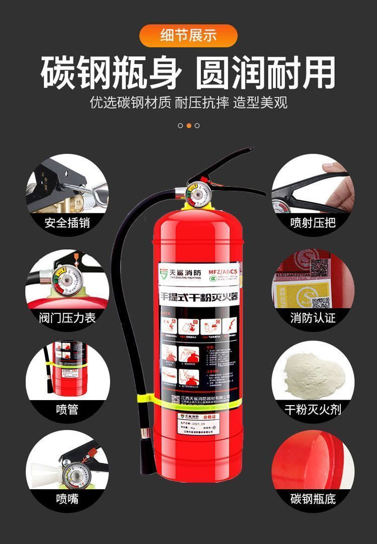 Tianzhenjue fire extinguisher 4kg portable dry powder commercial store use 5kg factory use 8KG private car household use 4kg fire extinguisher for shop use