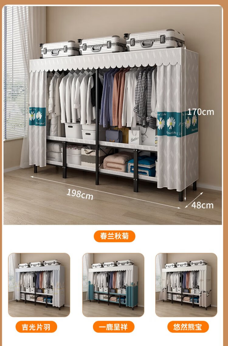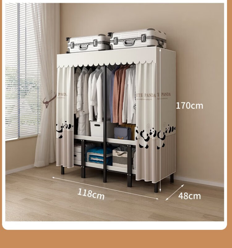 Good wardrobe installation-free steel frame structure household bedroom folding wardrobe full steel frame cloth wardrobe rental room storage cabinet 1.58 meters Youran Xiongbao/folding style