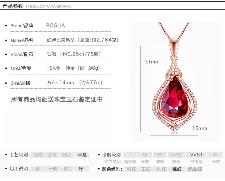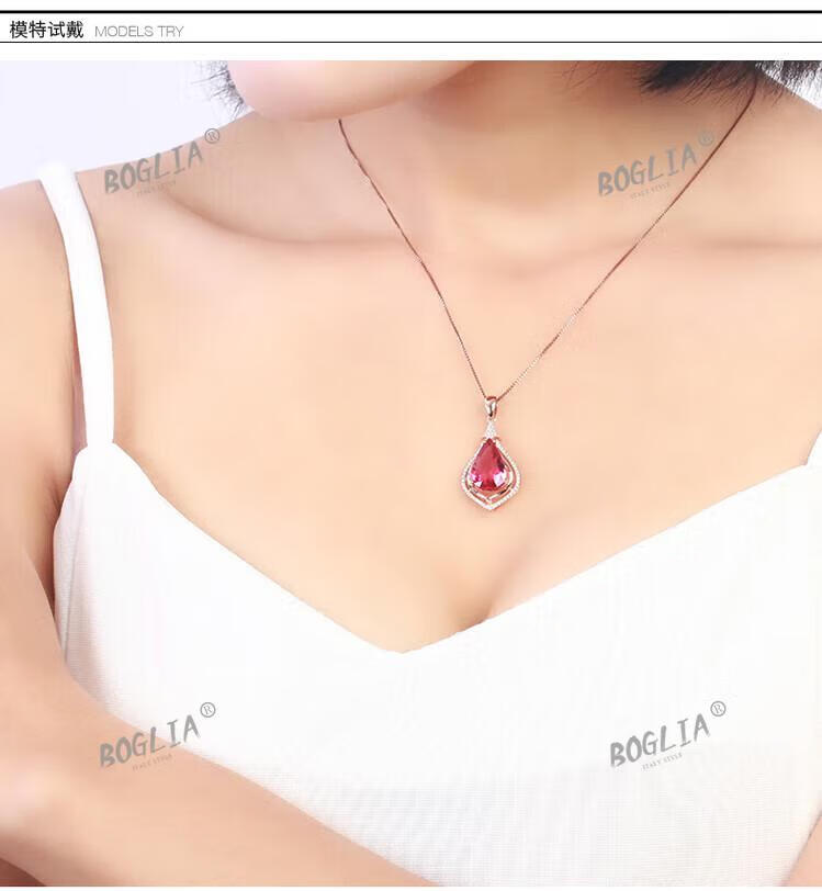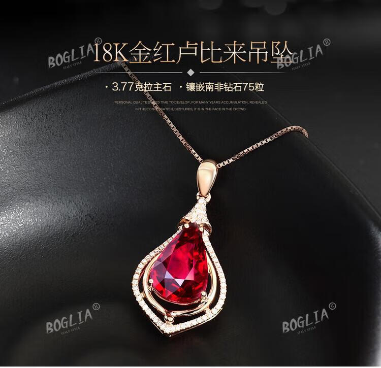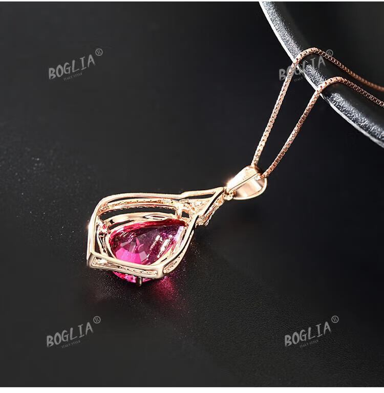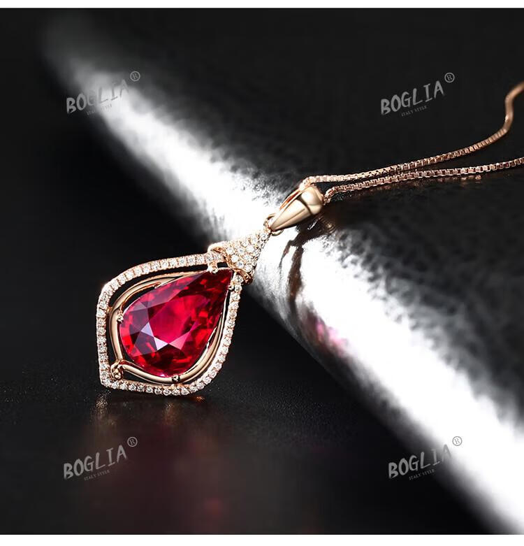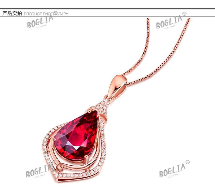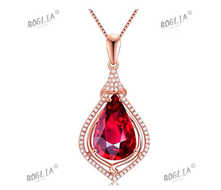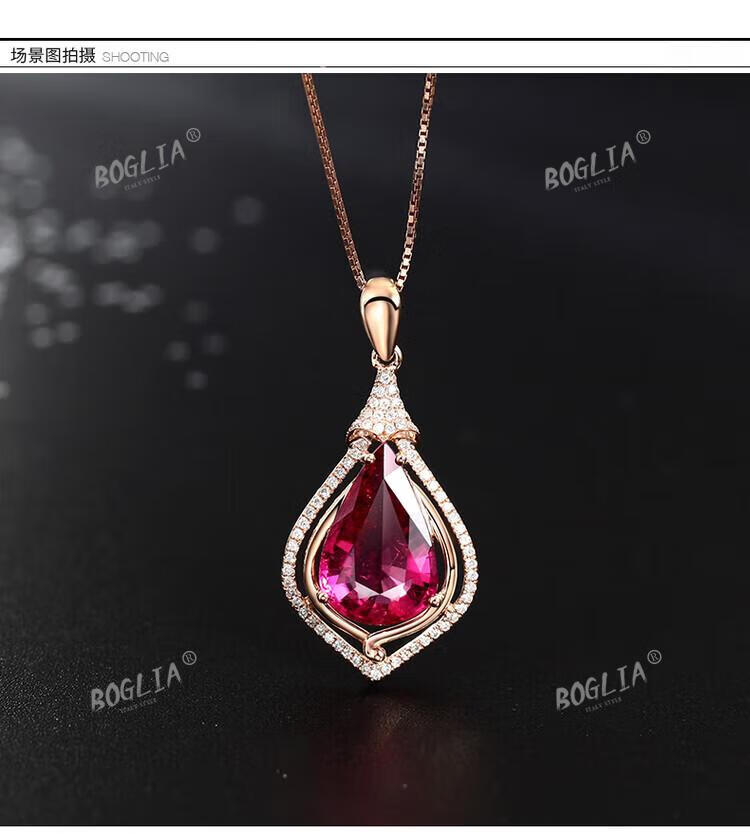 BOGLIA Pigeon Blood Red Gemstone Necklace Women's 18 Rose Gold K Rubile Red Tourmaline Pendant Birthday Gift 3.77 Carat Pigeon Blood Red Tourmaline Necklace