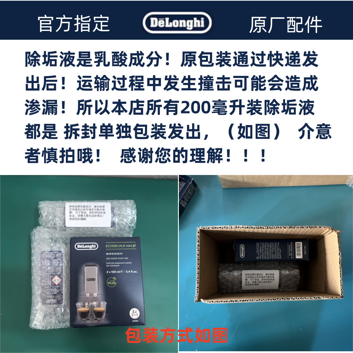 Delonghi Delonghi coffee machine descaling agent, descaling liquid, cleaning and maintenance liquid 200ML (100ml*2) Delonghi coffee machine descaling agent, descaling liquid 200ML