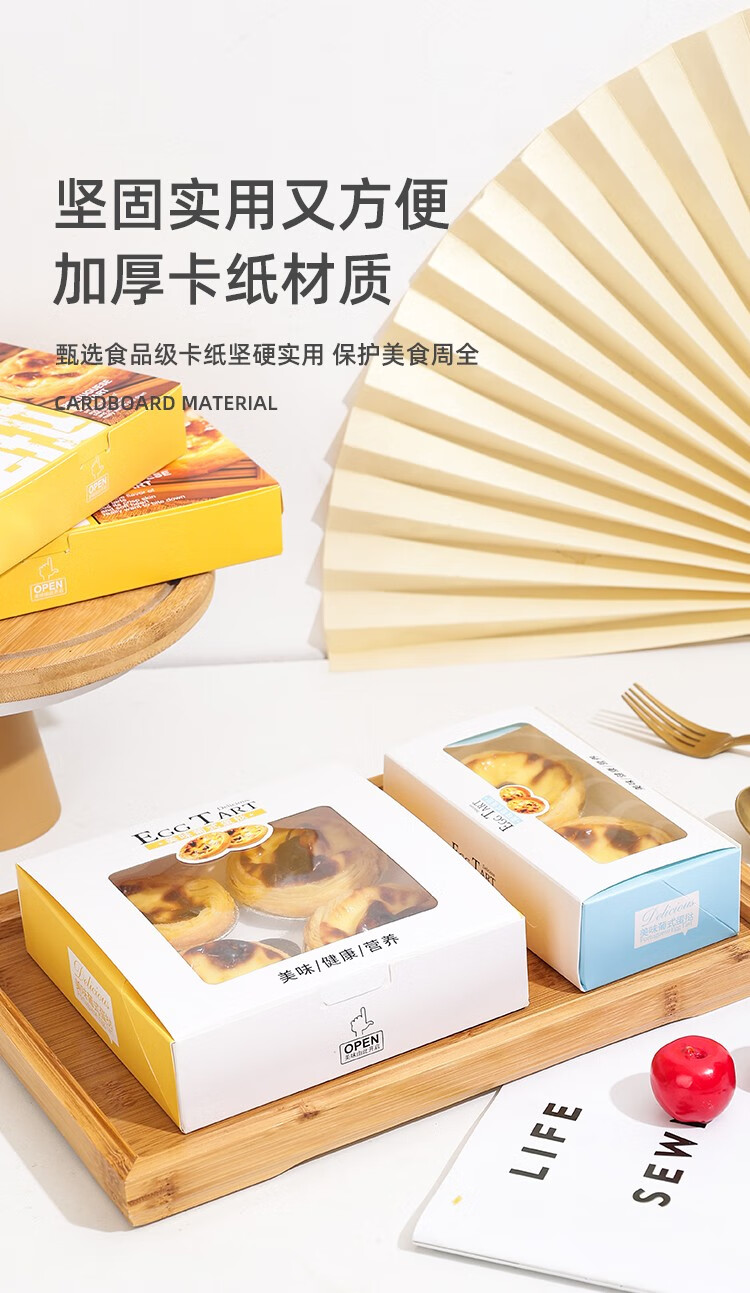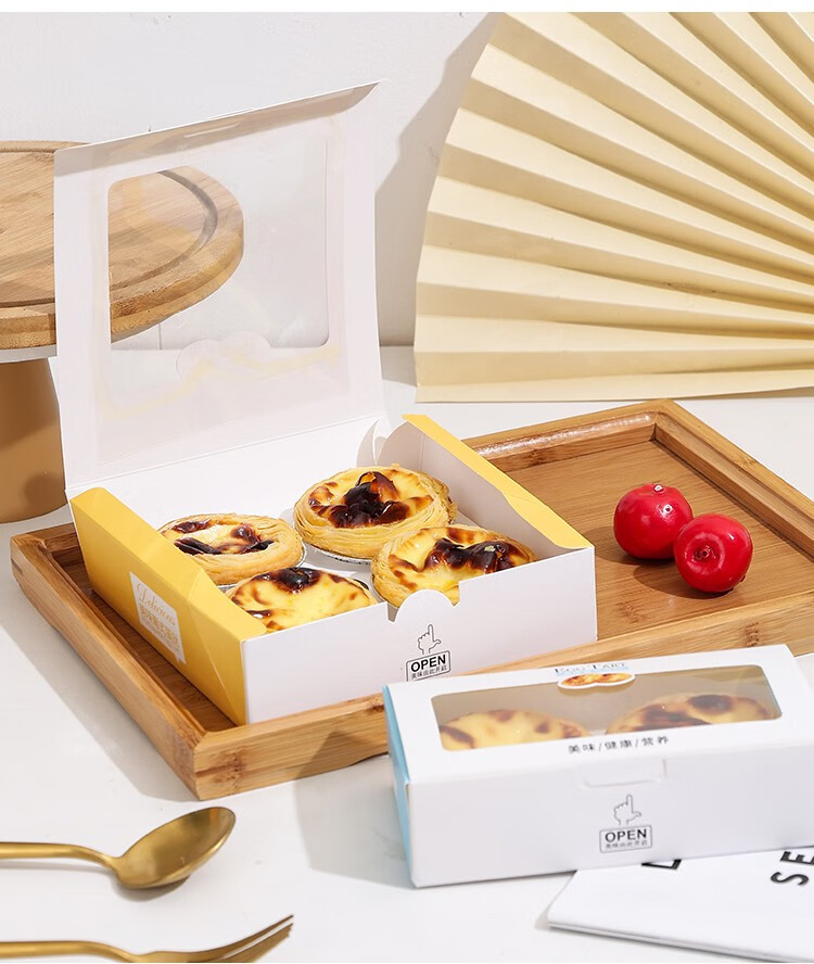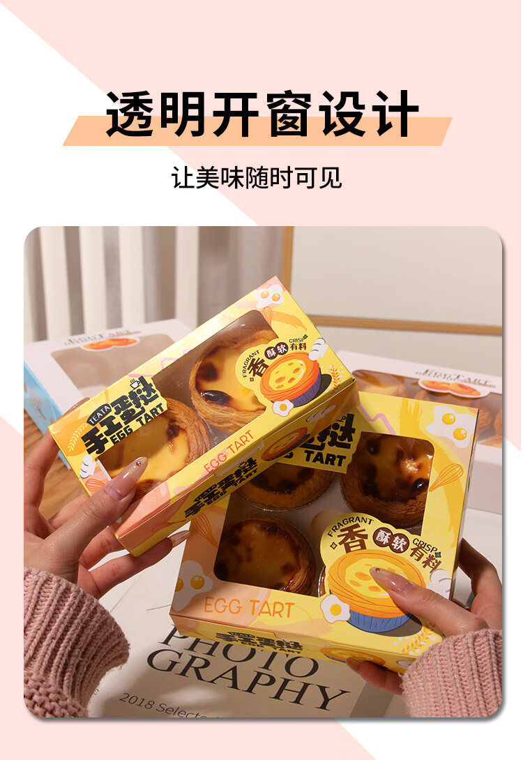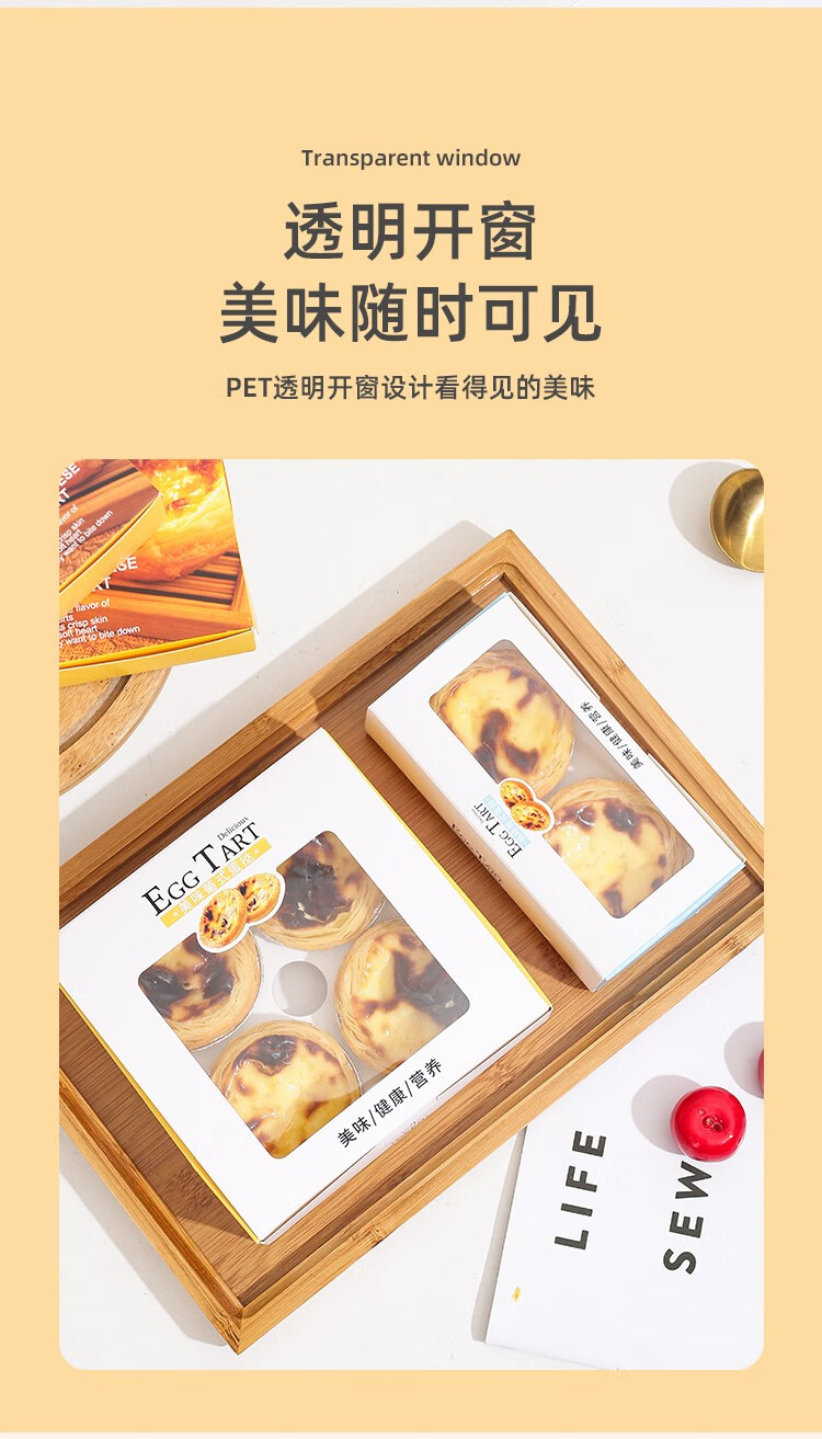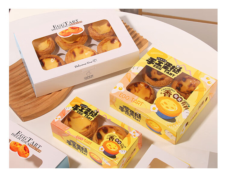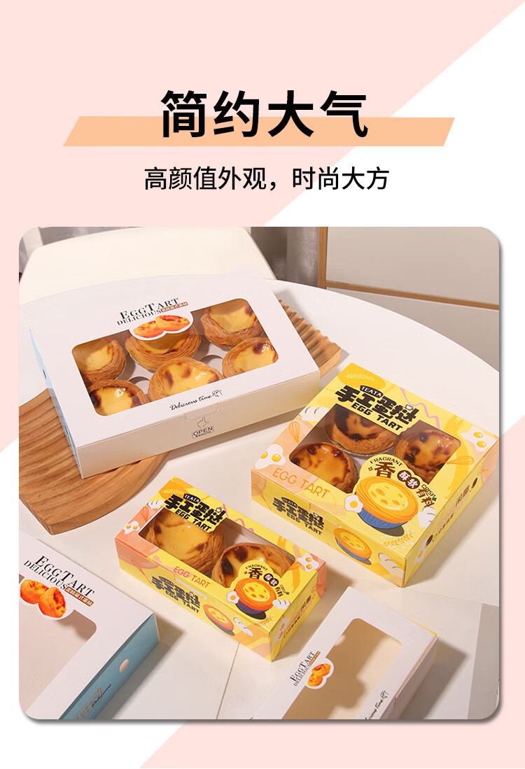 Zhiduosao Portuguese egg tart box 4 pieces disposable household egg yolk pastry packaging box fold-free simple egg packaging box transparent window 2 pieces bright yellow 10 pieces