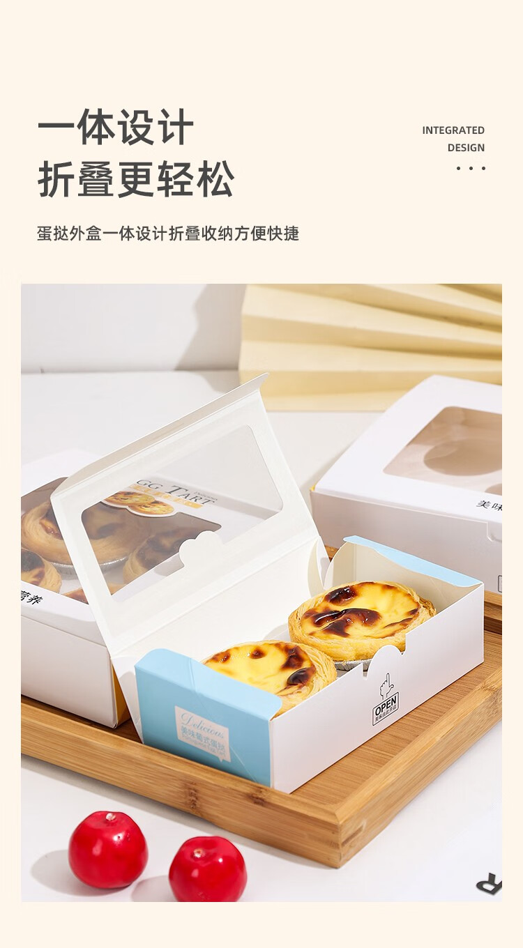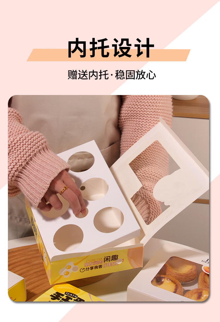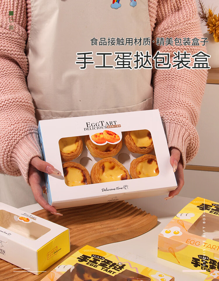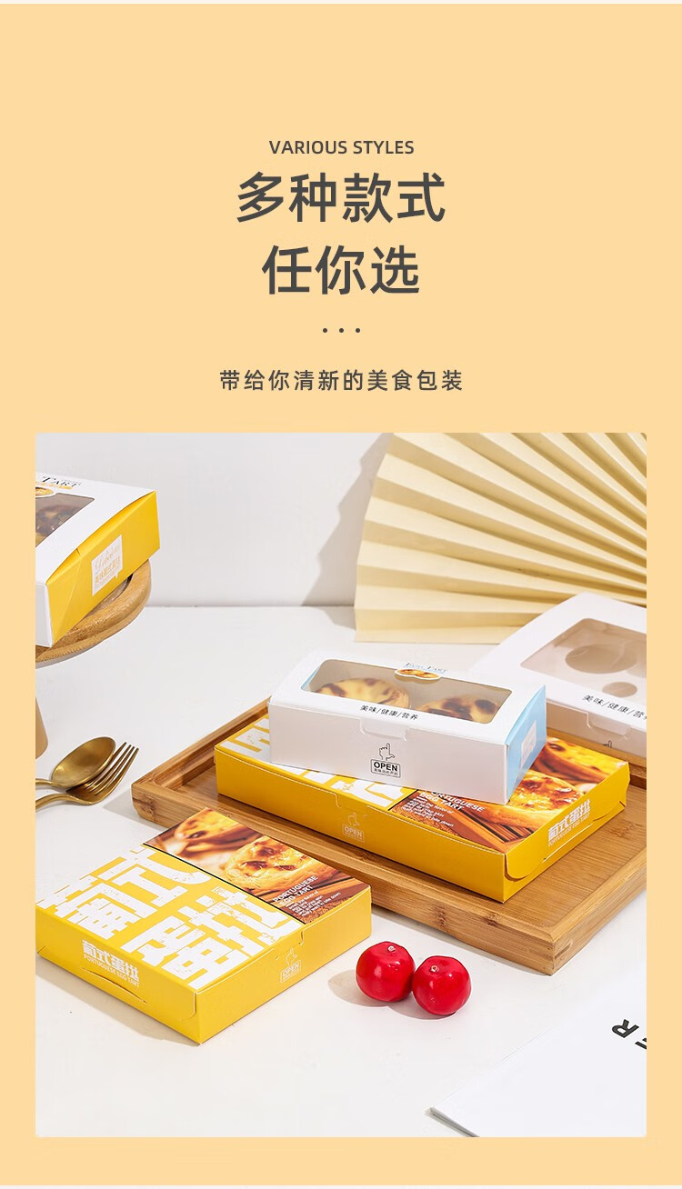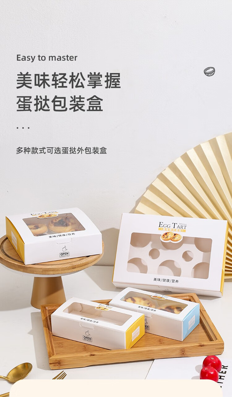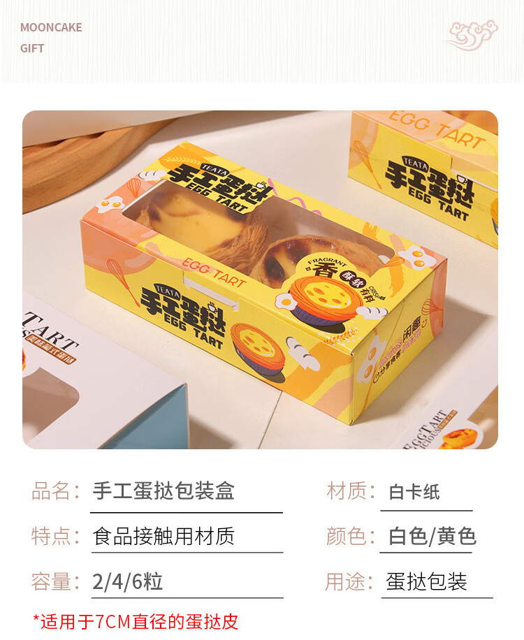 Zhiduosao Portuguese egg tart box 4 pieces disposable household egg yolk pastry packaging box fold-free simple egg packaging box transparent window 2 pieces bright yellow 10 pieces