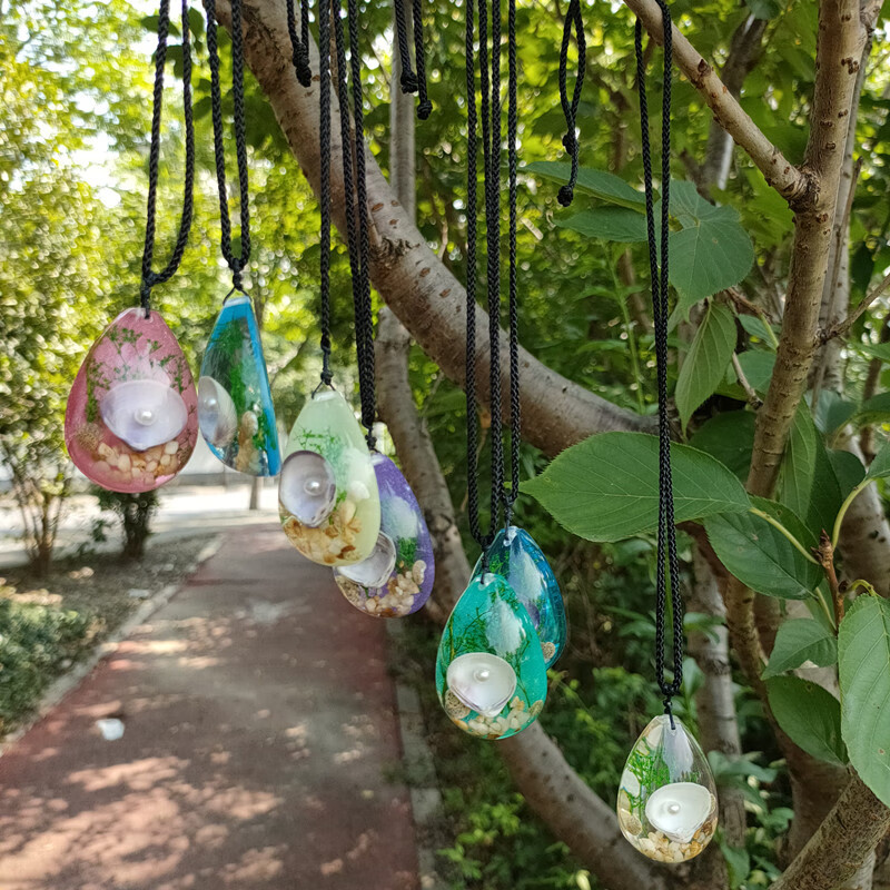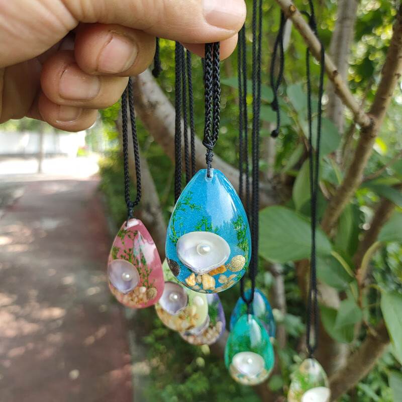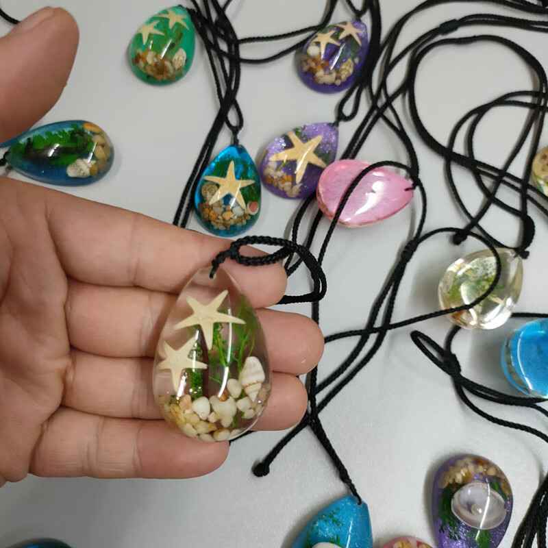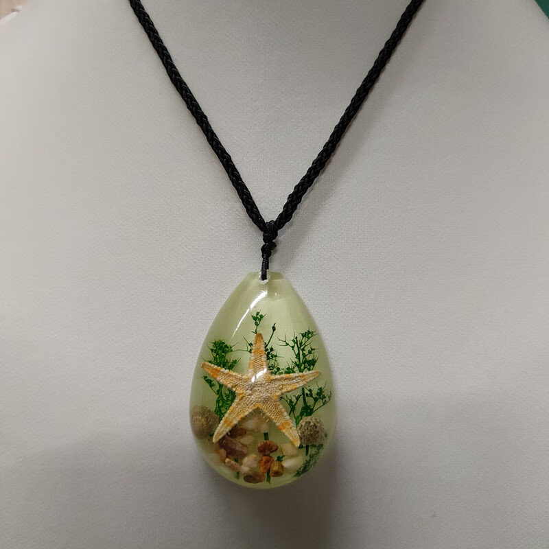 ZHIMO insect specimen water drop amber pendant marine children's creative jewelry male and female student couple crystal necklace double starfish luminous