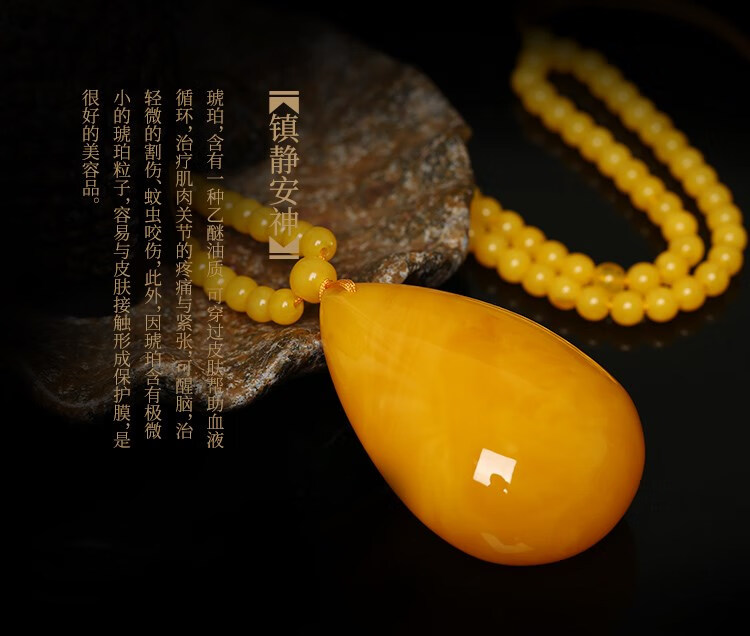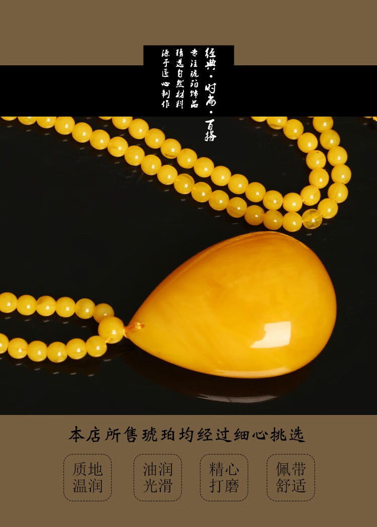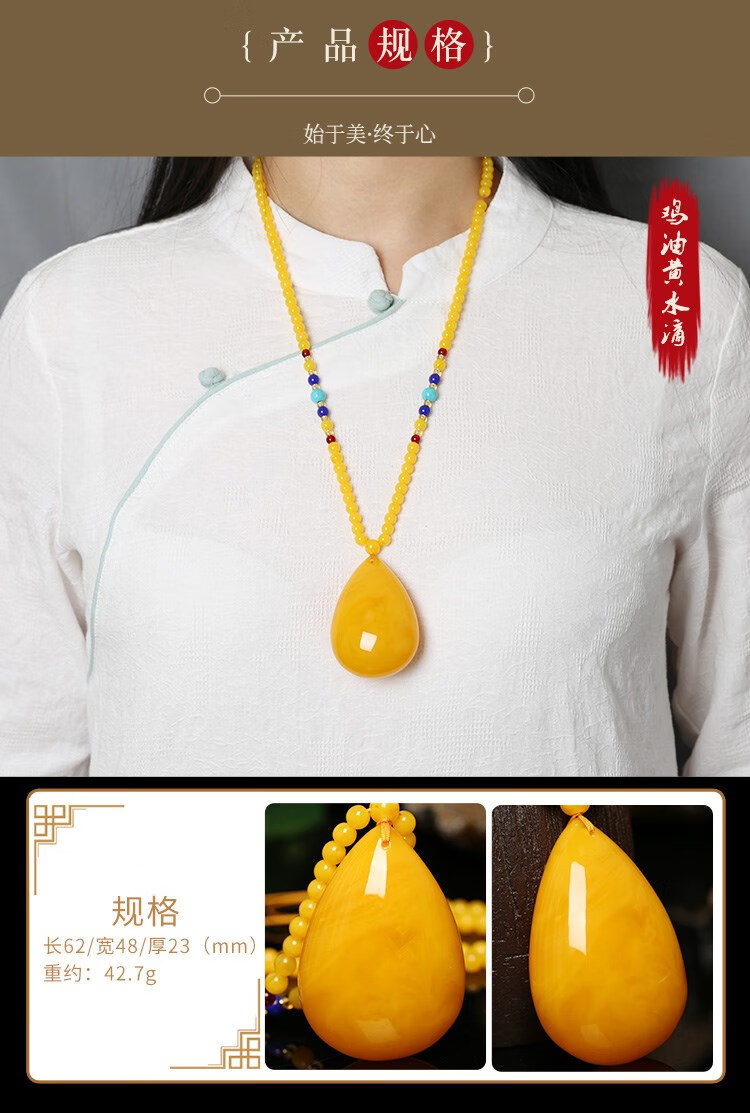Yadige chicken fat yellow beeswax water drop pendant necklace for men and women same style natural raw stone amber old wax sweater chain pendant chicken fat