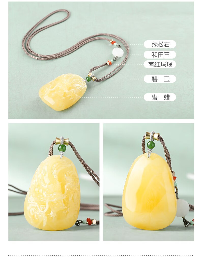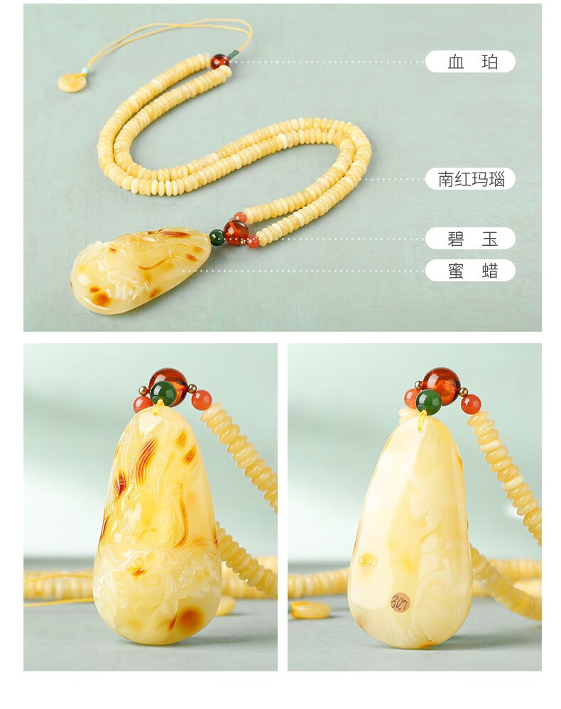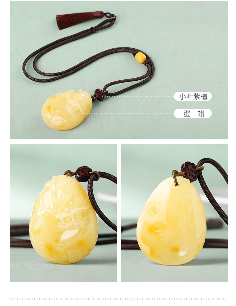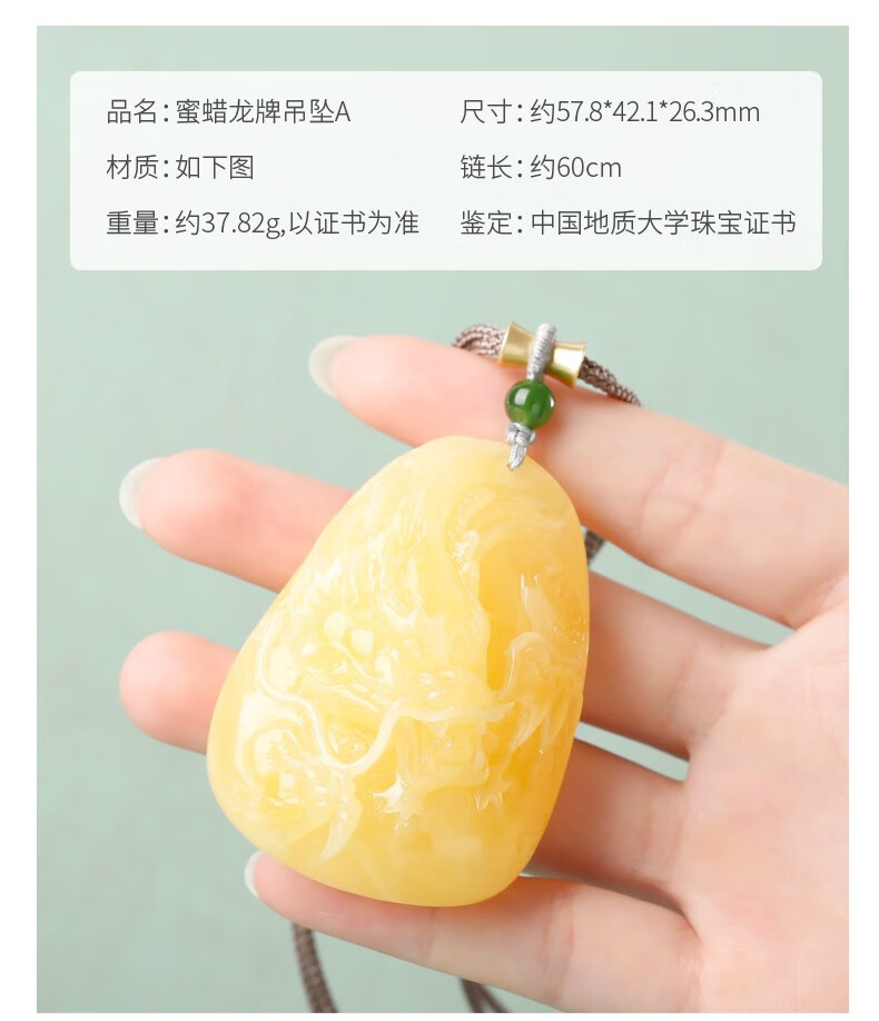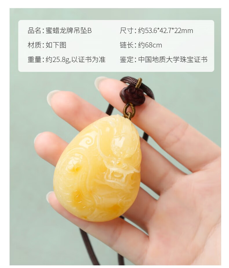 Yadige Hengfan natural amber beeswax dragon brand pendant twelve zodiac dragon pendants for men and women beeswax sweater chain beeswax dragon brand pendant A weighs about 37.82g feet