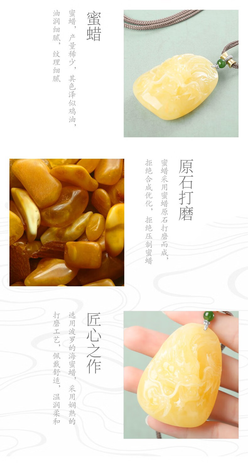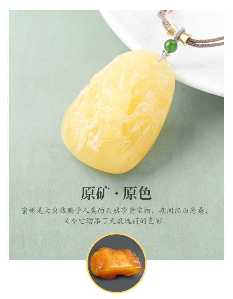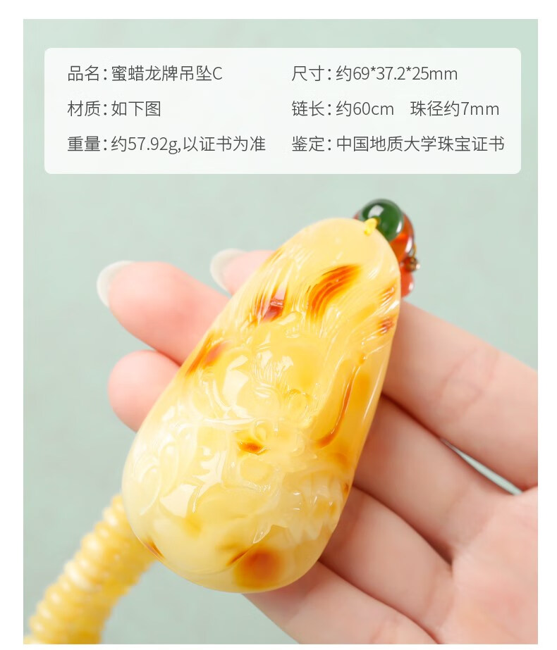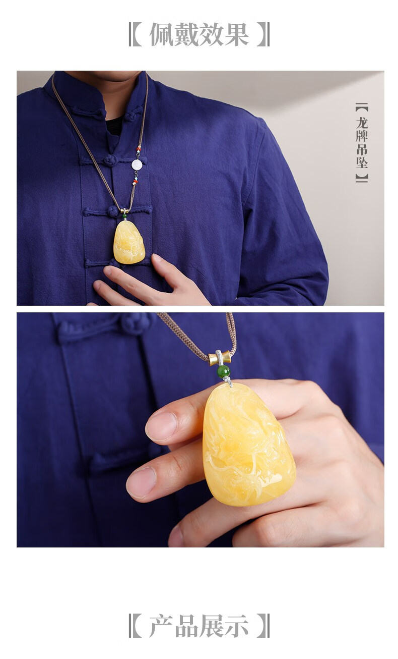 Yadige Hengfan natural amber beeswax dragon brand pendant twelve zodiac dragon pendants for men and women beeswax sweater chain beeswax dragon brand pendant A weighs about 37.82g feet
