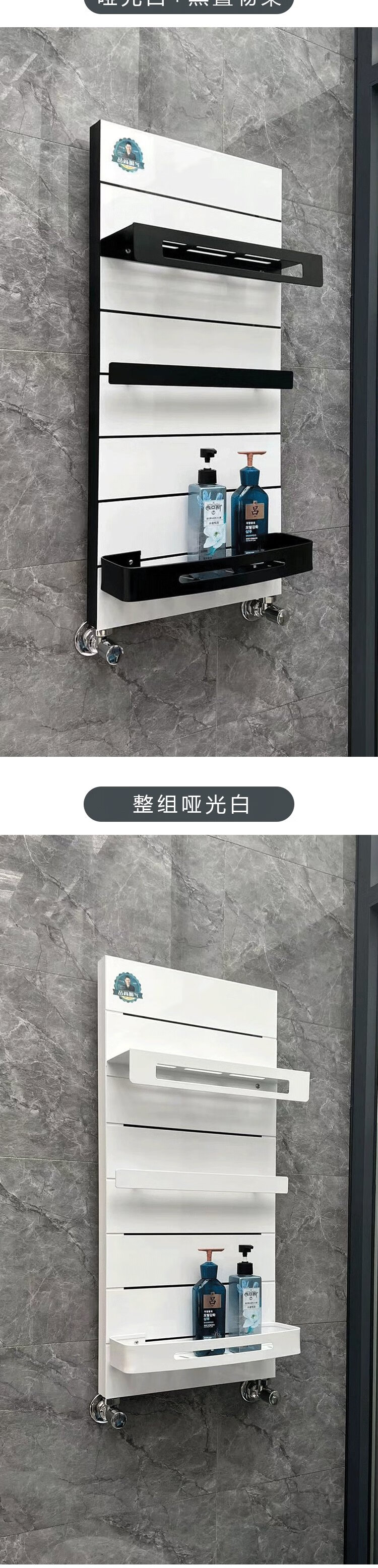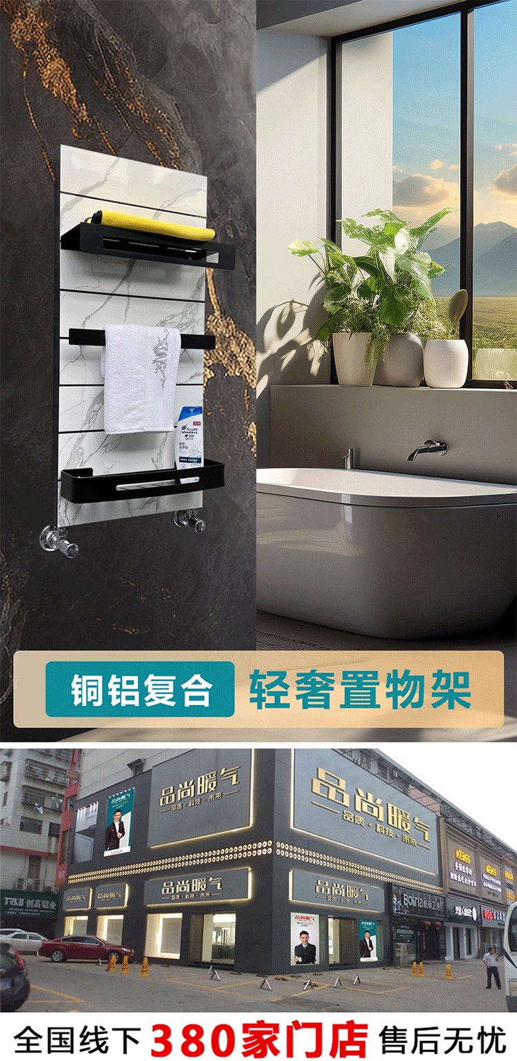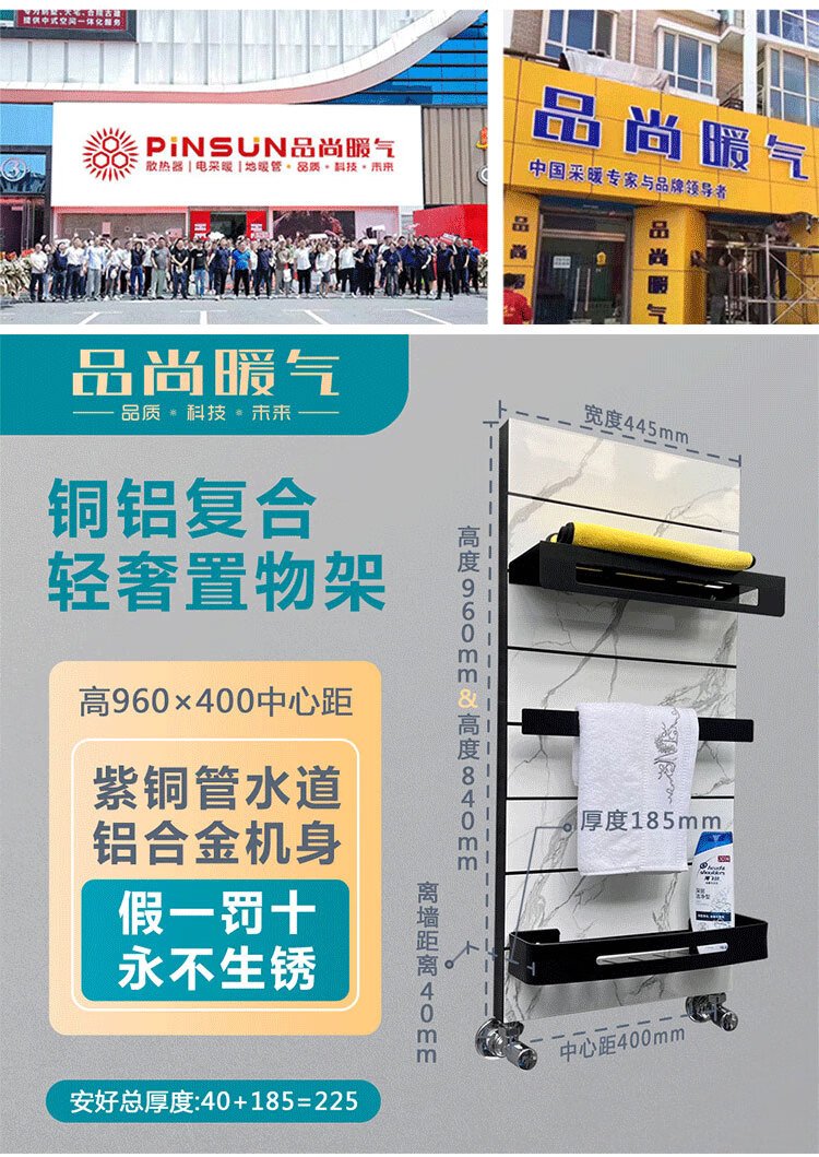 Pinshang Heating Copper Aluminum Composite Light Luxury Storage Rack Bathroom Basket Bathroom Heating Central Heating Radiator Matte White + Black Storage Rack 840mm Height