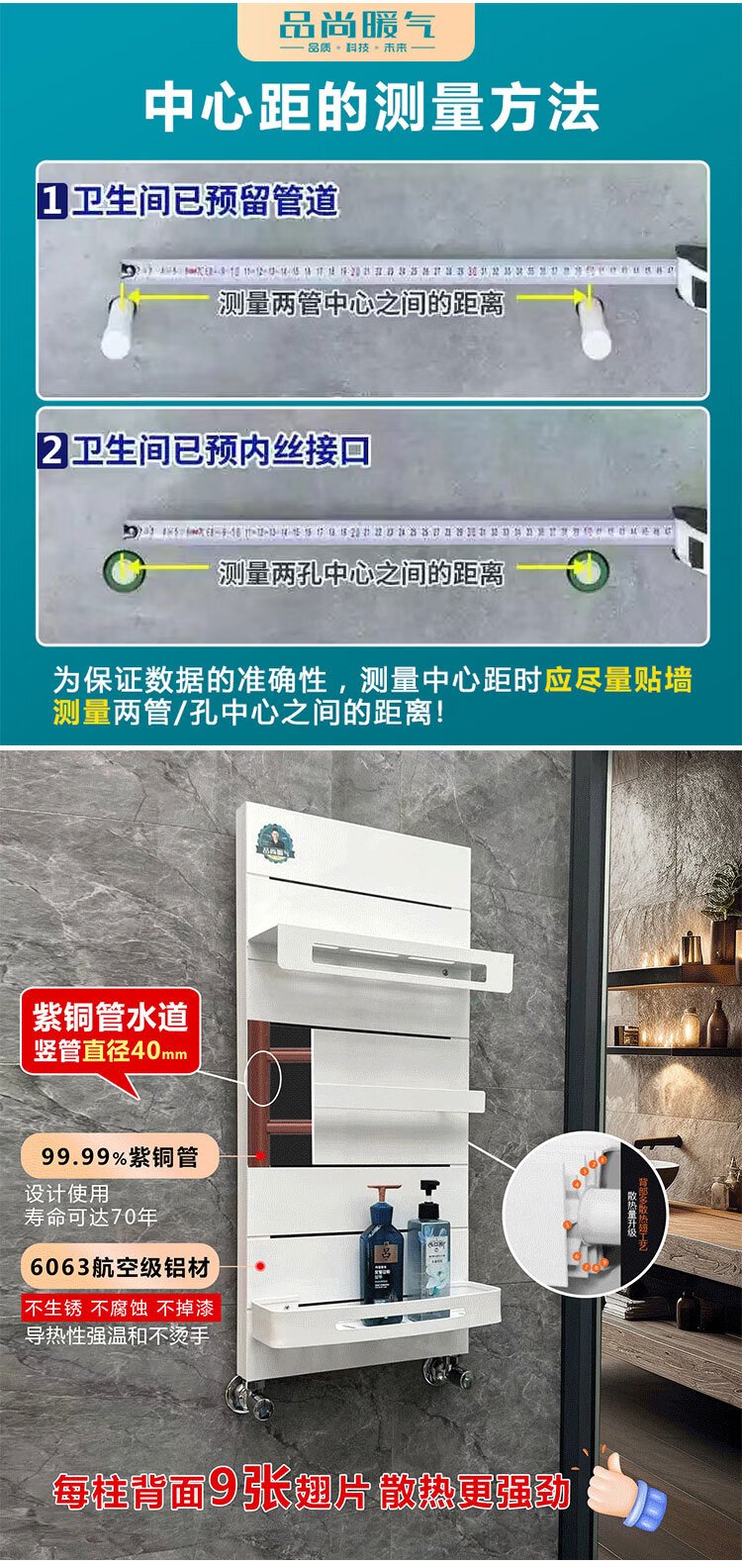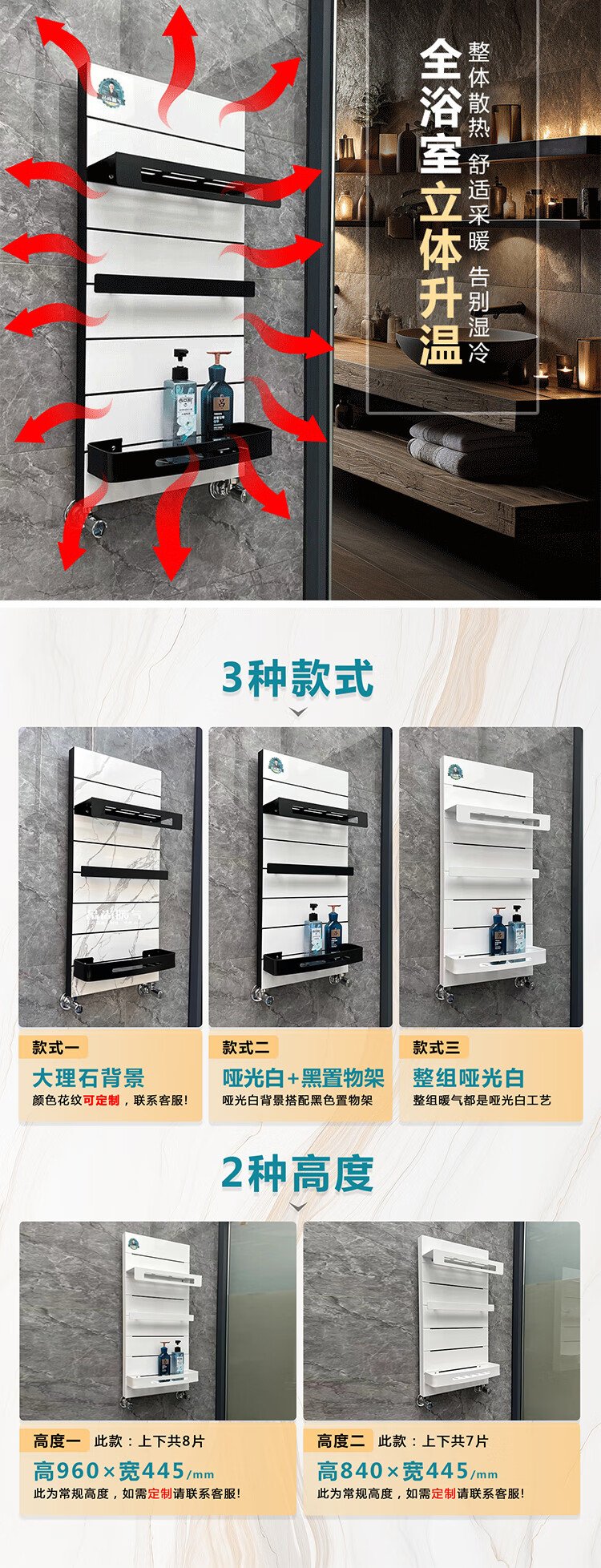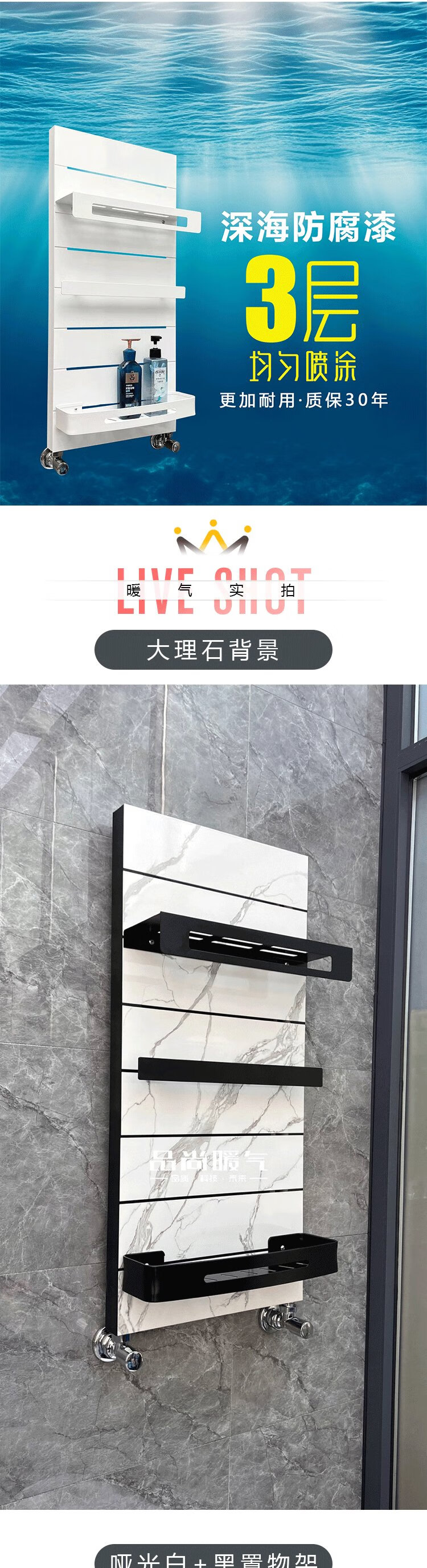 Pinshang Heating Copper Aluminum Composite Light Luxury Storage Rack Bathroom Basket Bathroom Heating Central Heating Radiator Matte White + Black Storage Rack 840mm Height