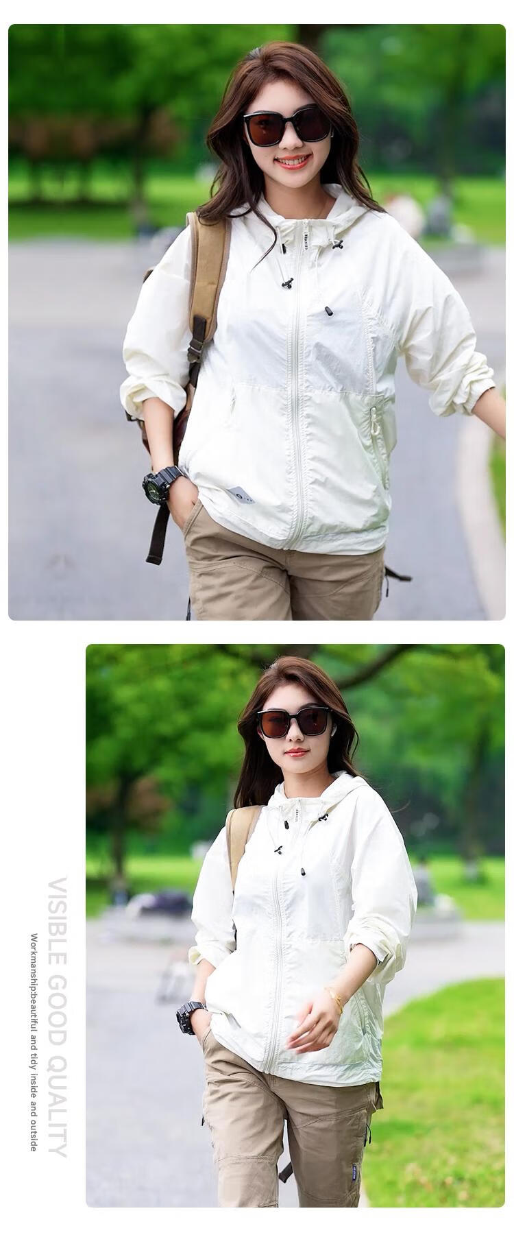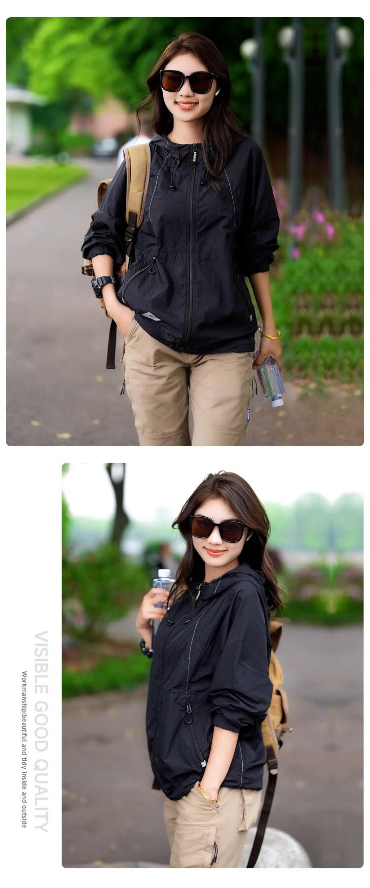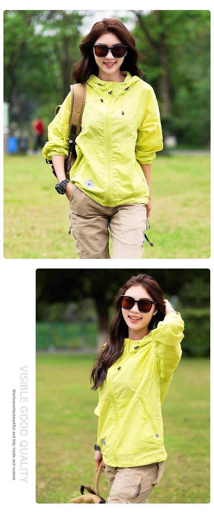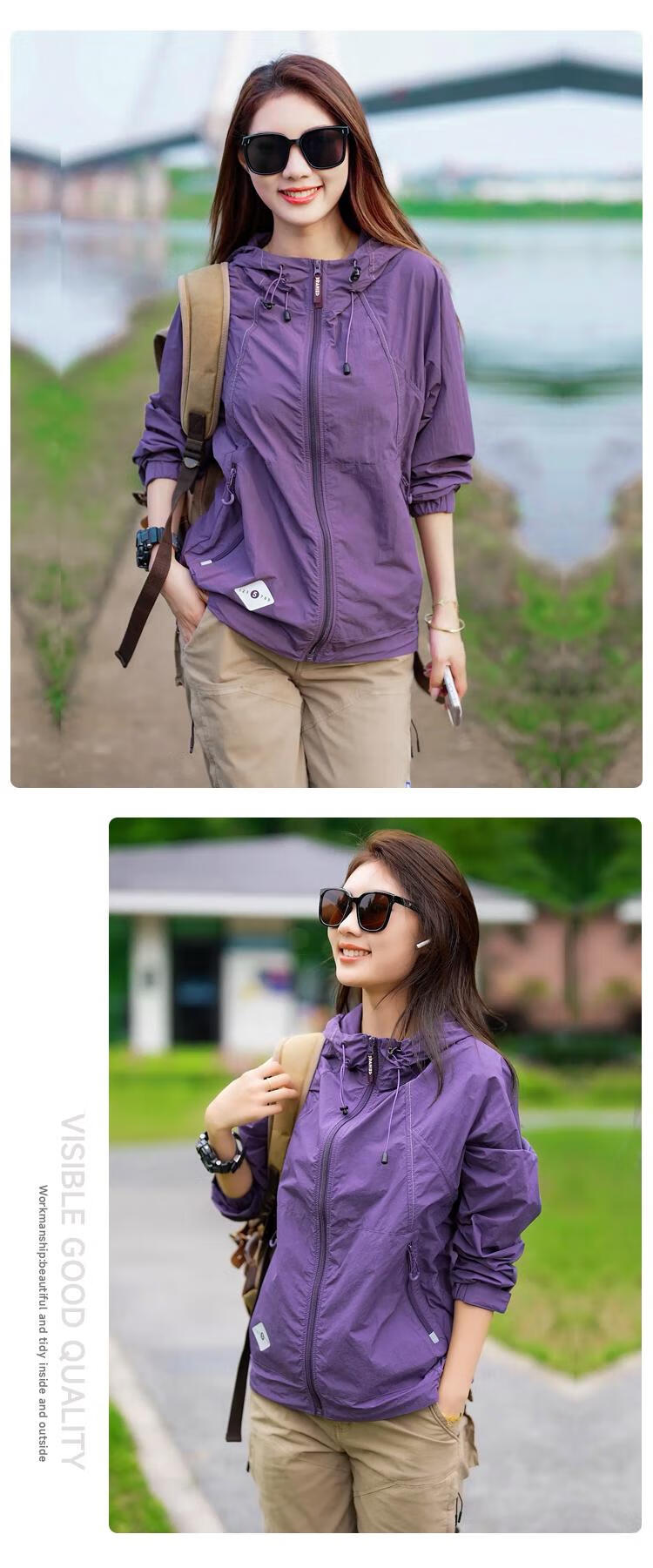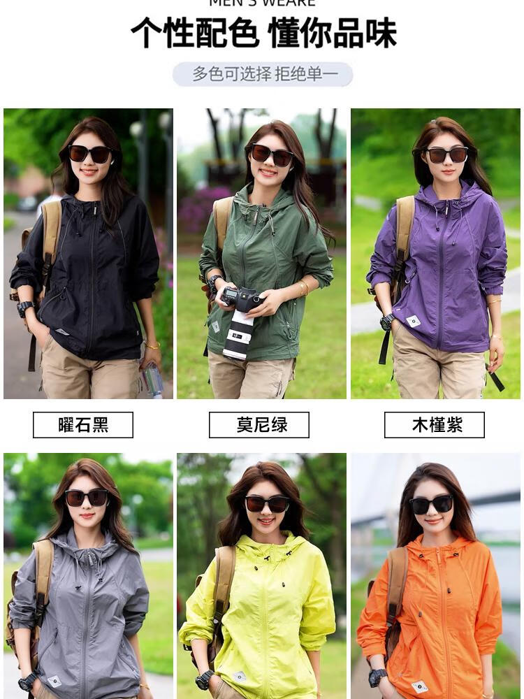 JEEP SPIRIT2024 new summer UPF50+ lightweight waterproof sun protection clothing for men and women outdoor hooded sun protection clothing, dark green, same style for men and women M (105-120Jin Jin equals 0.5kg)