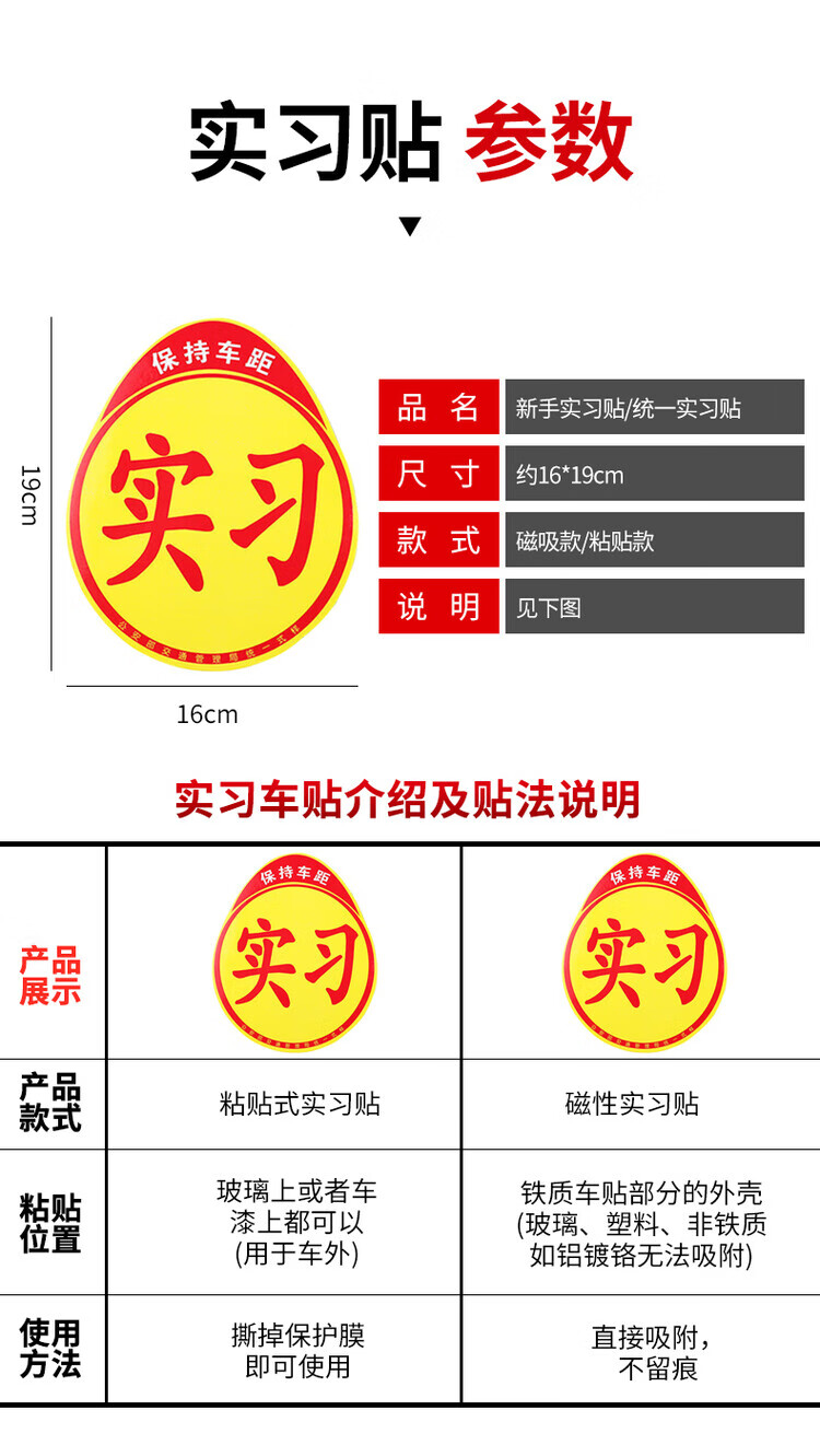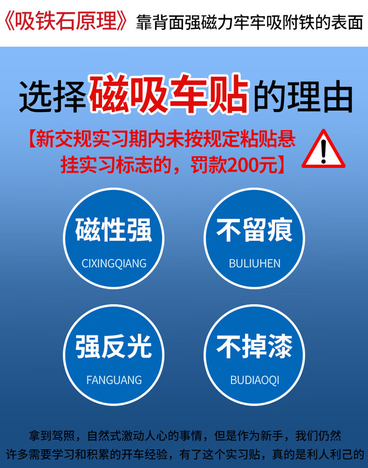 ANGEQI trainee car stickers for novices on the road magnetic reflective stickers for cars, unified standards for vehicles, stickers for small cars, unified standards for vehicles, 1 sticker
