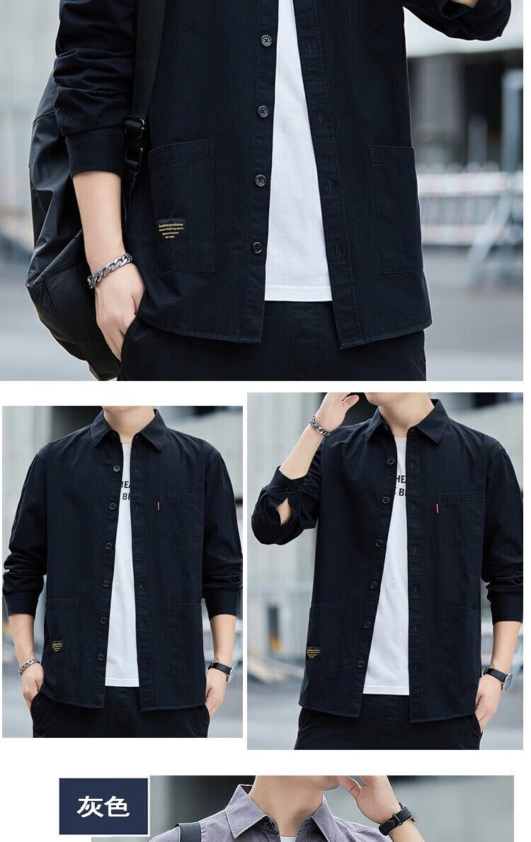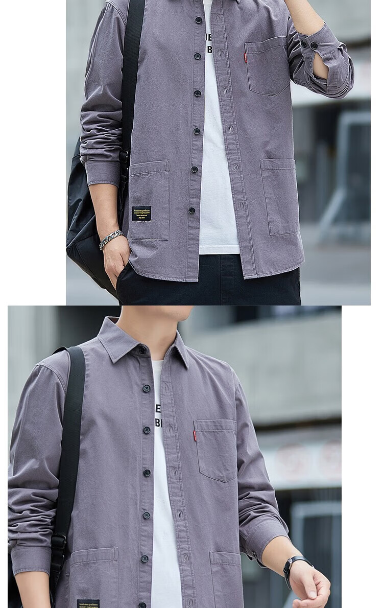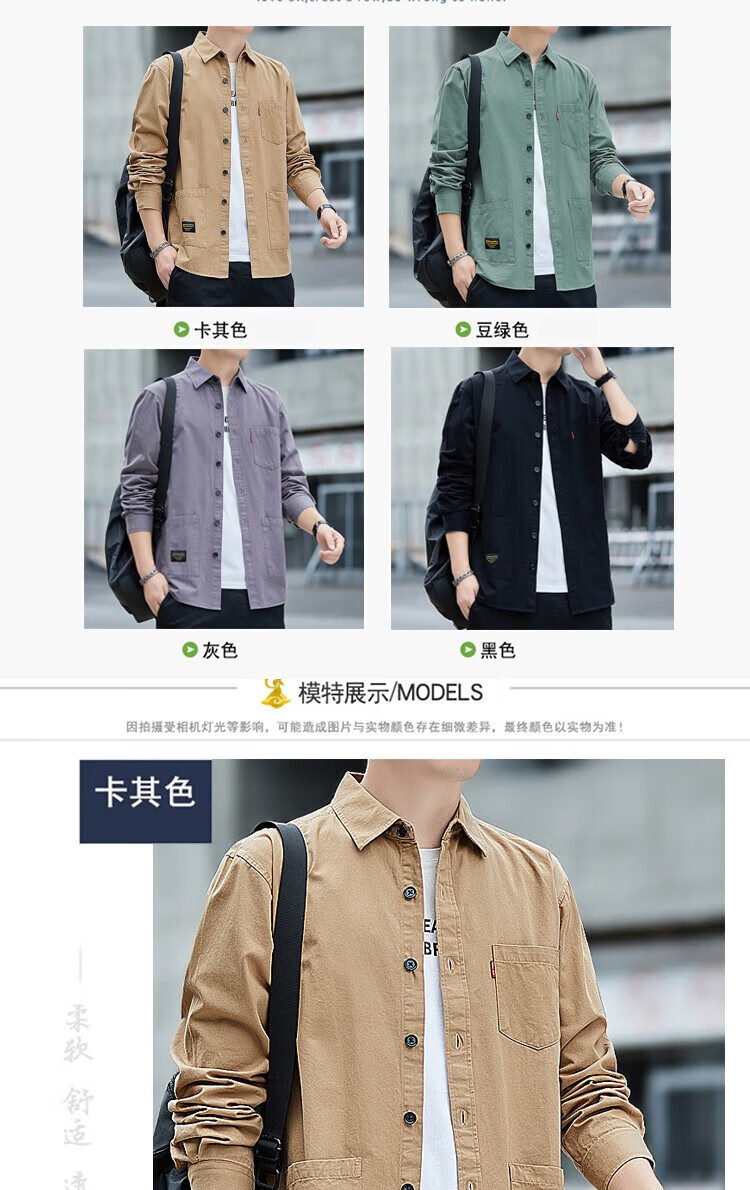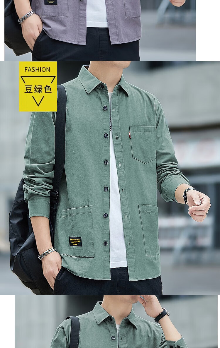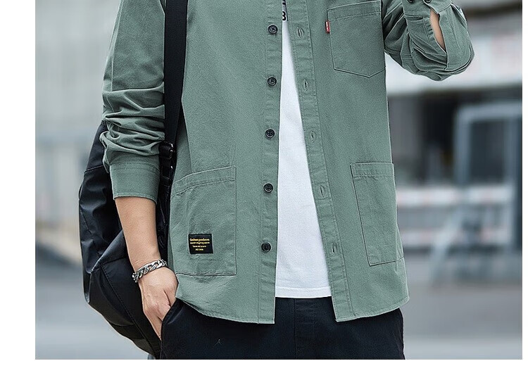 Jeanswest men's shirt long-sleeved pure cotton spring and autumn new workwear pure cotton trendy shirt jacket men's casual top pea green XL