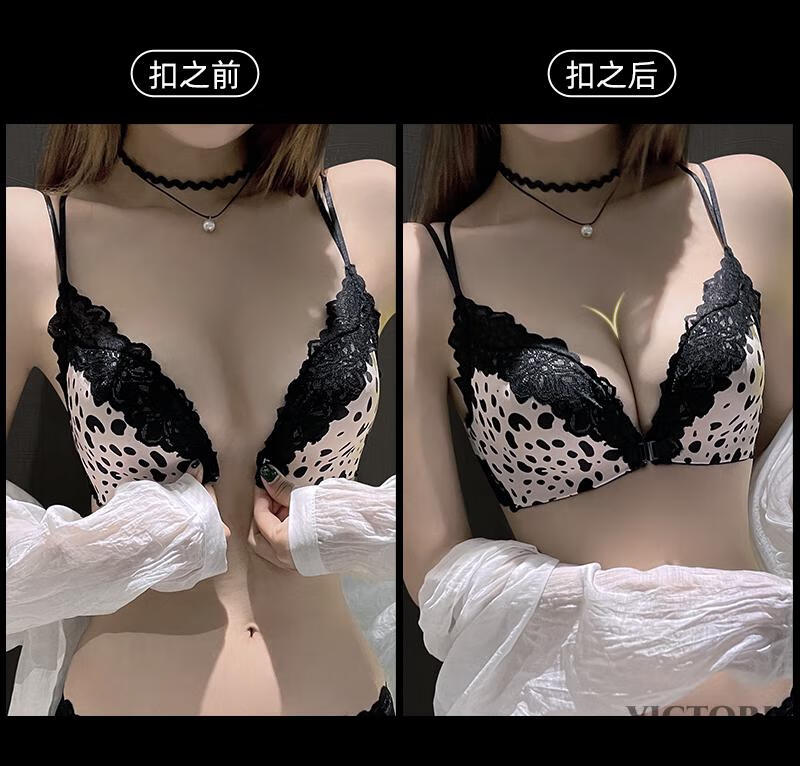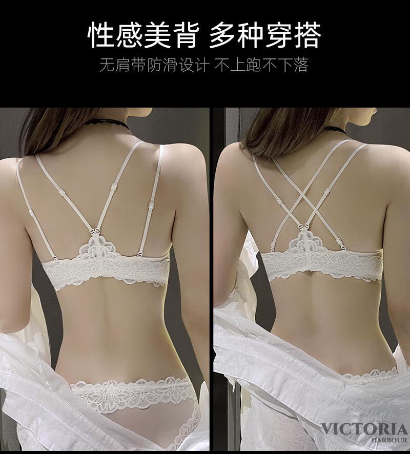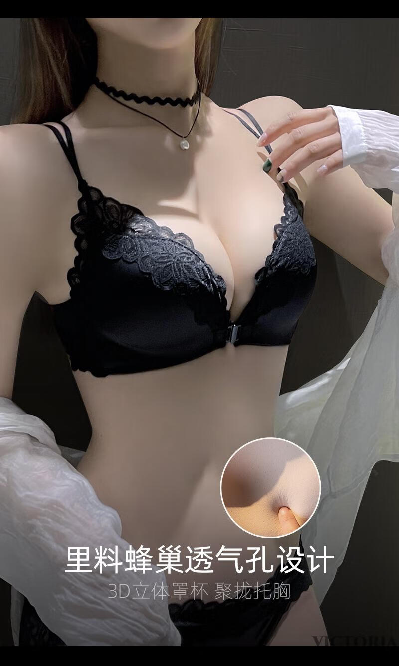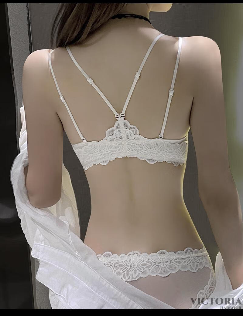 VICTORIA HARBOUR Victoria Harbor Front Button Bra Feminine Beautiful Back Lace Small Breast Gathering Anti-Sagging Bra Set White Set 75A