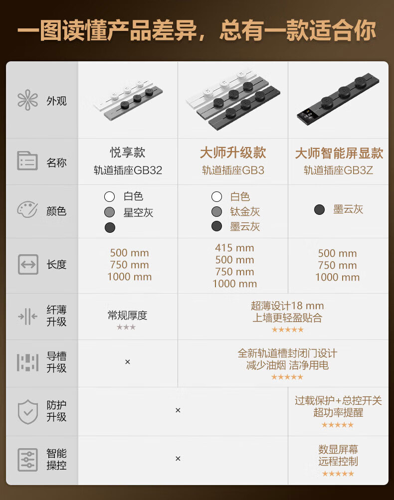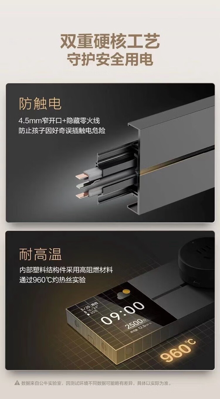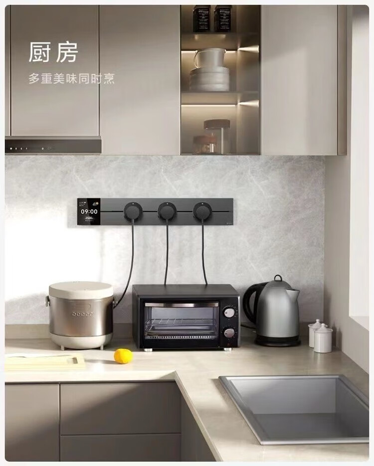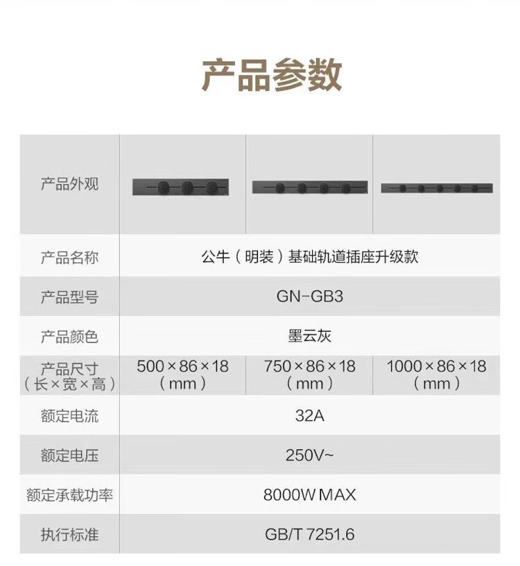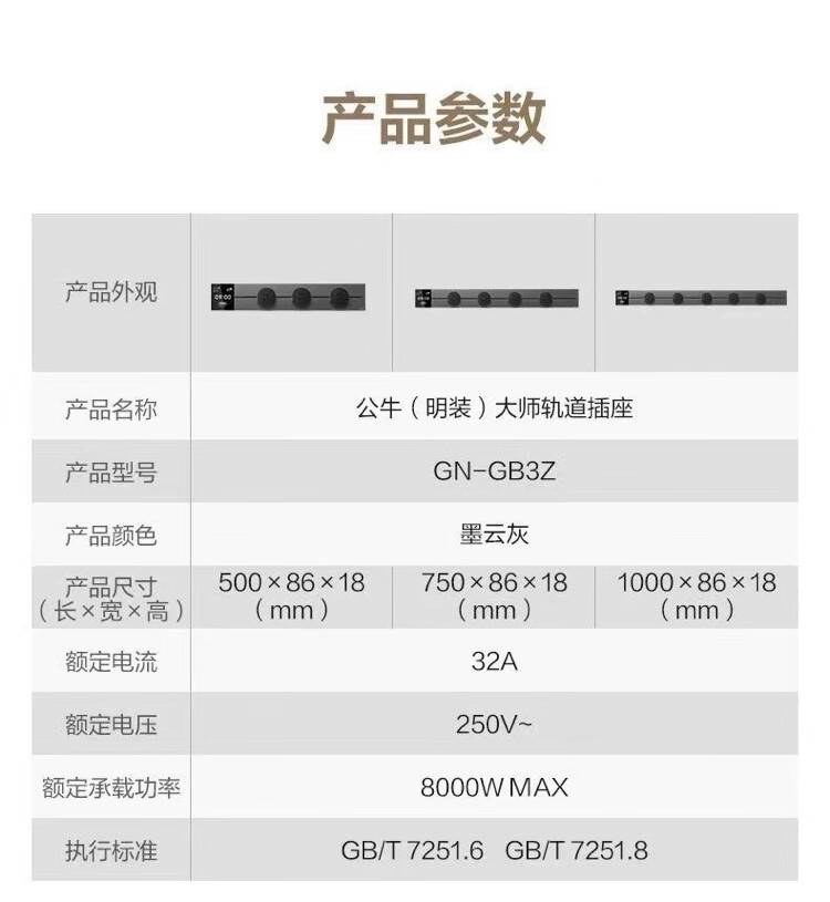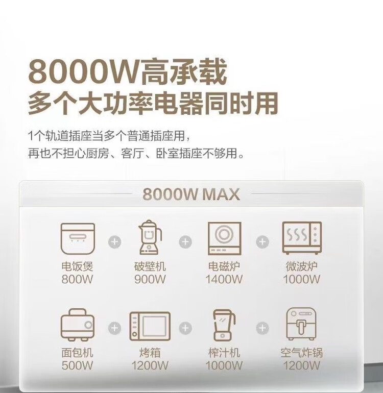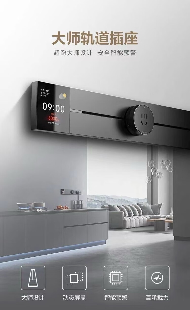 BULL movable track socket 8000W surface-mounted sliding kitchen sideboard island slide rail power guide rail socket GN-GB3Z Master upgraded App controlled smart screen display 50cm + 3 five holes