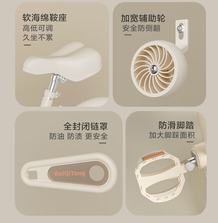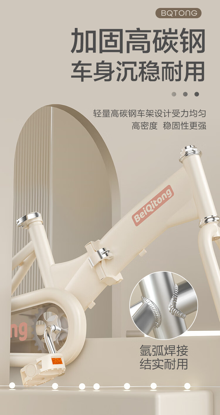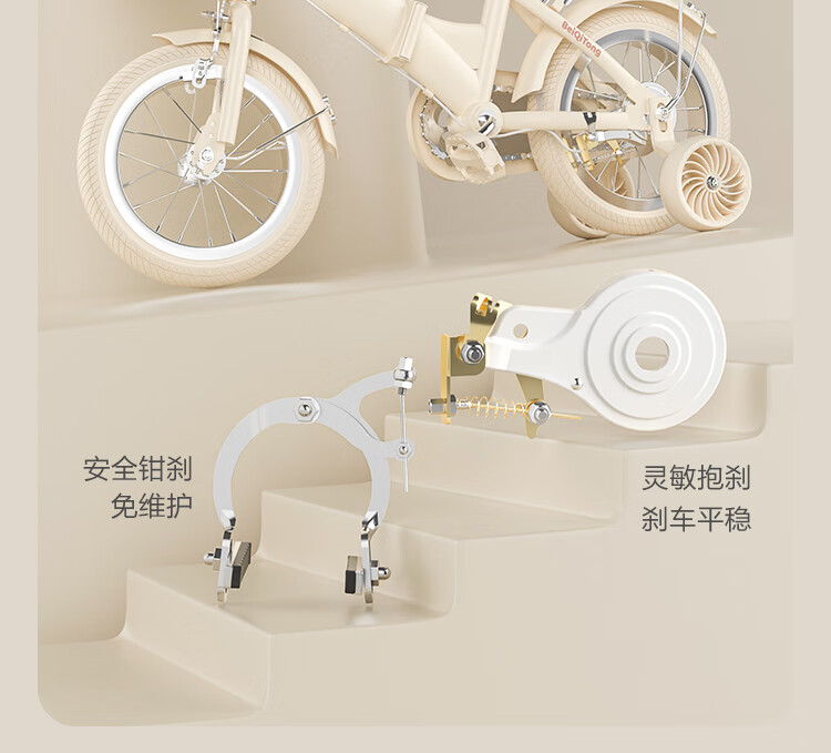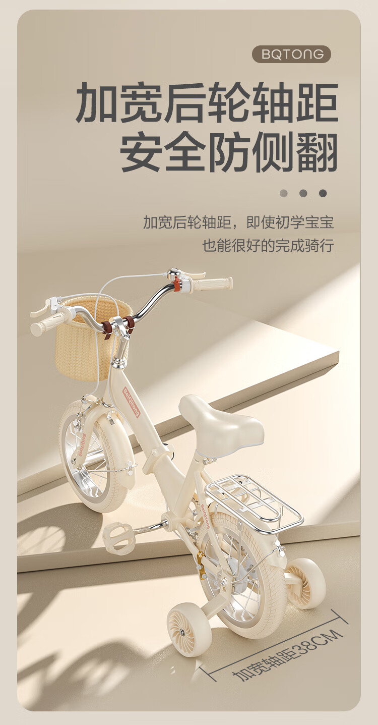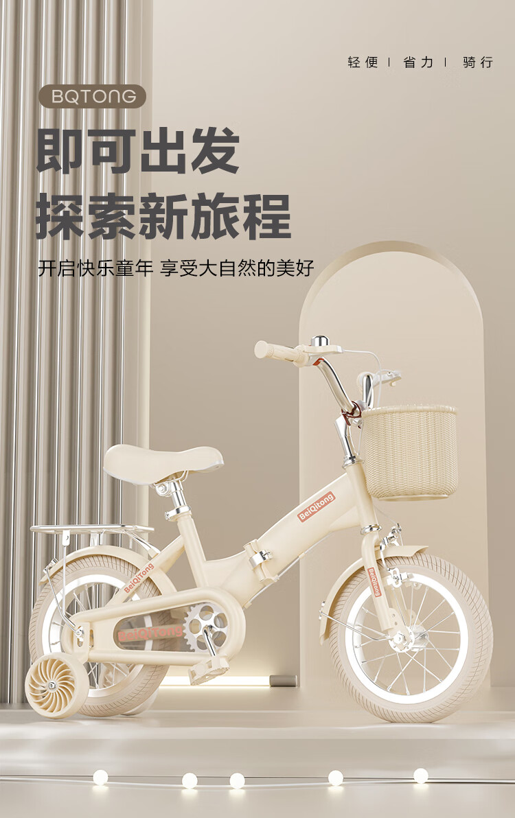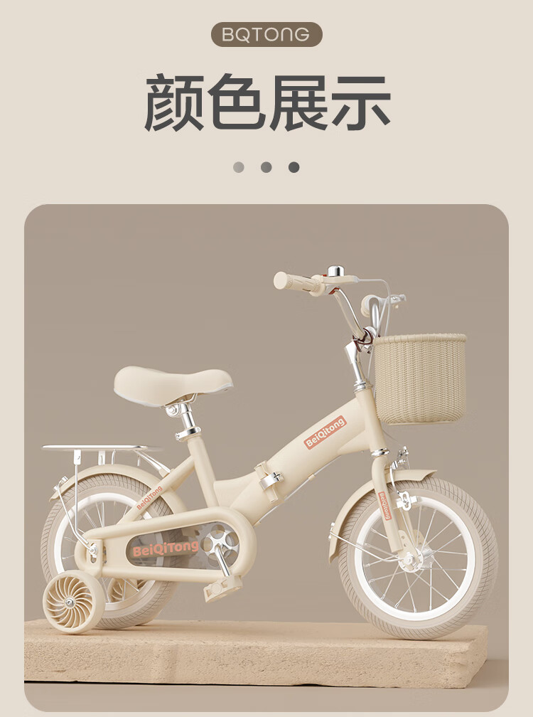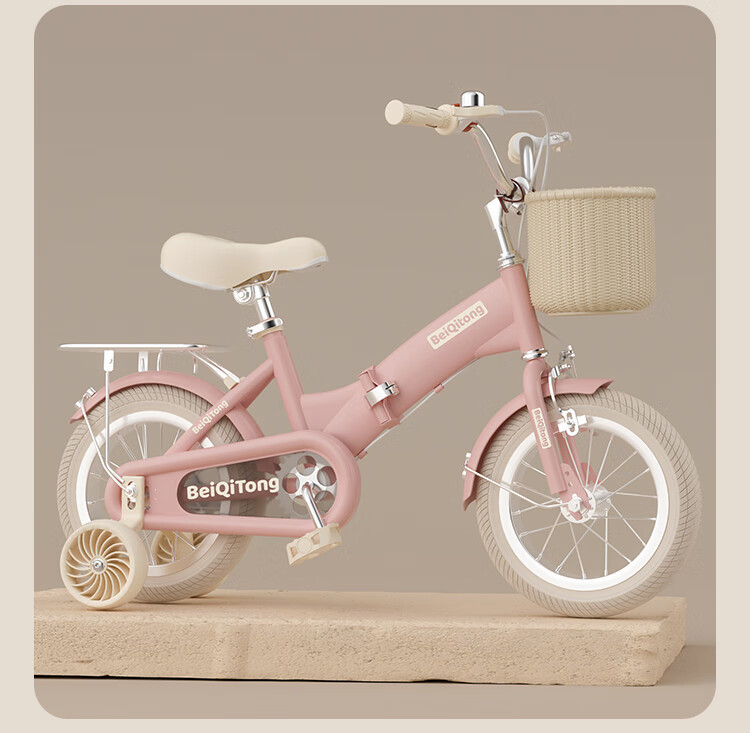 Beiqitong children's bicycle 2-3-4-5-6-7-8-9 years old boys and girls baby children's folding bicycle Kakami rice tire + widened tyrant wheel + 98 pack 12 inches, height 80-95 cm, about 2-3 years old