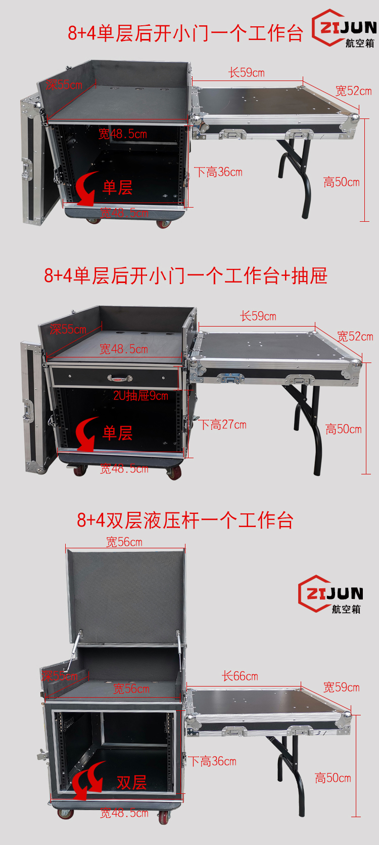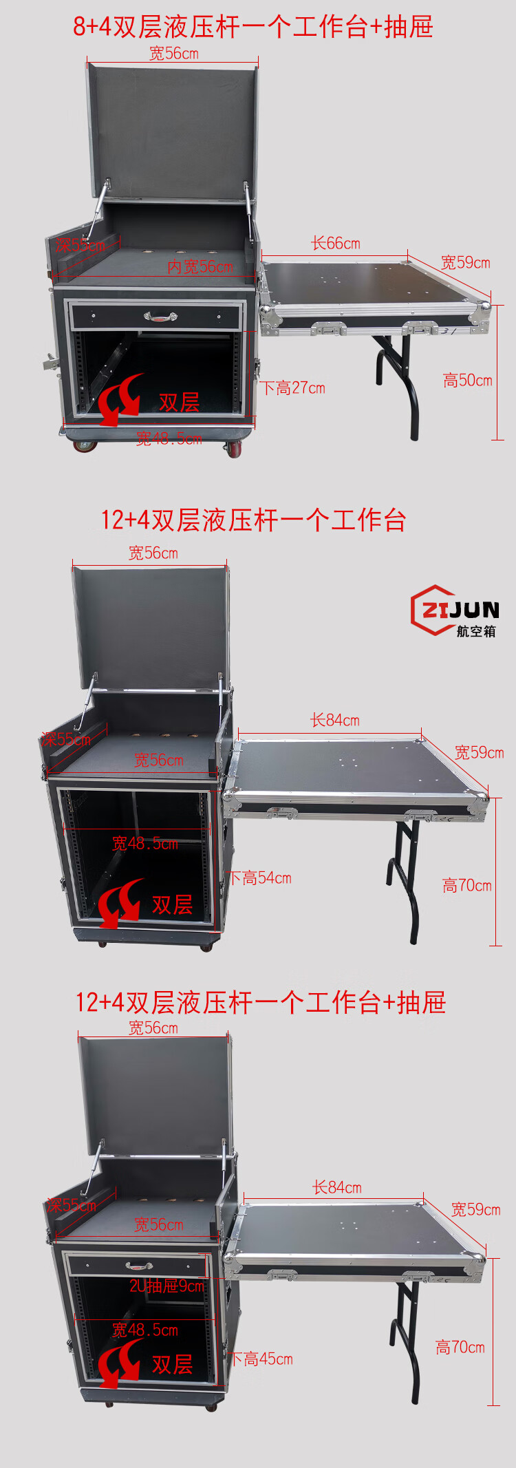 12U16U flight case cabinet power amplifier audio cabinet mixer with shelf flight case stage equipment cabinet 8+4 single layer one workbench + 2u drawer