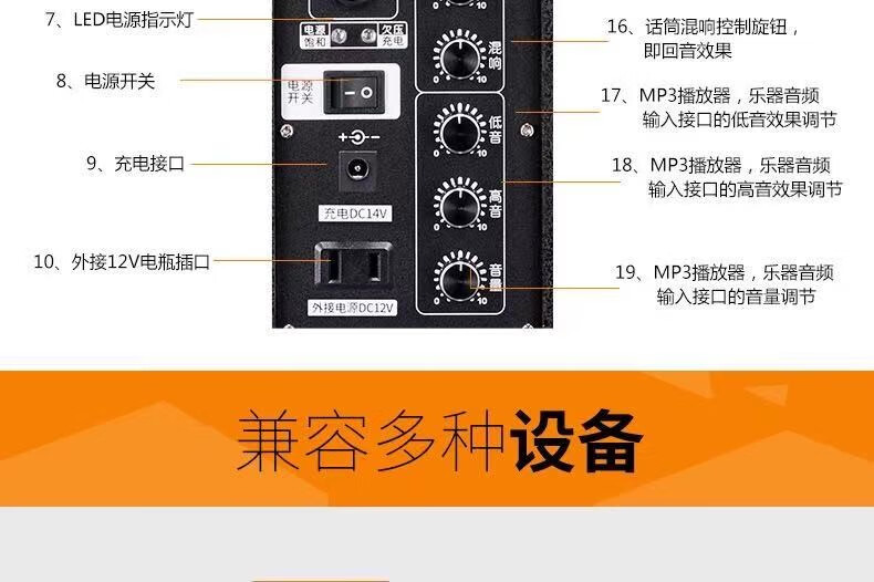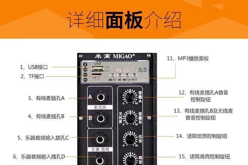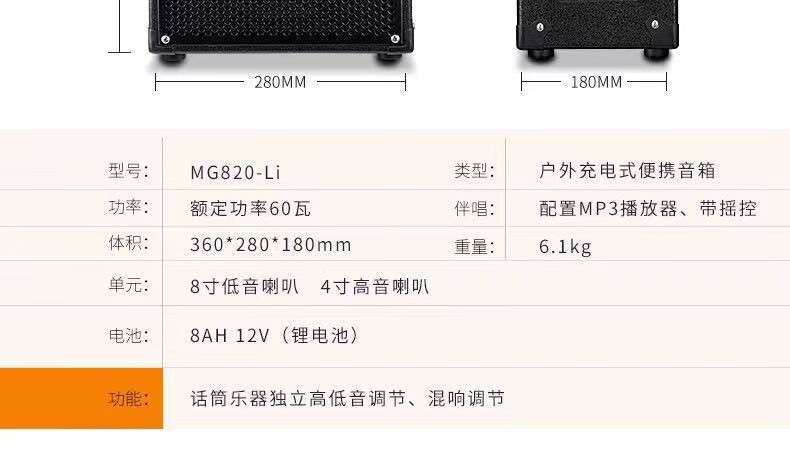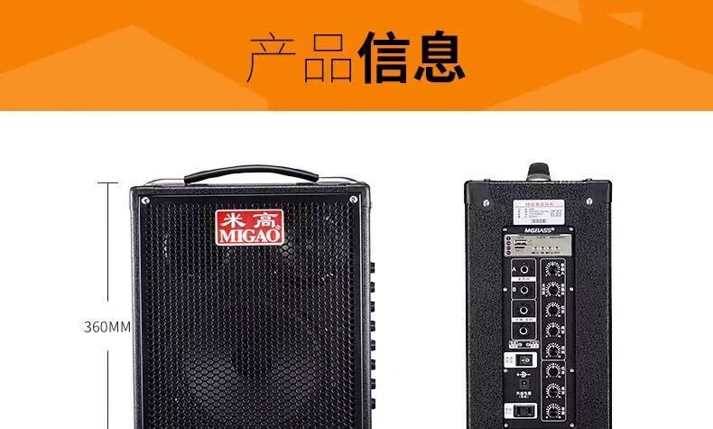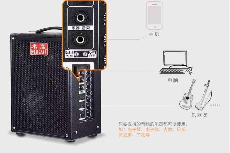 MIGAO MG820A-LI guitar playing and singing 60W lithium battery rechargeable outdoor portable speaker lithium battery audio+strap+U8 rechargeable dual headset
