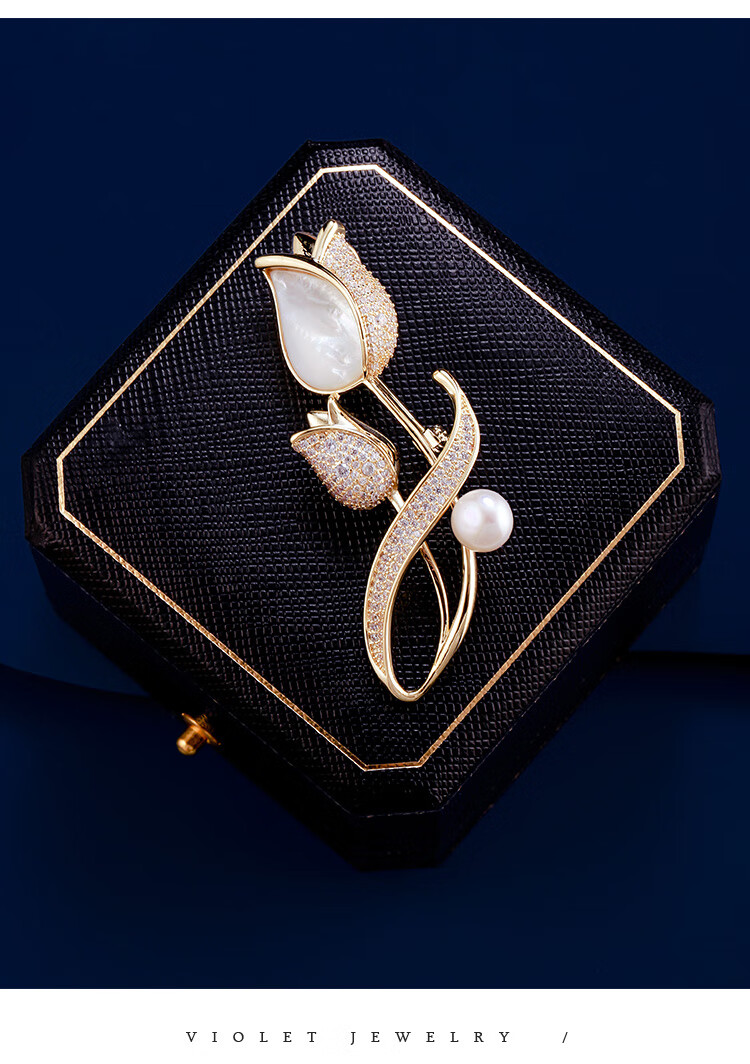 Violet fragrant brooch 2024 new trendy temperament elegant atmosphere exquisite versatile corsage brooch champagne gold 1