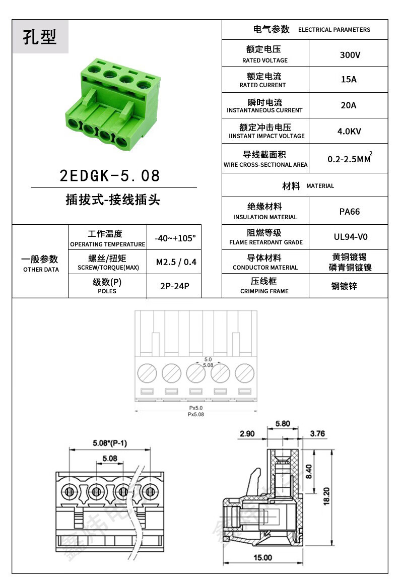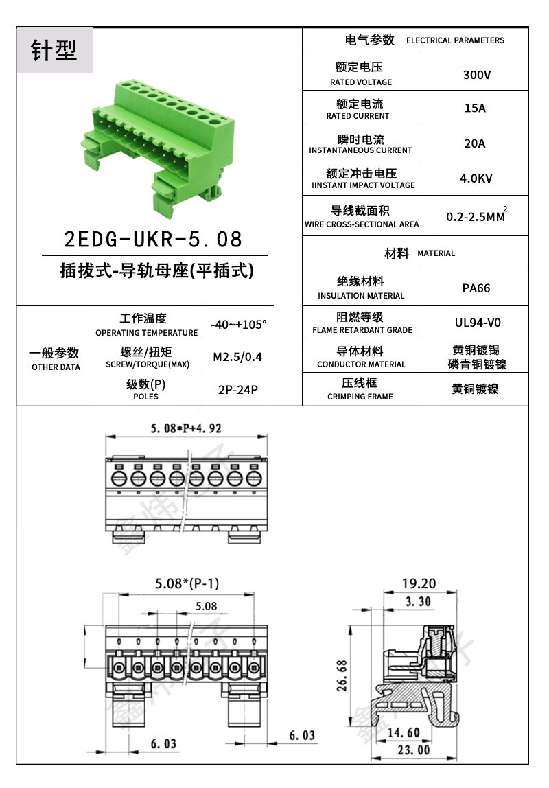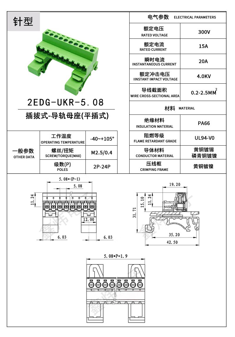 DYQT rail-type terminal block 2EDG-UKR-5.08mm installation 35mm rail weld-free butt plug-in 2-24P 2P complete set