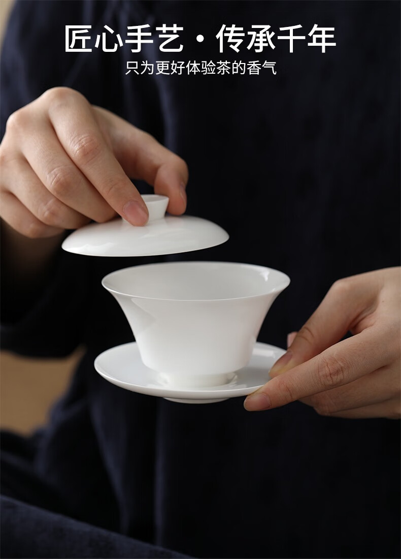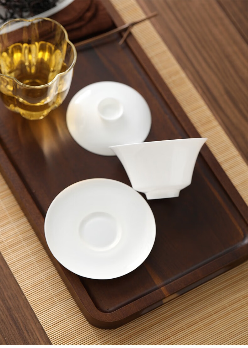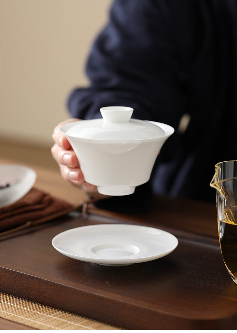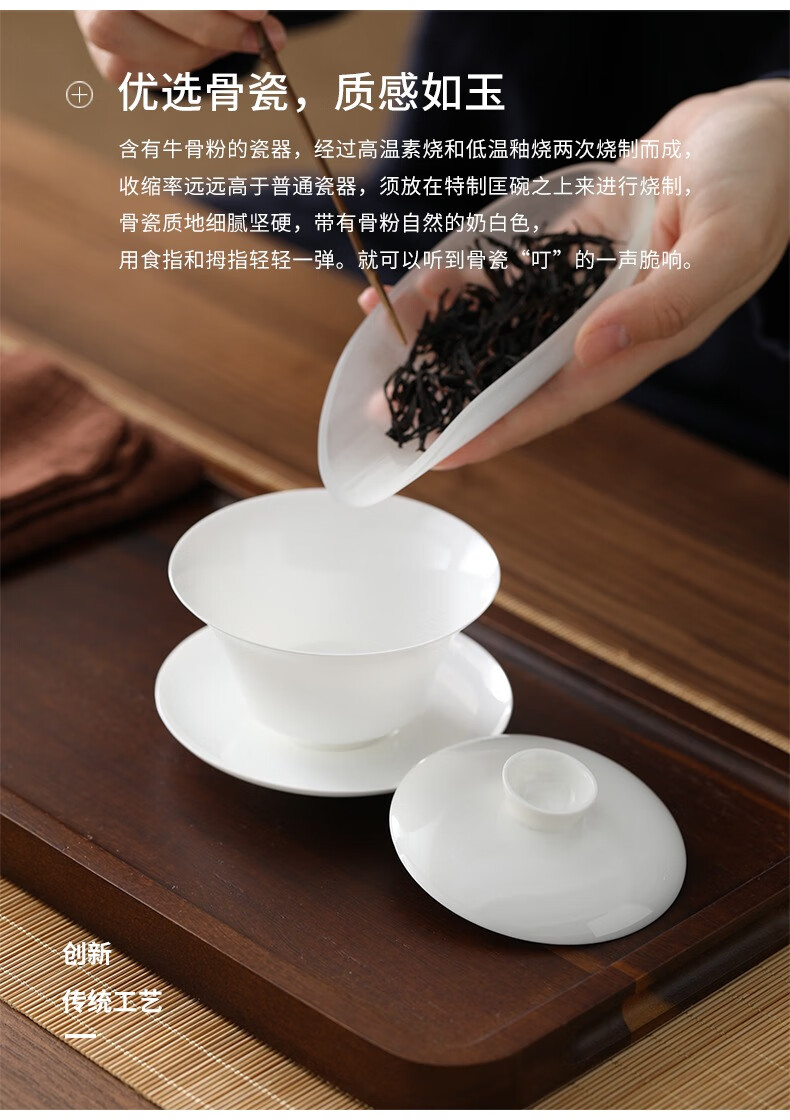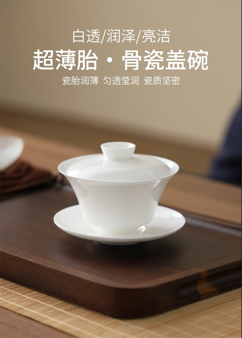 Yipin Workshop Chaozhou Bone China Thin Body Sancai Covered Bowl Small Tea Cup Kung Fu Tea Set High-end Tea Bowl with Lid Elegant High Bone China Thin Body Covered Bowl + 3 Bone China Taste Cups